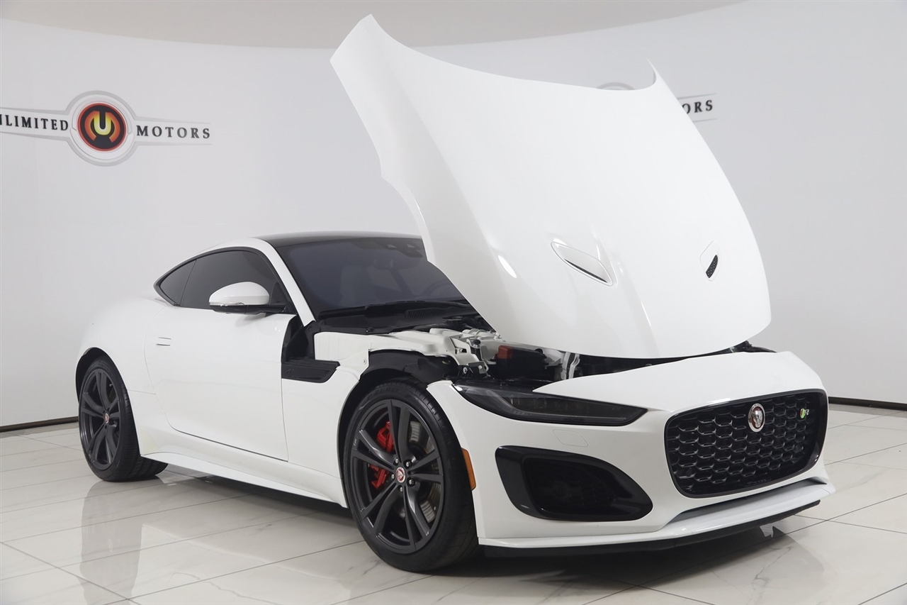 Navigation, Back Up Camera, Bluetooth, Sun/Moon Roof, Heated Seats, Touch Screen, Heated Steering Wheel, Rear Heated Seats, Blind Spot, Apple CarPlay/Android Auto, F-TYPE R, 2D Coupe, 5.0L V8 Supercharged, 8-Speed Automatic, AWD, Fuji White, Navigation System, Navigation system: InControl Touch Pro.