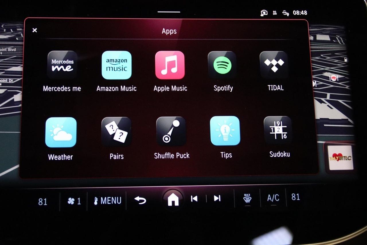Navigation, Bluetooth, Back Up Camera, Panoramic Roof, Heated Seats, 4-Wheel Disc Brakes, 6 Speakers, ABS brakes, Air Conditioning, Alloy wheels, AM/FM radio: SiriusXM, Anti-whiplash front head restraints, Apple CarPlay®/Android Auto®, Auto High-beam Headlights, Auto tilt-away steering wheel, Auto-dimming door mirrors, Auto-dimming Rear-View mirror, Automatic temperature control, Brake assist, Bumpers: body-color, Center Console in Natural Grain Black Ash Wood, Delay-off headlights, Driver door bin, Driver vanity mirror, Dual front impact airbags, Dual front side impact airbags, Electronic Stability Control, Emergency communication system: eCall Emergency System, Exterior Parking Camera Rear, Four wheel independent suspension, Front anti-roll bar, Front Bucket Seats, Front Center Armrest w/Storage, Front dual zone A/C, Front reading lights, Fully automatic headlights, Garage door transmitter: HomeLink, Genuine wood dashboard insert, Head restraints memory, Heated door mirrors, Heated Front Bucket Seats, Heated front seats, Illuminated entry, Knee airbag, Leather steering wheel, Low tire pressure warning, MB-Tex Upholstery, Memory seat, Navigation System, Navigation system: MBUX, Occupant sensing airbag, Outside temperature display, Overhead airbag, Overhead console, Panic alarm, Passenger door bin, Passenger vanity mirror, Power adjustable front head restraints, Power adjustable rear head restraints, Power door mirrors, Power driver seat, Power moonroof, Power passenger seat, Power steering, Power windows, Premium audio system: MBUX, Radio data system, Radio: 3rd Generation MBUX Multimedia System with Navigation, Rain sensing wipers, Rear anti-roll bar, Rear fog lights, Rear reading lights, Rear seat center armrest, Rear window defroster, Remote keyless entry, Security system, Speed control, Speed-sensing steering, Split folding rear seat, Steering wheel memory, Steering wheel mounted audio controls, Tachometer, Telescoping steering wheel, Tilt steering wheel, Traction control, Trip computer, Turn signal indicator mirrors, Weather band radio, Wheels: 19" AMG® 5-Twin-Spoke Light-Alloy with Black. CARFAX One-Owner. Clean CARFAX. 24/33 City/Highway MPG