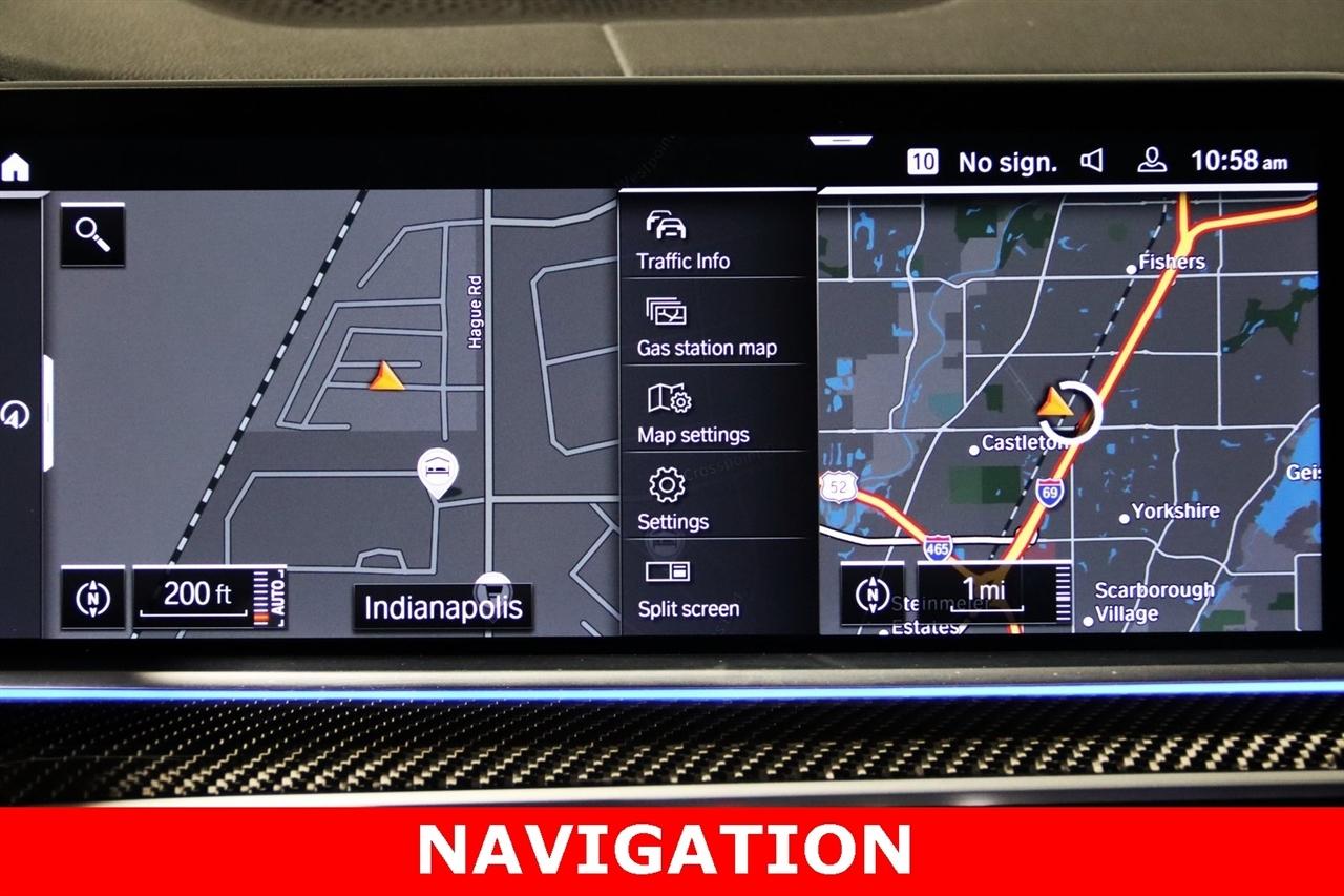 Navigation, Bluetooth, Back Up Camera, Panoramic Roof, Heated Seats, Touch Screen, 16 Speakers, 3.154 Axle Ratio, 4-Wheel Disc Brakes, ABS brakes, Active Park Distance Control, Adaptive suspension, Air Conditioning, Alloy wheels, AM/FM radio: SiriusXM with 360L, AM/FM Stereo, Auto High-beam Headlights, Auto tilt-away steering wheel, Auto-dimming door mirrors, Auto-dimming Rear-View mirror, Automatic temperature control, BMW Assist eCall, BMW TeleServices, Brake assist, Bumpers: body-color, Carbon Fiber Trim, Climate Comfort Package, Compass, Connected Package Pro, ConnectedDrive Services, Delay-off headlights, Drive Recorder, Driver door bin, Driver vanity mirror, Dual front impact airbags, Dual front side impact airbags, Electronic Stability Control, Emergency communication system: BMW Assist eCall, Exterior Parking Camera Rear, Four wheel independent suspension, Front & Rear Heated Seats, Front anti-roll bar, Front Bucket Seats, Front Center Armrest, Front dual zone A/C, Front reading lights, Front Ventilated Seats, Fully automatic headlights, Garage door transmitter, harman/kardon Surround Sound System, harman/kardon® Speakers, Head restraints memory, Head-Up Display, Heated door mirrors, Heated Front Seats, Heated front seats, Heated Front Seats w/Armrests & Steering Wheel, Illuminated entry, Knee airbag, Leather Shift Knob, Leather steering wheel, Live Cockpit Pro w/Navigation, Low tire pressure warning, Memory seat, Multi-Contour Seats, Navigation System, Occupant sensing airbag, Outside temperature display, Overhead airbag, Panic alarm, Parking Assistance Package, Parking Assistant Plus, Passenger door bin, Passenger vanity mirror, Power adjustable front head restraints, Power door mirrors, Power driver seat, Power moonroof, Power passenger seat, Power steering, Power windows, Radio data system, Rain sensing wipers, Rear air conditioning, Rear anti-roll bar, Rear dual zone A/C, Rear reading lights, Rear seat center armrest, Rear window defroster, Rear window wiper, Rear-View Camera, Remote keyless entry, Security system, Sensafin Upholstery, SiriusXM Satellite Radio, Speed control, Speed-sensing steering, Speed-Sensitive Wipers, Split folding rear seat, Spoiler, Sport steering wheel, Steering wheel mounted audio controls, Surround View w/3D View, Tachometer, Telescoping steering wheel, Tilt steering wheel, Traction control, Trip computer, Turn signal indicator mirrors, Variably intermittent wipers, Ventilated front seats, Wheels: 20" x 9" M Star-Spoke Bi-Color, WiFi Hotspot, Wireless Charging. CARFAX One-Owner. Priced below KBB Fair Purchase Price!