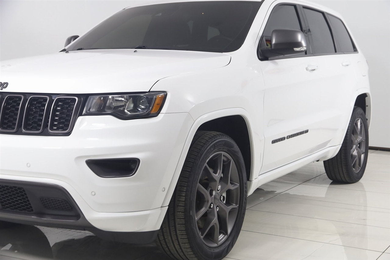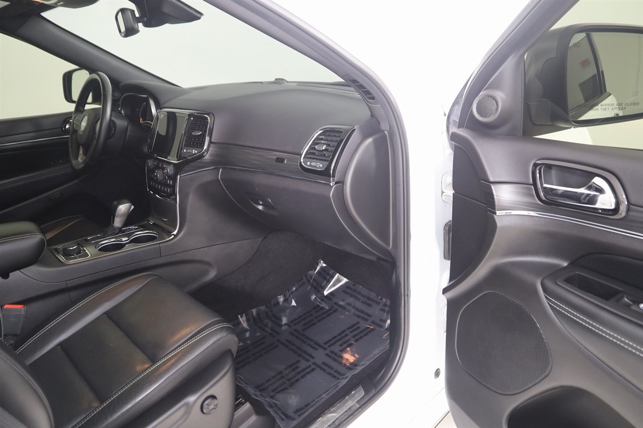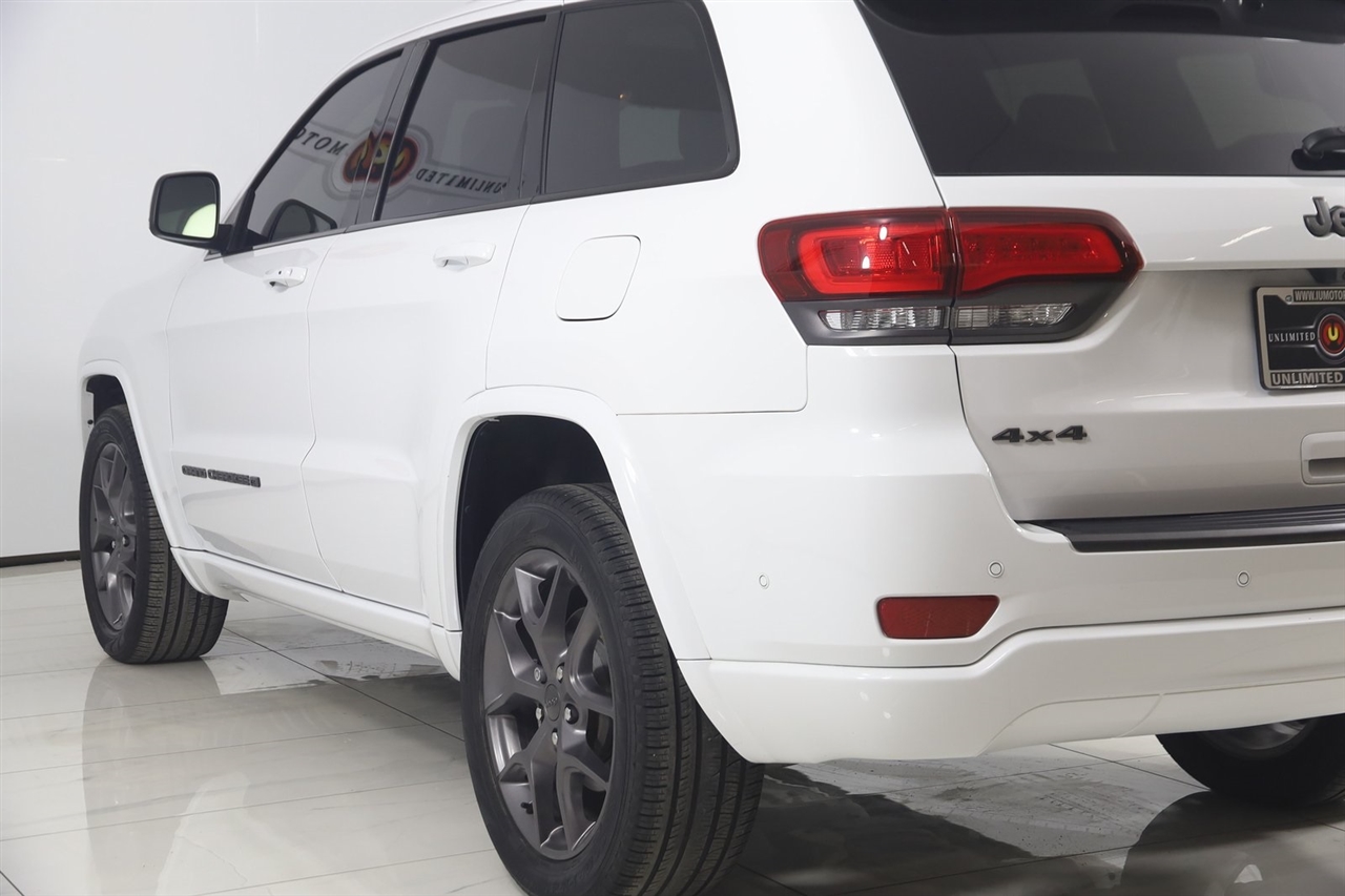 Navigation, Back Up Camera, Bluetooth, Panoramic Roof, Heated Seats, Touch Screen, Heated Steering Wheel, Rear Heated Seats, Blind Spot, Grand Cherokee 80th Anniversary Edition, 4D Sport Utility, 3.6L V6 24V VVT, 8-Speed Automatic, 4WD, Bright White Clearcoat, Black Leather, 506 Watt Amplifier, 80th Anniversary Luxury Group, Active Noise Control System, Adaptive Cruise Control w/Stop, Advanced Brake Assist, Berber Floor Mats w/80th Anniversary Tag, Black Roof Molding, Body Color Claddings, Body Color Door Handles, Body Color Shark Fin Antenna, Cargo Compartment Cover, Dark Day Light Opening Moldings, Dark Headlamp Bezel Finish, Dark Lens Taillamps, Dual-Pane Panoramic Sunroof, Front Accent/Body Color Fascia, Full Speed FWD Collision Warn Plus, GPS Navigation, Granite Crystal Exterior Accents, Granite Crystal Exterior Badging, Granite Crystal Exterior Mirror Caps, Granite Crystal/Black Grille, Heated Second Row Seats, Jeep 80th Anniversary Badges, Jeep 80th Anniversary Edition, Lane Departure Warning Plus, Leather Trimmed Bucket Seats (JY), LT. Tungsten Interior Accent Stitching, MOPAR Cargo Area Liner, MOPAR Interior Protection Group, MOPAR Slush Mats, Navigation System, Parallel & Perp Park Assist w/Stop, Piano Black/Anod. Gunmetal Interior Accents, Power Tilt/Telescope Steering Column, Premium Alpine Speaker System, Quick Order Package 2BK 80th, Rain Sensitive Windshield Wipers, Rear Accent/Body Color Fascia, Ventilated Front Seats, Wheels: 20" x 8.0" Granite Crystal Aluminum.