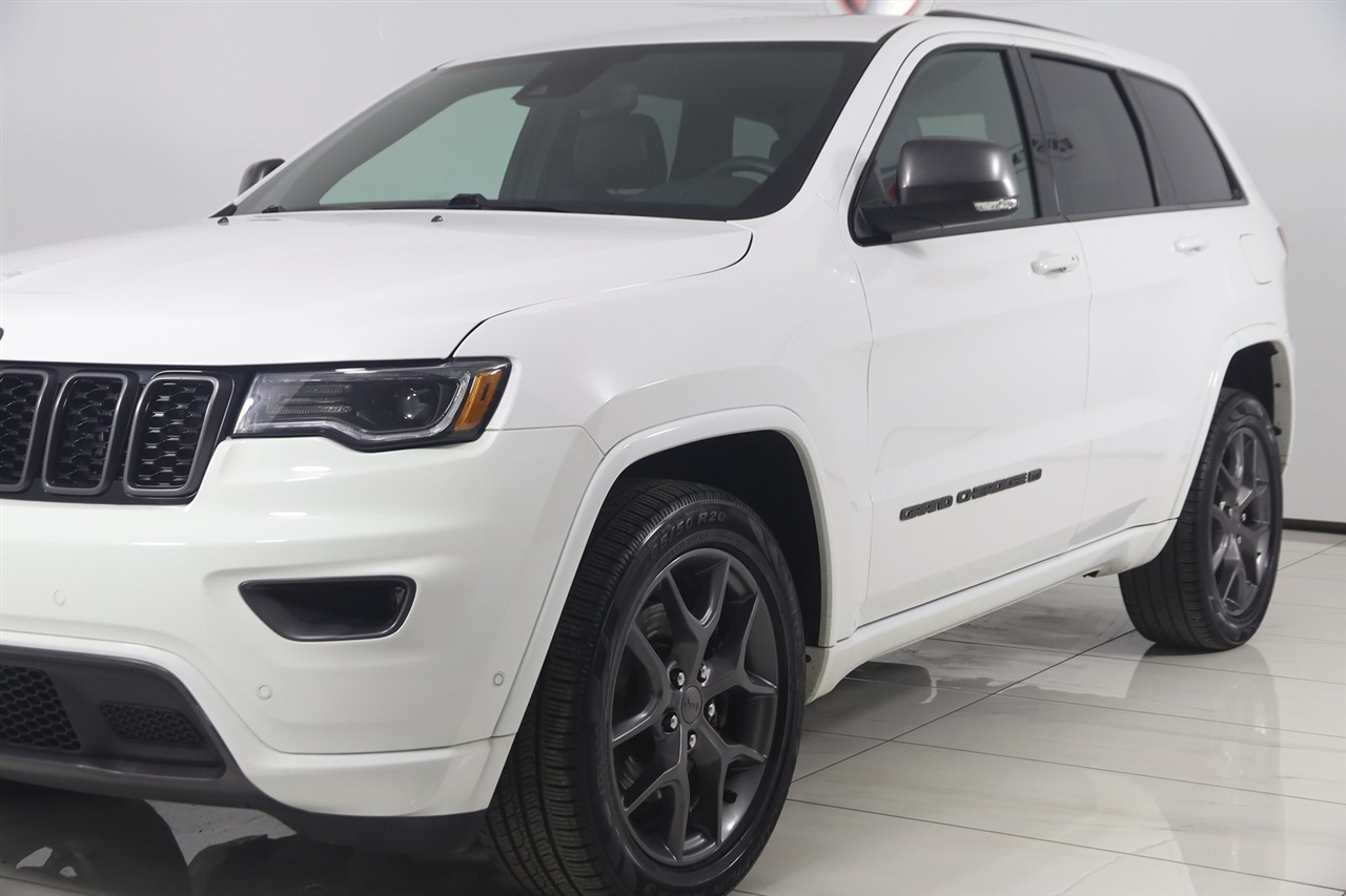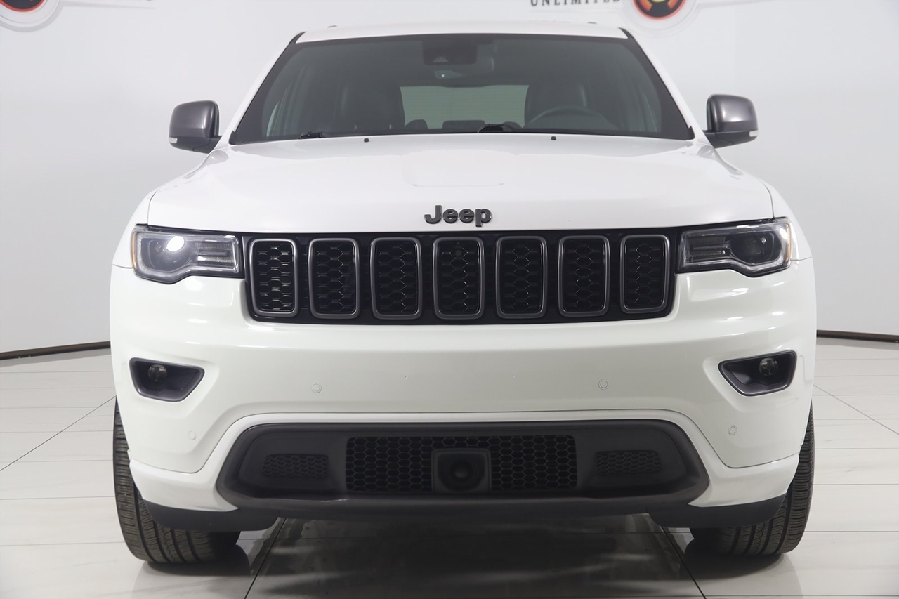 Navigation, Back Up Camera, Bluetooth, Panoramic Roof, Heated Seats, Touch Screen, Heated Steering Wheel, Rear Heated Seats, Blind Spot, Grand Cherokee 80th Anniversary Edition, 4D Sport Utility, 3.6L V6 24V VVT, 8-Speed Automatic, 4WD, Bright White Clearcoat, Black Leather, 506 Watt Amplifier, 80th Anniversary Luxury Group, Active Noise Control System, Adaptive Cruise Control w/Stop, Advanced Brake Assist, Auto High Beam Headlamp Control, Berber Floor Mats w/80th Anniversary Tag, Bi-Xenon High-Intensity Discharge Headlamps, Black Roof Molding, Body Color Claddings, Body Color Door Handles, Body Color Shark Fin Antenna, Cargo Compartment Cover, Dark Day Light Opening Moldings, Dark Headlamp Bezel Finish, Dark Lens Taillamps, Dual-Pane Panoramic Sunroof, Front Accent/Body Color Fascia, Front LED Fog Lamps, Full Speed FWD Collision Warn Plus, GPS Navigation, Granite Crystal Exterior Accents, Granite Crystal Exterior Badging, Granite Crystal Exterior Mirror Caps, Granite Crystal/Black Grille, Heated Second Row Seats, Jeep 80th Anniversary Badges, Jeep 80th Anniversary Edition, Lane Departure Warning Plus, Leather Trimmed Bucket Seats (JY), LED Daytime Running Headlamps, LT. Tungsten Interior Accent Stitching, Navigation System, Parallel & Perp Park Assist w/Stop, Piano Black/Anod. Gunmetal Interior Accents, Power Tilt/Telescope Steering Column, Premium Alpine Speaker System, Premium Lighting Group, Quick Order Package 2BK 80th, Rain Sensitive Windshield Wipers, Rear Accent/Body Color Fascia, Ventilated Front Seats, Wheels: 20" x 8.0" Granite Crystal Aluminum.