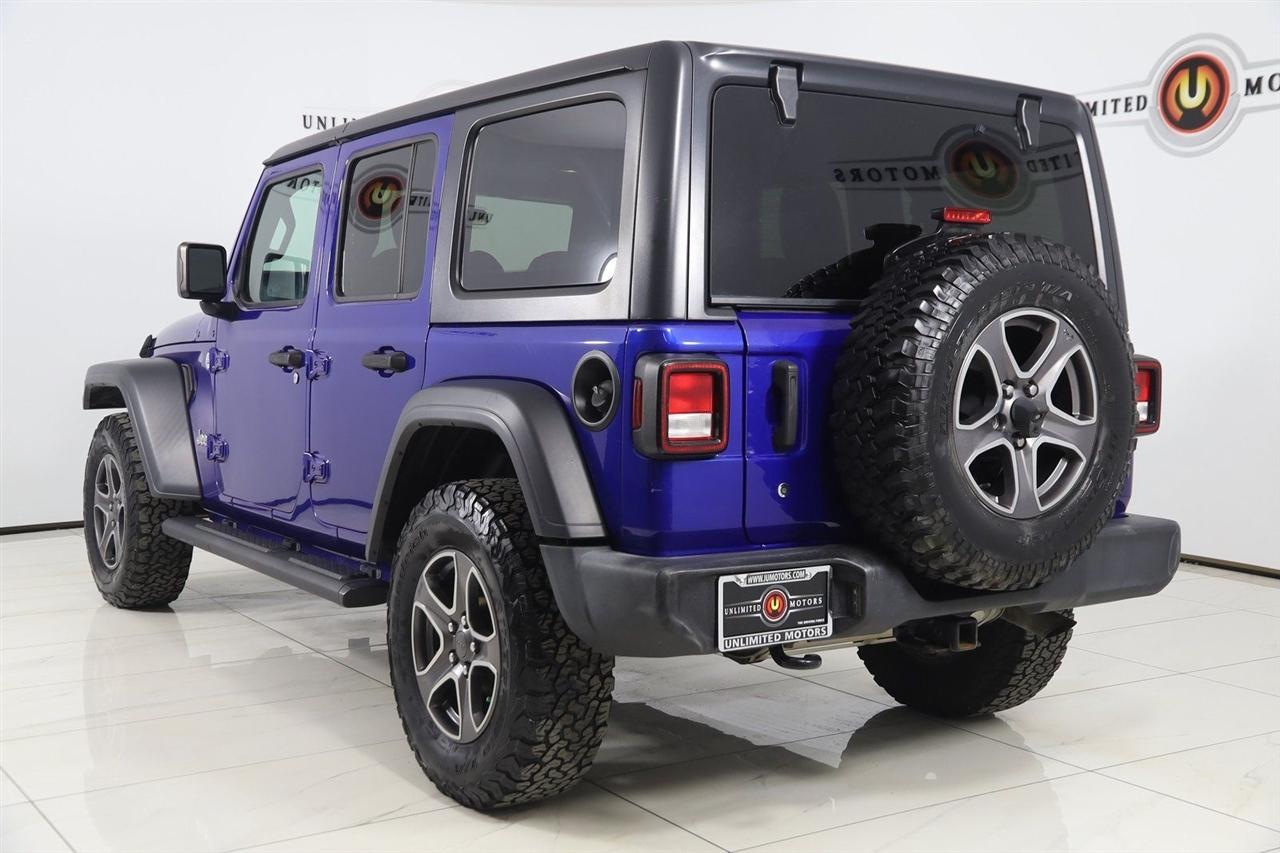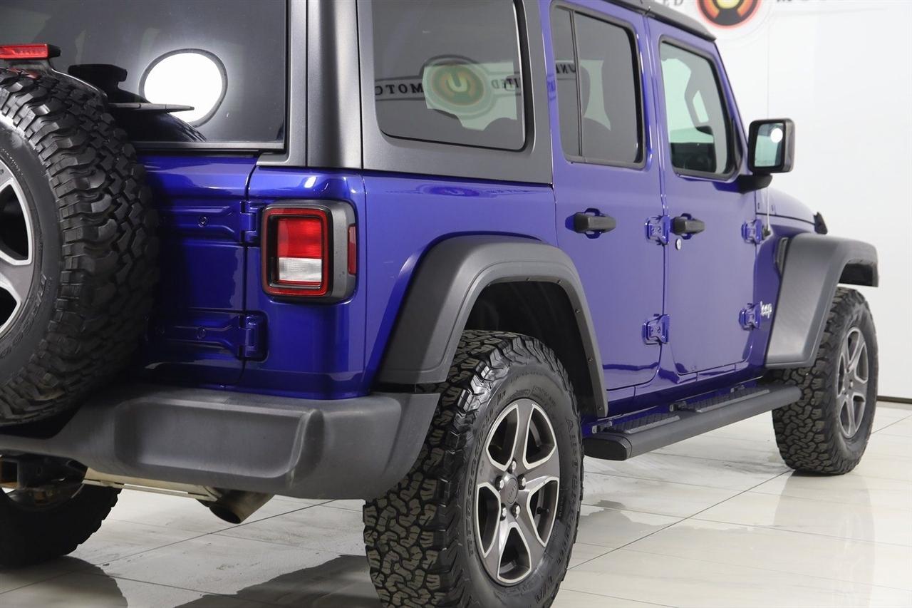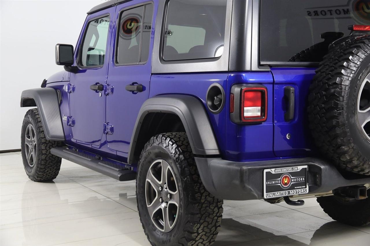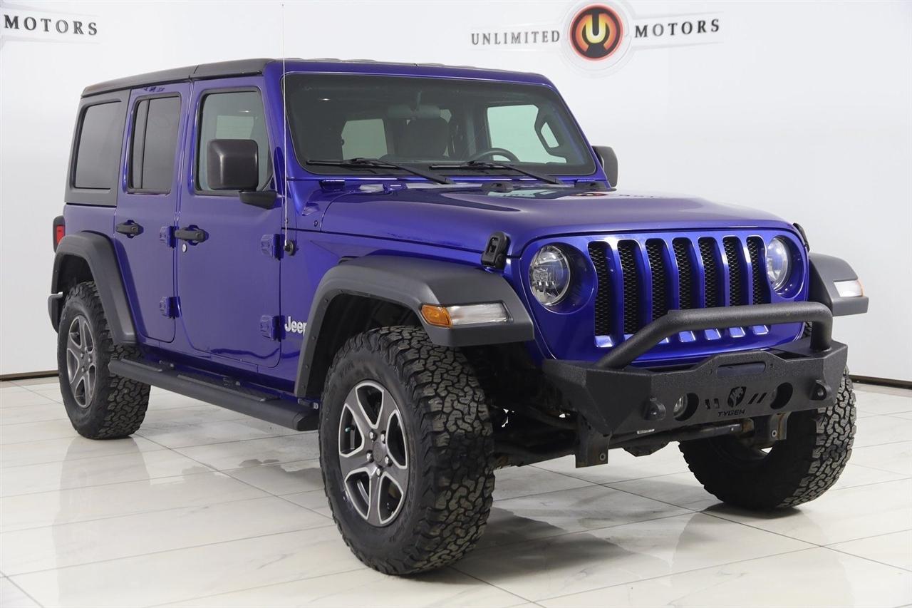 Back Up Camera, Bluetooth, Sun/Moon Roof, Running Boards, Heated Seats, Winch, Touch Screen, Heated Steering Wheel, Wrangler Unlimited Sport S, 4D Sport Utility, 3.6L V6 24V VVT, 6-Speed Manual, 4WD, Ocean Blue Metallic Clearcoat, Black Cloth, Automatic Headlamps, Cold Weather Group, Convenience Group, Deep Tint Sunscreen Windows, Front 1-Touch Down Power Windows, Heated Front Seats, Heated Steering Wheel, Leather Wrapped Steering Wheel, Power Heated Mirrors, Quick Order Package 23S Sport S, Remote Keyless Entry, Security Alarm, Speed Sensitive Power Locks, Sun Visors w/Illuminated Vanity Mirrors, Universal Garage Door Opener, Wheels: 17" x 7.5" Tech Silver Aluminum.