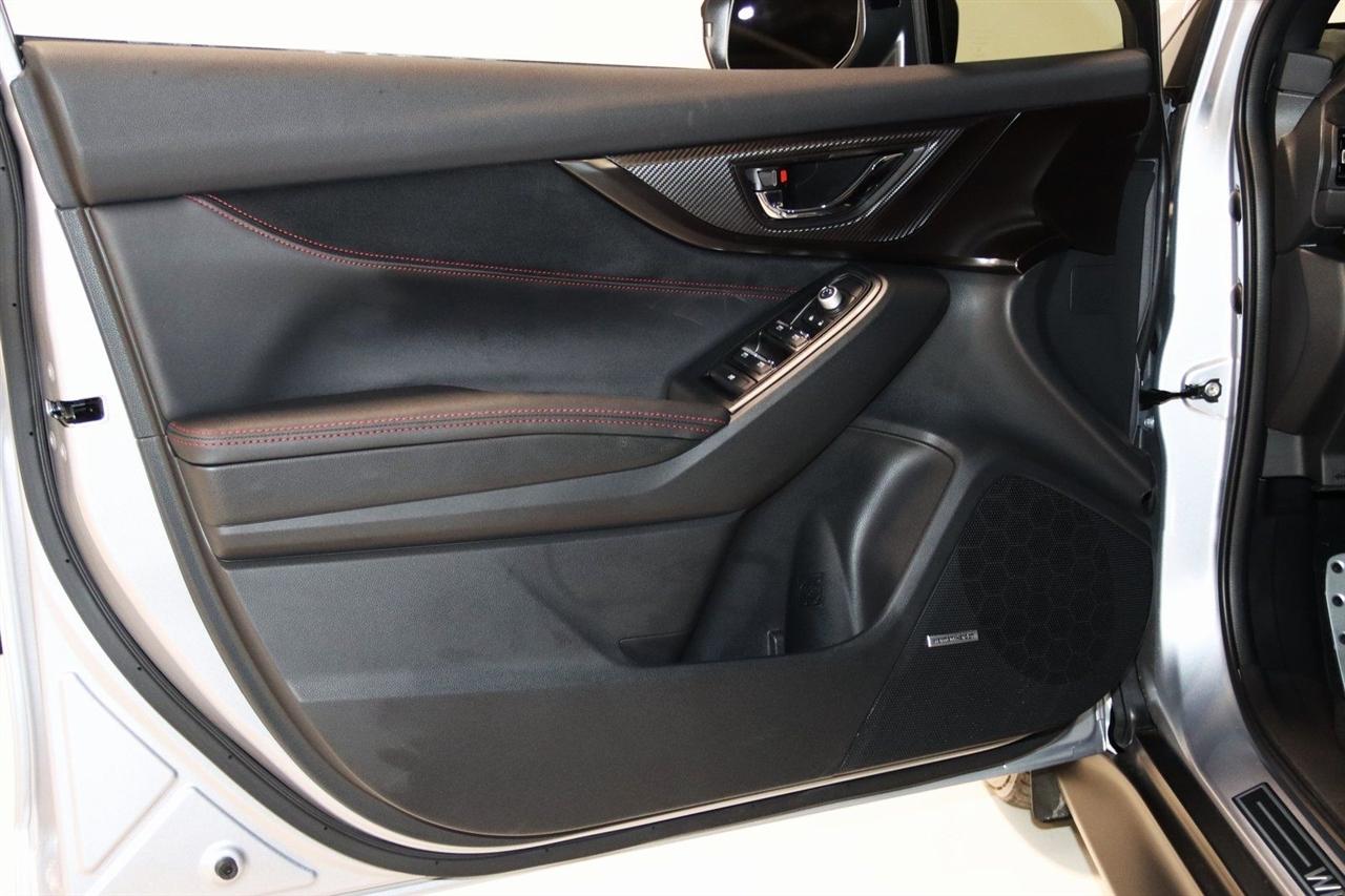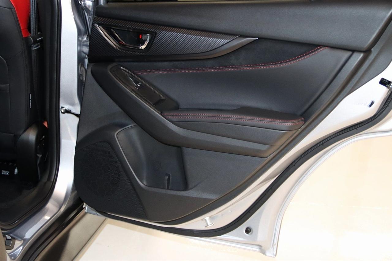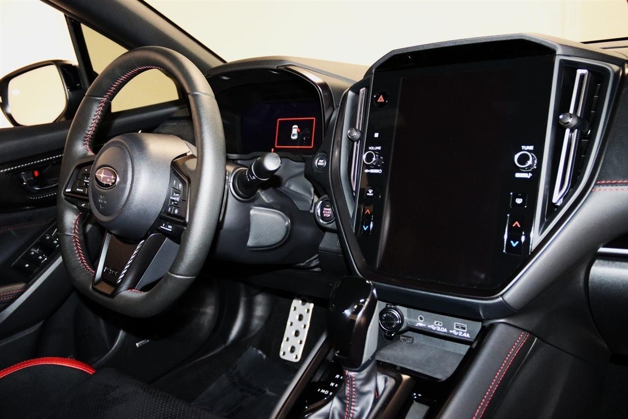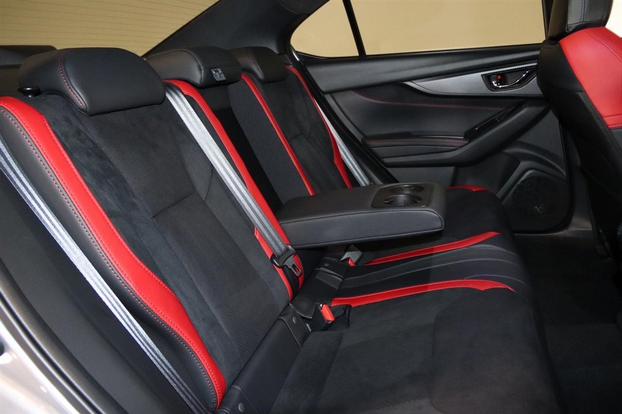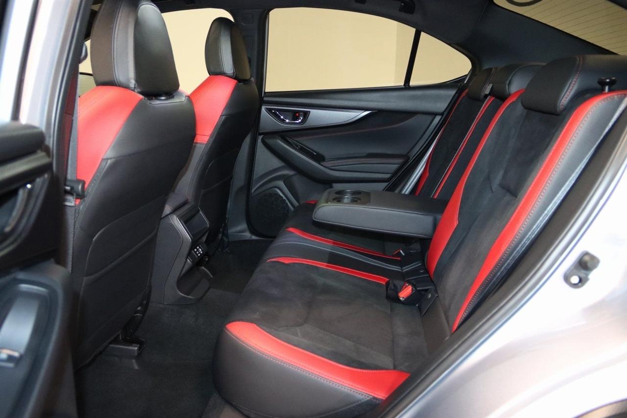 Navigation, Bluetooth, Back Up Camera, Sun/Moon Roof, Heated Seats, Touch Screen, 11 Speakers, 4-Wheel Disc Brakes, ABS brakes, Air Conditioning, Alloy wheels, AM/FM radio: SiriusXM, Auto High-beam Headlights, Auto-Dimming Exterior Mirror w/Approach Light, Auto-Dimming Mirror w/Compass & HomeLink, Automatic temperature control, Brake assist, Bumpers: body-color, Driver door bin, Driver vanity mirror, Dual front impact airbags, Dual front side impact airbags, Electronic Stability Control, Emergency communication system, Exterior Parking Camera Rear, Four wheel independent suspension, Front anti-roll bar, Front Bucket Seats, Front Center Armrest, Front dual zone A/C, Front fog lights, Front reading lights, Fully automatic headlights, harman/kardon® Speakers, Heated door mirrors, Heated front seats, Illuminated entry, Knee airbag, Leather steering wheel, Low tire pressure warning, Navigation System, Occupant sensing airbag, Outside temperature display, Overhead airbag, Overhead console, Panic alarm, Passenger door bin, Passenger vanity mirror, Performance Design Recaro Heated Frt Bucket Seats, Power door mirrors, Power driver seat, Power moonroof, Power steering, Power windows, Radio data system, Radio: Subaru 11.6" Multimedia System w/Navigation, Rear anti-roll bar, Rear seat center armrest, Rear window defroster, Remote keyless entry, Security system, Speed control, Speed-sensing steering, Split folding rear seat, Spoiler, Sport steering wheel, Standard Model, Steering wheel mounted audio controls, Tachometer, Telescoping steering wheel, Tilt steering wheel, Traction control, Trip computer, Turn signal indicator mirrors, Ultrasuede & Leather-Trimmed Seats w/Red Bolsters, Variably intermittent wipers, Wheels: 18" x 8.5" Black Finish Alum Alloy. CARFAX One-Owner. Clean CARFAX.