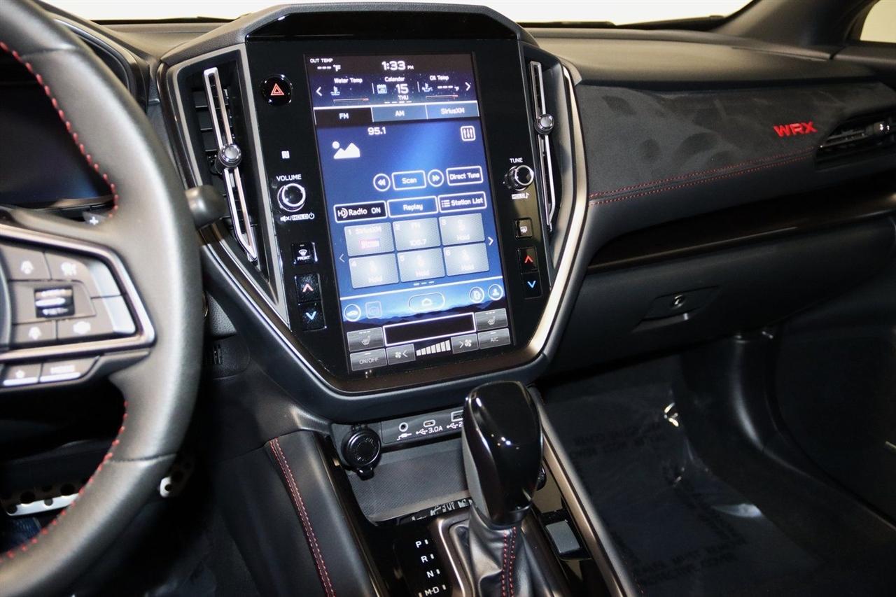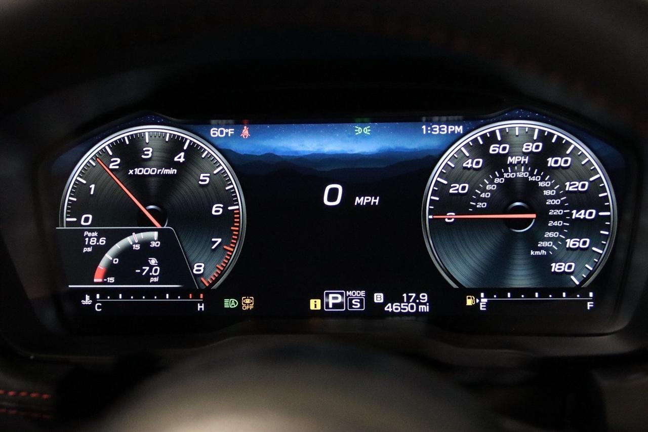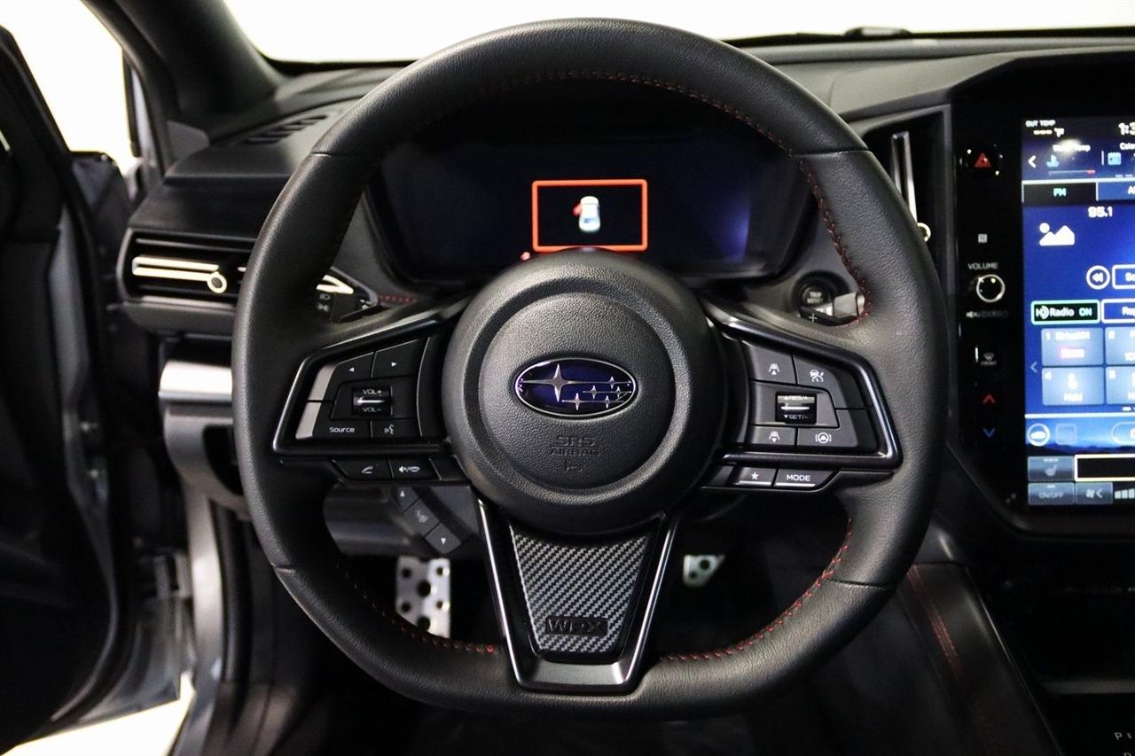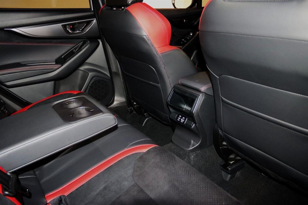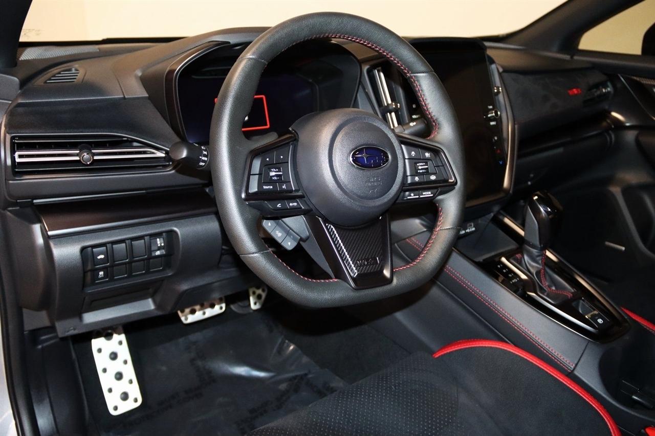 Navigation, Bluetooth, Back Up Camera, Sun/Moon Roof, Heated Seats, Touch Screen, 11 Speakers, 4-Wheel Disc Brakes, ABS brakes, Air Conditioning, Alloy wheels, AM/FM radio: SiriusXM, Auto High-beam Headlights, Auto-Dimming Exterior Mirror w/Approach Light, Auto-Dimming Mirror w/Compass & HomeLink, Automatic temperature control, Brake assist, Bumpers: body-color, Driver door bin, Driver vanity mirror, Dual front impact airbags, Dual front side impact airbags, Electronic Stability Control, Emergency communication system, Exterior Parking Camera Rear, Four wheel independent suspension, Front anti-roll bar, Front Bucket Seats, Front Center Armrest, Front dual zone A/C, Front fog lights, Front reading lights, Fully automatic headlights, harman/kardon® Speakers, Heated door mirrors, Heated front seats, Illuminated entry, Knee airbag, Leather steering wheel, Low tire pressure warning, Navigation System, Occupant sensing airbag, Outside temperature display, Overhead airbag, Overhead console, Panic alarm, Passenger door bin, Passenger vanity mirror, Performance Design Recaro Heated Frt Bucket Seats, Power door mirrors, Power driver seat, Power moonroof, Power steering, Power windows, Radio data system, Radio: Subaru 11.6" Multimedia System w/Navigation, Rear anti-roll bar, Rear seat center armrest, Rear window defroster, Remote keyless entry, Security system, Speed control, Speed-sensing steering, Split folding rear seat, Spoiler, Sport steering wheel, Standard Model, Steering wheel mounted audio controls, Tachometer, Telescoping steering wheel, Tilt steering wheel, Traction control, Trip computer, Turn signal indicator mirrors, Ultrasuede & Leather-Trimmed Seats w/Red Bolsters, Variably intermittent wipers, Wheels: 18" x 8.5" Black Finish Alum Alloy. CARFAX One-Owner. Clean CARFAX.