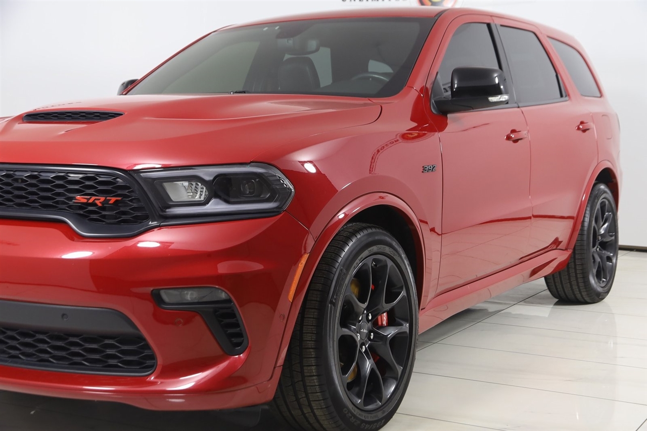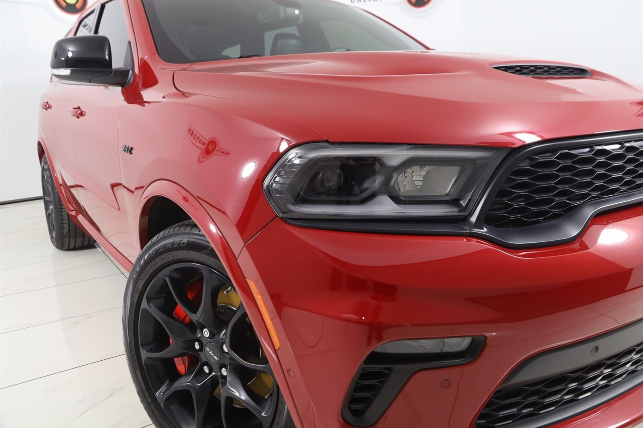 Navigation, Back Up Camera, Bluetooth, Touch Screen, Heated Front & Rear Seats, Heated Steering Wheel, Ventilated Front Seats, Blind Spot, Apple CarPlay/Android Auto, Durango SRT 392, 4D Sport Utility, SRT HEMI 6.4L V8 MDS, 8-Speed Automatic, AWD, Redline 2 Coat Pearl, Black Leather, 1 USB Charging Port in Console, 12V Auxiliary Power Outlet In Console, 2nd Row Console w/Armrest & Storage, 3rd Row Floor Mat & Full Console, Black Package, Class IV Receiver Hitch, Eclipse Black Exhaust Tip, Gloss Black Exterior Mirrors, GPS Navigation, Gray Metallic Badges, Illuminated Rear Cupholders, Navigation System, Navigation system: TomTom, Quick Order Package 29L, Satin Black Dodge Tail Lamp Badge, Trailer Brake Control, Trailer Tow Group IV, Wheels: 20" x 10" Lights Out Aluminum.