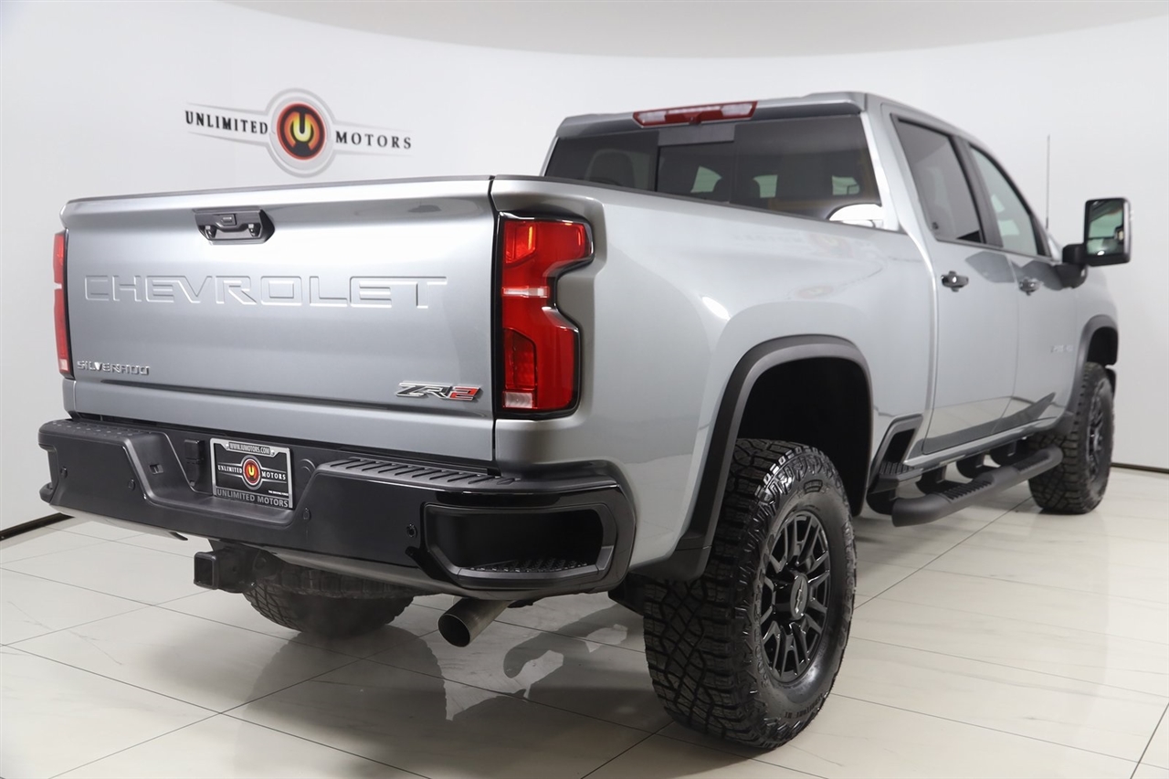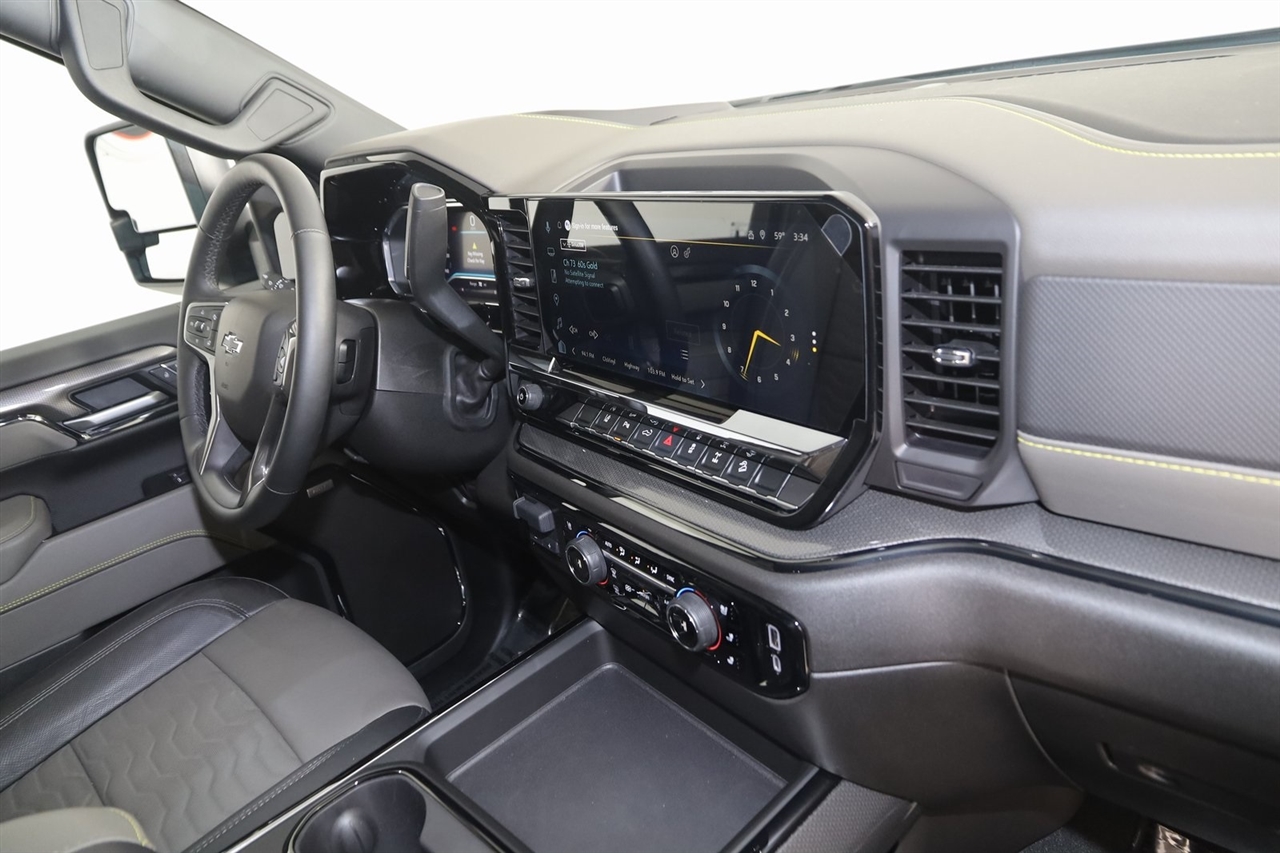 Navigation, Back Up Camera, Bluetooth, Sun/Moon Roof, Running Boards, Winch, Touch Screen, Heated Front & Rear Seats, Heated Steering Wheel, Ventilated Front Seats, Blind Spot, Apple CarPlay/Android Auto, Silverado 2500HD ZR2, 4D Crew Cab, 6.6L V8, 10-Speed Automatic, 4WD, Sterling Gray Metallic, Jet Black/Graystone Leather, 220 Amp Alternator, All-Weather Floor Liners, Console-Mounted Safe, Interior Convenience Package, Navigation System, Snow Plow Prep/Camper Package, Underseat Storage, ZR2 Suspension Package.