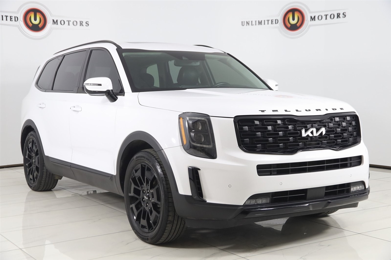 Navigation, Back Up Camera, Bluetooth, Panoramic Roof, Touch Screen, Heated Front & Rear Seats, Heated Steering Wheel, Ventilated Front Seats, Blind Spot, Apple CarPlay/Android Auto, Telluride SX, 4D Sport Utility, 3.8L V6 DOHC, 8-Speed Automatic, AWD, Glacial White Pearl, Black Leather, 110V Inverter, Black Finish Radiator Grille, Body Color Exterior Door Handles, Exclusive Black Fog Light Bezel, Exclusive Black Headlight Bezels, Front & Rear Gloss Black Finish Bumper Skid Plates, Gloss Black Finish Exterior Emblems, Gloss Black Finish Front & Rear Door Garnish, Gloss Black Finish Roof Rails, Heads-Up Display, Heated & Ventilated 2nd Row Seats, Navigation System, Nightfall Edition Package, Premium Cloth Headliner & Pillar Trim, Premium Nappa Leather Seat Trim, Rain-Sensing Front Windshield Wipers, Self Leveling Rear Suspension, SX Prestige Package, Tow Hitch w/Harness (TOF), Towing Package, Wheels: 20" x 7.5" Exclusive Black Alloy.