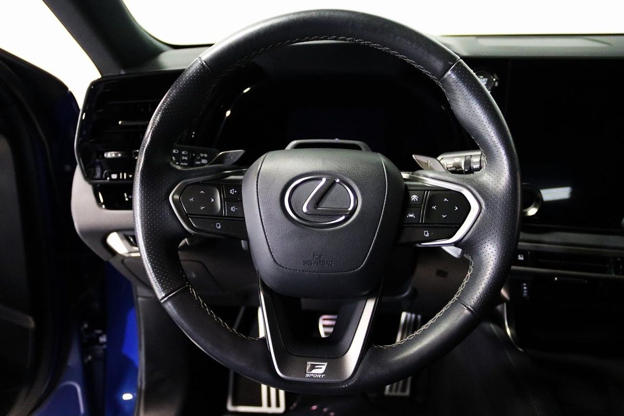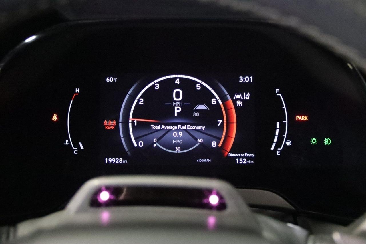 Navigation, Bluetooth, Back Up Camera, Sun/Moon Roof, Heated Seats, 12 Speakers, 3.33 Axle Ratio, 4-Wheel Disc Brakes, 8-Way Power Driver & Front Passenger Seat Adjusters, ABS brakes, Active Cruise Control, Adaptive suspension, Air Conditioning, Alloy wheels, AM/FM radio: SiriusXM, Anti-whiplash front head restraints, Auto High-beam Headlights, Auto tilt-away steering wheel, Auto-dimming door mirrors, Auto-dimming Rear-View mirror, Auto-leveling suspension, Automatic temperature control, Brake assist, Bumpers: body-color, Cold Area Package, Compass, Convenience Package, Delay-off headlights, Driver door bin, Driver vanity mirror, Dual front impact airbags, Dual front side impact airbags, Electrochromic Heated Outside Rearview Mirror, Electronic Stability Control, Emergency communication system: Safety Connect (10-year trial), Exterior Parking Camera Rear, F SPORT NuLuxe Seat Trim, Four wheel independent suspension, Front anti-roll bar, Front Bucket Seats, Front Center Armrest, Front dual zone A/C, Front fog lights, Front reading lights, Fully automatic headlights, Garage door transmitter: HomeLink, Genuine wood console insert, Heads-Up Display, Heated & Ventilated Front Bucket Seats, Heated door mirrors, Heated F SPORT Steering Wheel w/Paddle Shifters, Heated front seats, Illuminated entry, Lane Change Assist w/Lane Keeping Assist System, Leather Shift Knob, Leather steering wheel, Low tire pressure warning, Memory seat, Navigation System, Occupant sensing airbag, Outside temperature display, Overhead airbag, Overhead console, Panic alarm, Passenger door bin, Passenger vanity mirror, Power door mirrors, Power driver seat, Power Liftgate, Power moonroof, Power passenger seat, Power steering, Power windows, Radio data system, Radio: Lexus Interface w/9.8" HD Touchscreen Display, Rain sensing wipers, Rear air conditioning, Rear anti-roll bar, Rear reading lights, Rear seat center armrest, Rear side impact airbag, Rear window defroster, Rear window wiper, Remote keyless entry, Security system, Speed control, Speed-sensing steering, Split folding rear seat, Spoiler, Sport steering wheel, Steering wheel memory, Steering wheel mounted audio controls, Tachometer, Technology Package, Telescoping steering wheel, Tilt steering wheel, Traction control, Trip computer, Turn signal indicator mirrors, Variably intermittent wipers, Ventilated front seats, Wheels: 21", Wireless Apple CarPlay/Wireless Android Auto. 21/28 City/Highway MPG Priced below KBB Fair Purchase Price!