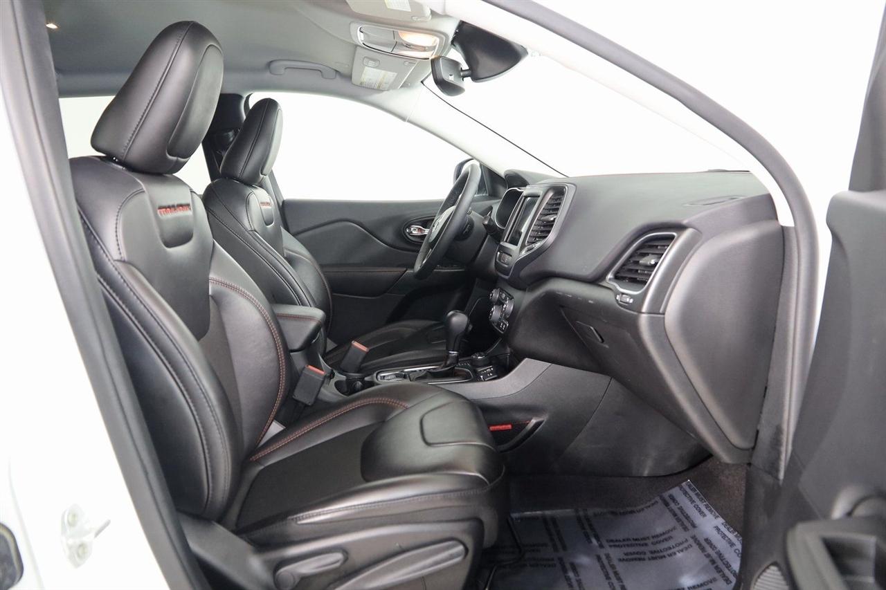 Back Up Camera, Bluetooth, Touch Screen, Heated Front Seats, Heated Steering Wheel, Blind Spot, Cherokee Trailhawk, 4D Sport Utility, 3.2L V6, 9-Speed 948TE Automatic, 4WD, Bright White Clearcoat, Black Cloth, Auto-Dimming Rear-View Mirror, Comfort/Convenience Group, GPS Navigation, Hands-Free Power Liftgate, Quick Order Package 27E, Security Alarm, Universal Garage Door Opener.