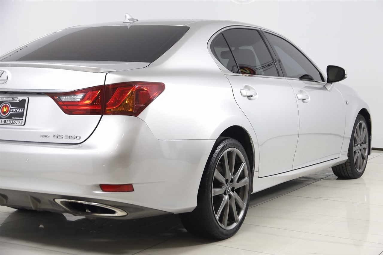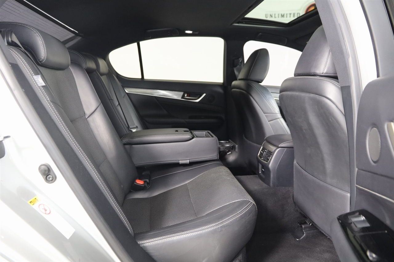 Navigation, Back Up Camera, Bluetooth, Sun/Moon Roof, Touch Screen, Heated Front Seats, Heated Steering Wheel, Ventilated Front Seats, Blind Spot, GS 350, 4D Sedan, 3.5L V6 DOHC 24V, 6-Speed Automatic with Sequential Shift, AWD, Liquid Platinum, Black Leather, 19" Split 5-Spoke Wheels, Black Headliner, Cargo Net, Climate Concierge, Cold Weather Package, F Sport Door Scuff Plates, F Sport Front Bumper & Rear Lower Valence, F Sport Leather, F Sport Mesh Front Grille Inserts, F Sport Package w/Cold Weather Package, F-Sport Tuned Adaptive Variable Suspension (AVS), Front Sport Seats, Heated/Ventilated Front Seats, Navigation System, Power Rear Sunshade, Preferred Accessory Package 2, Rain Sensing Wipers, Rear Bumper Applique, Rear Lip Spoiler, Striated Aluminum Interior Trim, Trunk Mat, Wheel Locks.