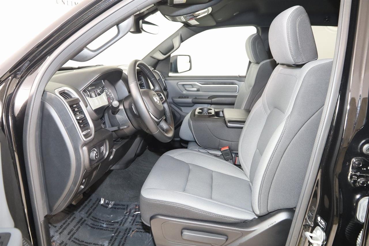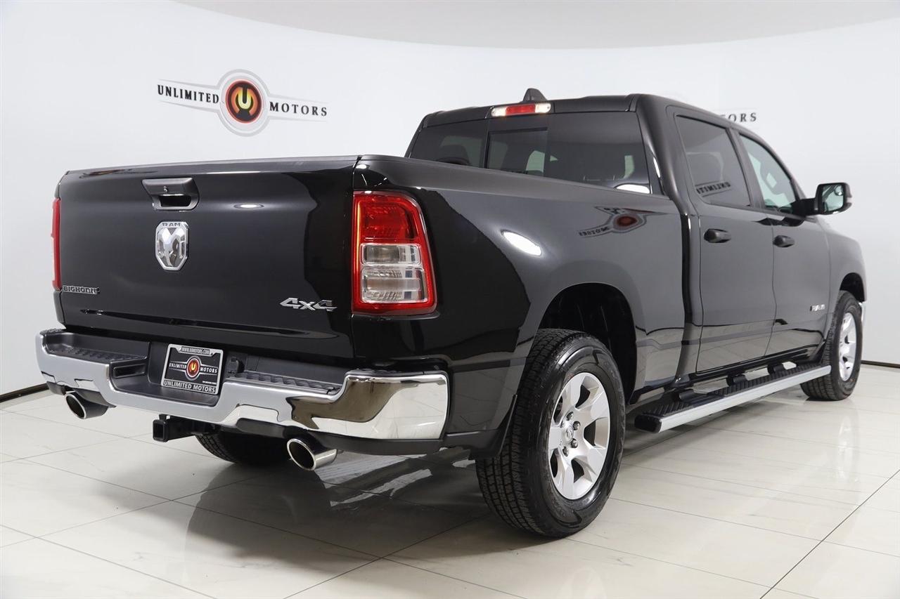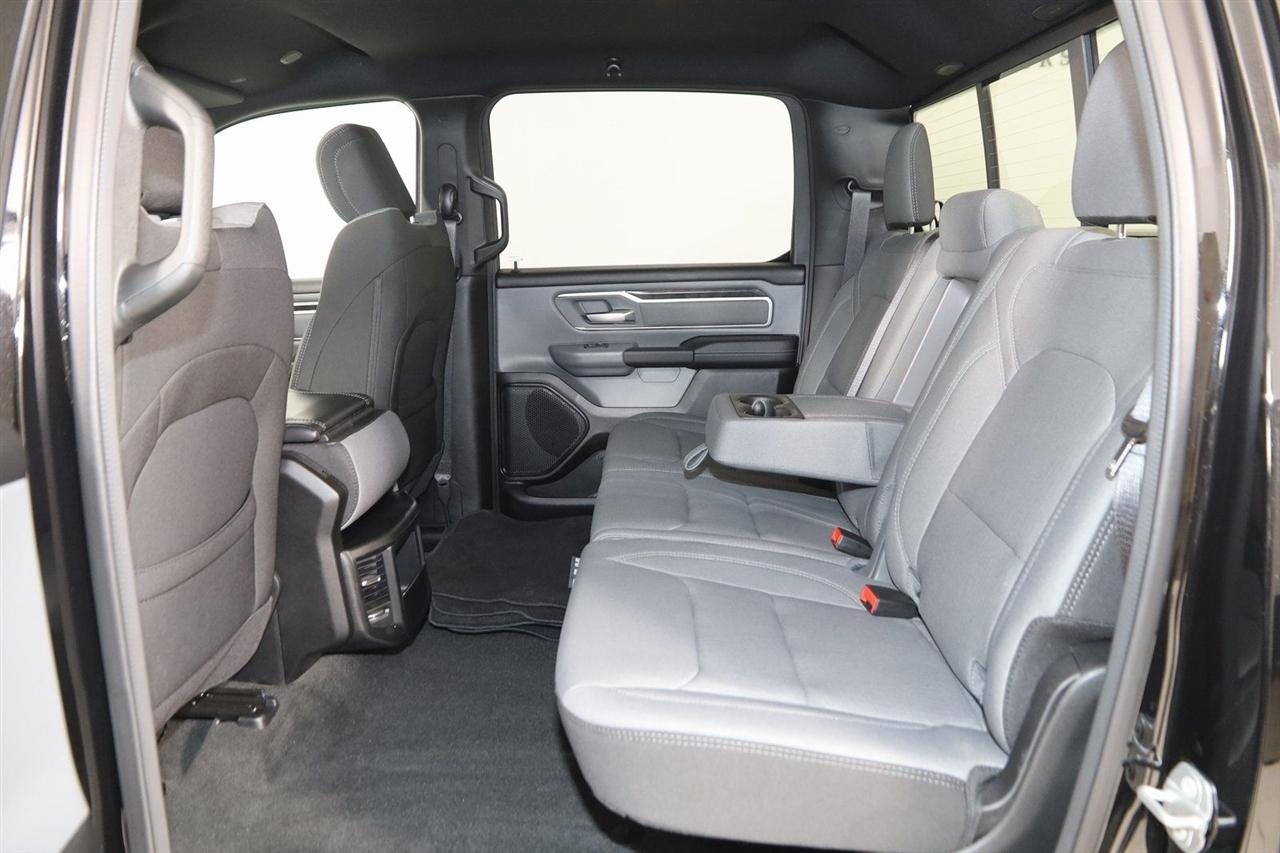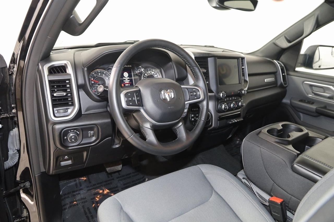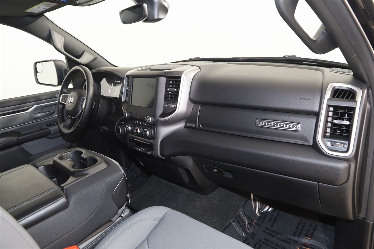 Back Up Camera, Bluetooth, Running Boards, Winch, Touch Screen, Heated Front Seats, Heated Steering Wheel, Apple CarPlay/Android Auto, 1500 Big Horn/Lone Star, 4D Crew Cab, HEMI 5.7L V8 Multi Displacement VVT eTorque, 8-Speed Automatic, 4WD, Diamond Black Crystal Pearlcoat, Black Cloth, 2nd Row In Floor Storage Bins, 4G LTE Wi-Fi Hot Spot, 8.4" Touchscreen Display, Apple CarPlay, Auto-Dimming Exterior Driver Mirror, Auto-Dimming Rear-View Mirror, Big Horn Badge, Big Horn Level 1 Equipment Group, Black Exterior Mirrors, Black Premium Power Mirrors, Bluetooth Handsfree Phone & Audio, Class IV Receiver Hitch, Connectivity - US/Canada, Convex Wide-Angle Exterior Mirror Insert, Electric Shift-On-Demand Transfer Case, Exterior Mirrors Courtesy Lamps, Exterior Mirrors w/Heating Element, Exterior Mirrors w/Supplemental Signals, For Details, Visit DriveUconnect.com, For More Info, Call 800-643-2112, Front Fog Lamps, Glove Box Lamp, Google Android Auto, GPS Antenna Input, GPS Navigation, Heated Front Seats, Heated Steering Wheel, Integrated Center Stack Radio, Passenger Sun Visor w/Illuminated Mirror, Power-Folding Mirrors, Quick Order Package 27Z Big Horn, Radio: Uconnect 5 W w/8.4" Display, Rear Dome w/On/Off Switch Lamp, Rear Power Sliding Window, Rear Window Defroster, SiriusXM Satellite Radio, USB Host Flip.