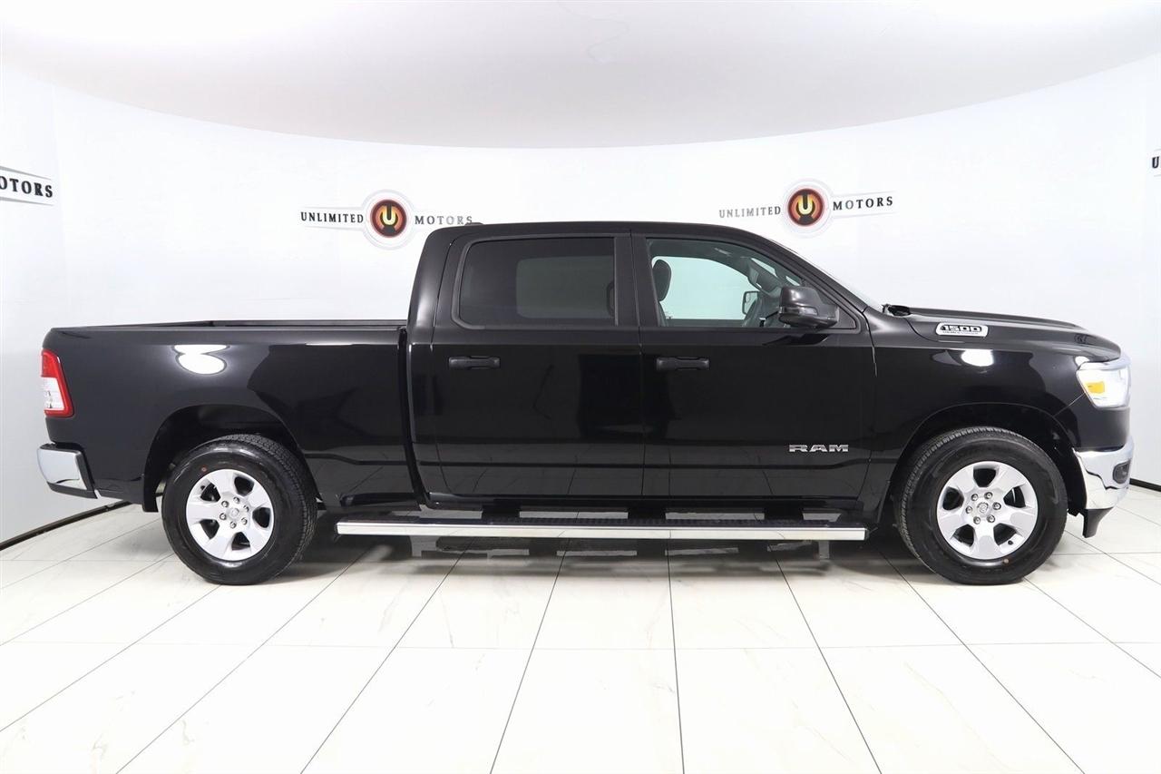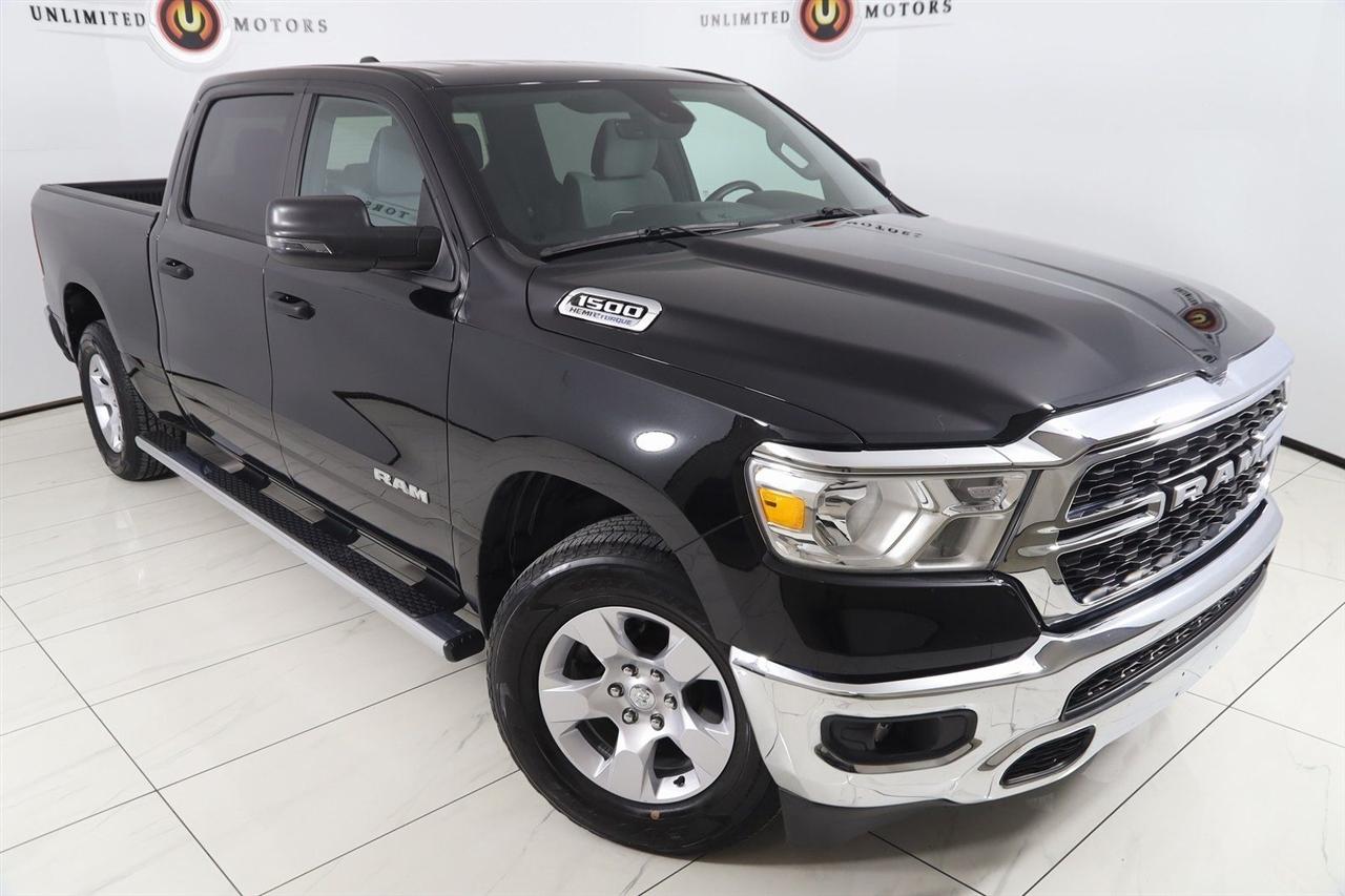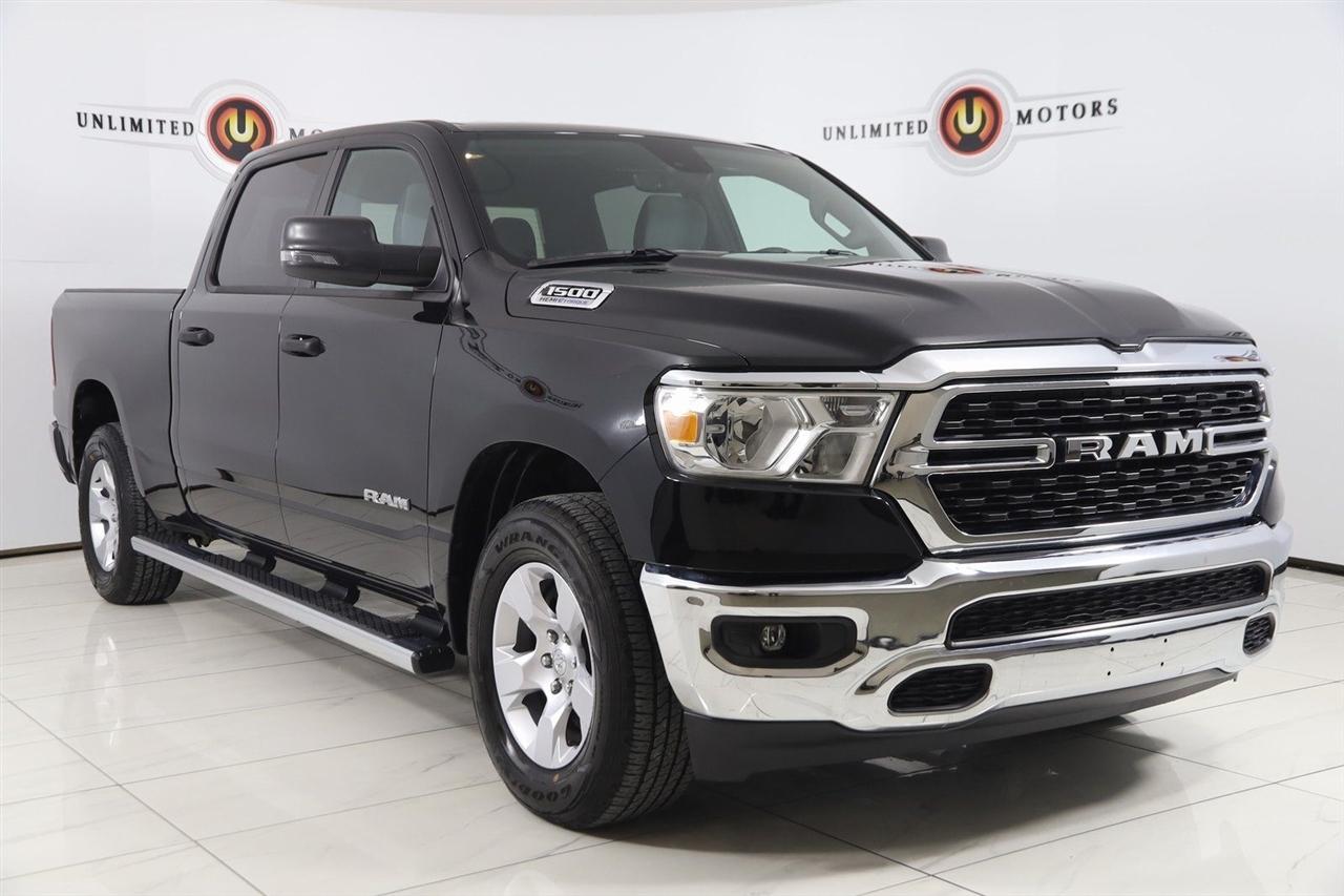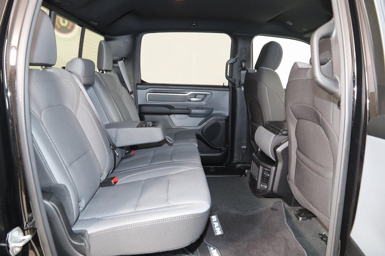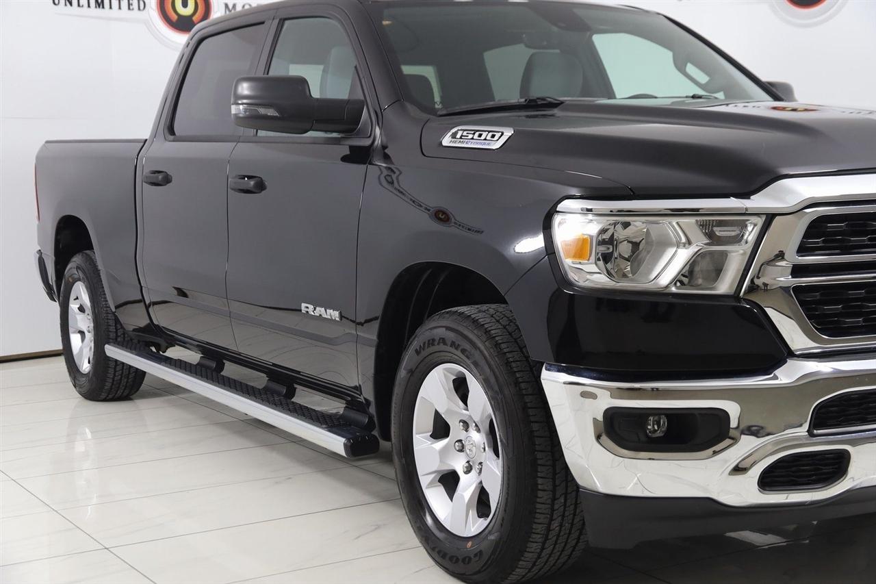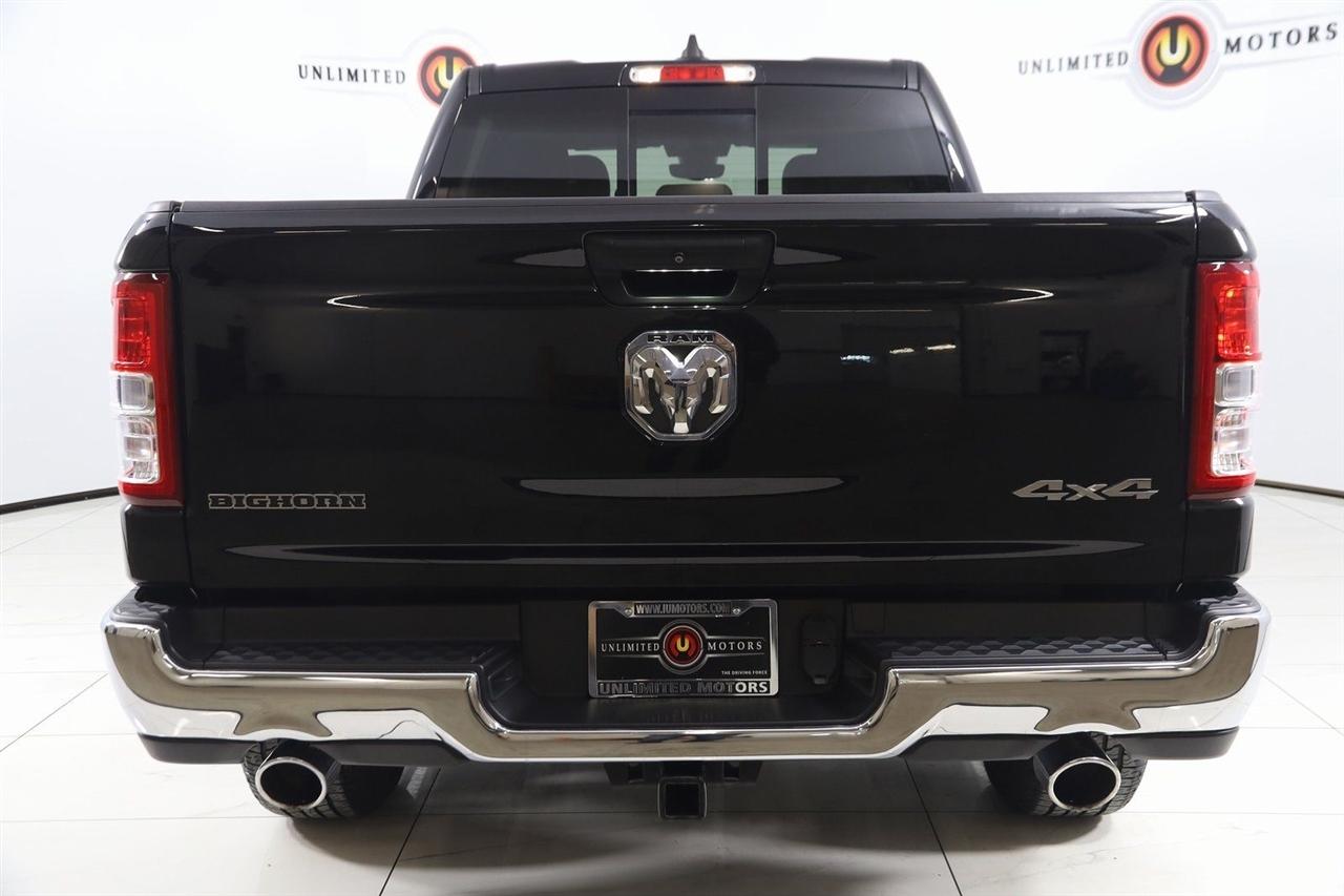 Back Up Camera, Bluetooth, Running Boards, Winch, Touch Screen, Heated Front Seats, Heated Steering Wheel, Apple CarPlay/Android Auto, 1500 Big Horn/Lone Star, 4D Crew Cab, HEMI 5.7L V8 Multi Displacement VVT eTorque, 8-Speed Automatic, 4WD, Diamond Black Crystal Pearlcoat, Black Cloth, 2nd Row In Floor Storage Bins, 4G LTE Wi-Fi Hot Spot, 8.4" Touchscreen Display, Apple CarPlay, Auto-Dimming Exterior Driver Mirror, Auto-Dimming Rear-View Mirror, Big Horn Badge, Big Horn Level 1 Equipment Group, Black Exterior Mirrors, Black Premium Power Mirrors, Bluetooth Handsfree Phone & Audio, Class IV Receiver Hitch, Connectivity - US/Canada, Convex Wide-Angle Exterior Mirror Insert, Electric Shift-On-Demand Transfer Case, Exterior Mirrors Courtesy Lamps, Exterior Mirrors w/Heating Element, Exterior Mirrors w/Supplemental Signals, For Details, Visit DriveUconnect.com, For More Info, Call 800-643-2112, Front Fog Lamps, Glove Box Lamp, Google Android Auto, GPS Antenna Input, GPS Navigation, Heated Front Seats, Heated Steering Wheel, Integrated Center Stack Radio, Passenger Sun Visor w/Illuminated Mirror, Power-Folding Mirrors, Quick Order Package 27Z Big Horn, Radio: Uconnect 5 W w/8.4" Display, Rear Dome w/On/Off Switch Lamp, Rear Power Sliding Window, Rear Window Defroster, SiriusXM Satellite Radio, USB Host Flip.