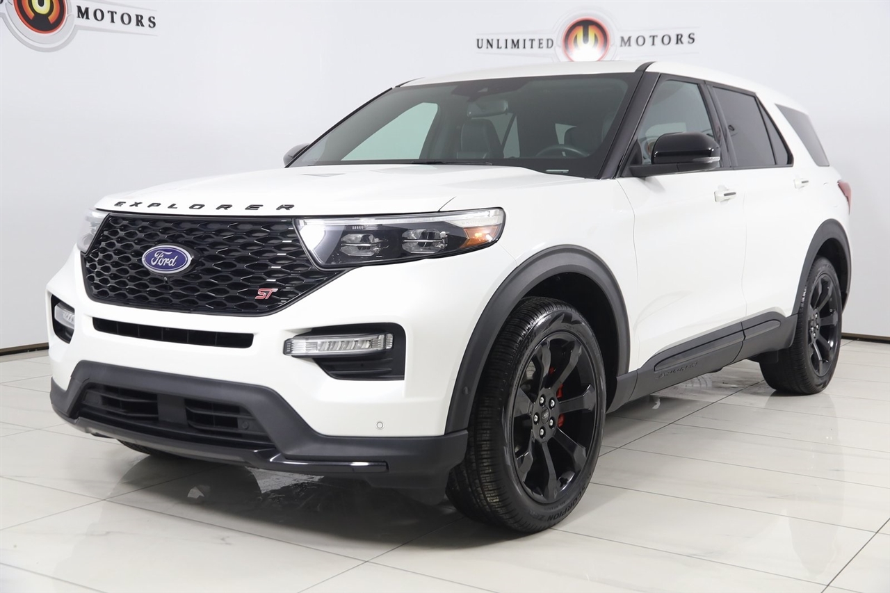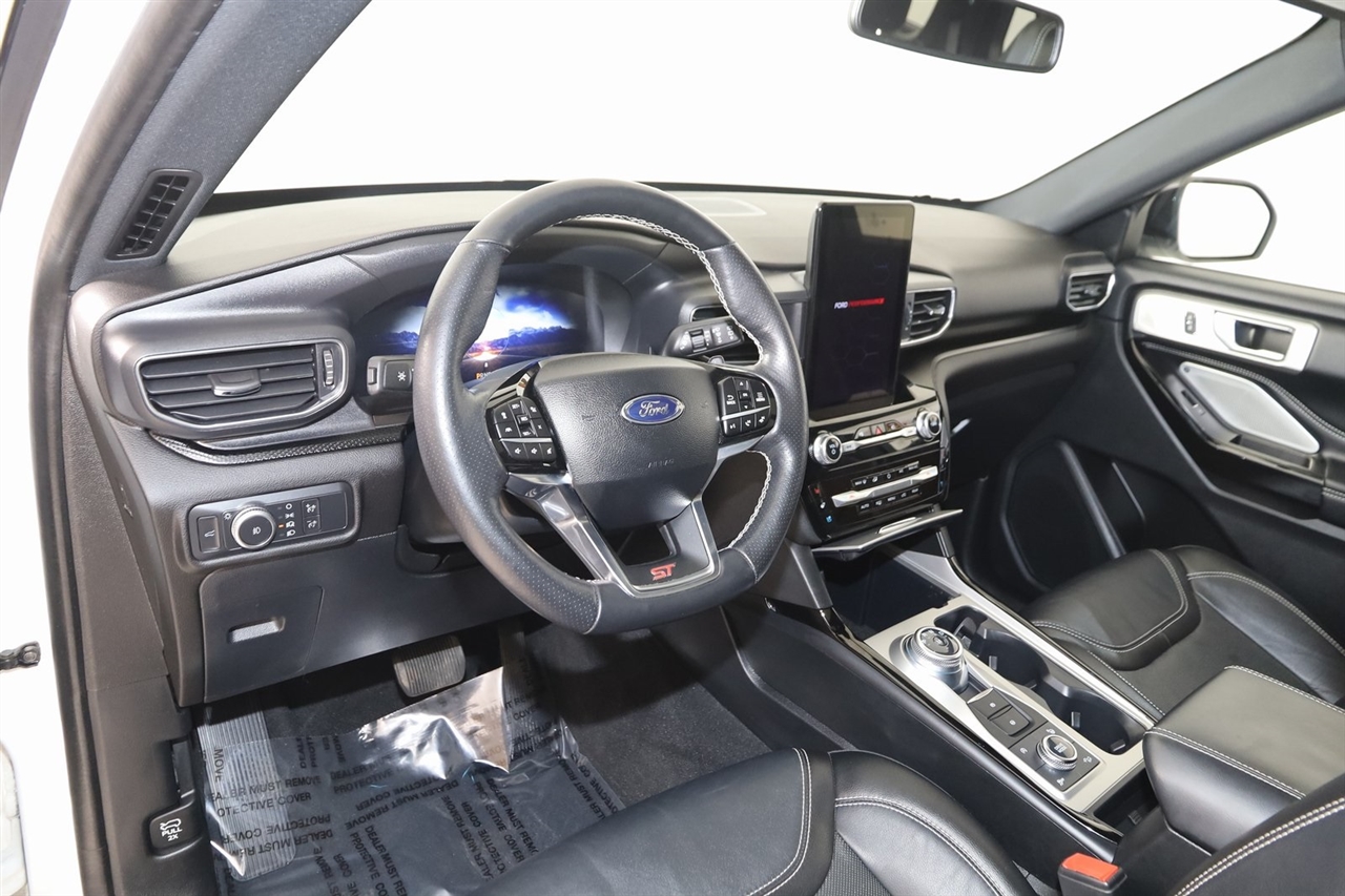 Navigation, Back Up Camera, Bluetooth, Panoramic Roof, Touch Screen, Heated Front Seats, Heated Steering Wheel, Ventilated Front Seats, Blind Spot, Apple CarPlay/Android Auto, Explorer ST, 4D Sport Utility, 3.0L EcoBoost V6, 10-Speed Automatic, 4WD, White Metallic, Ebony Leather, Navigation System.