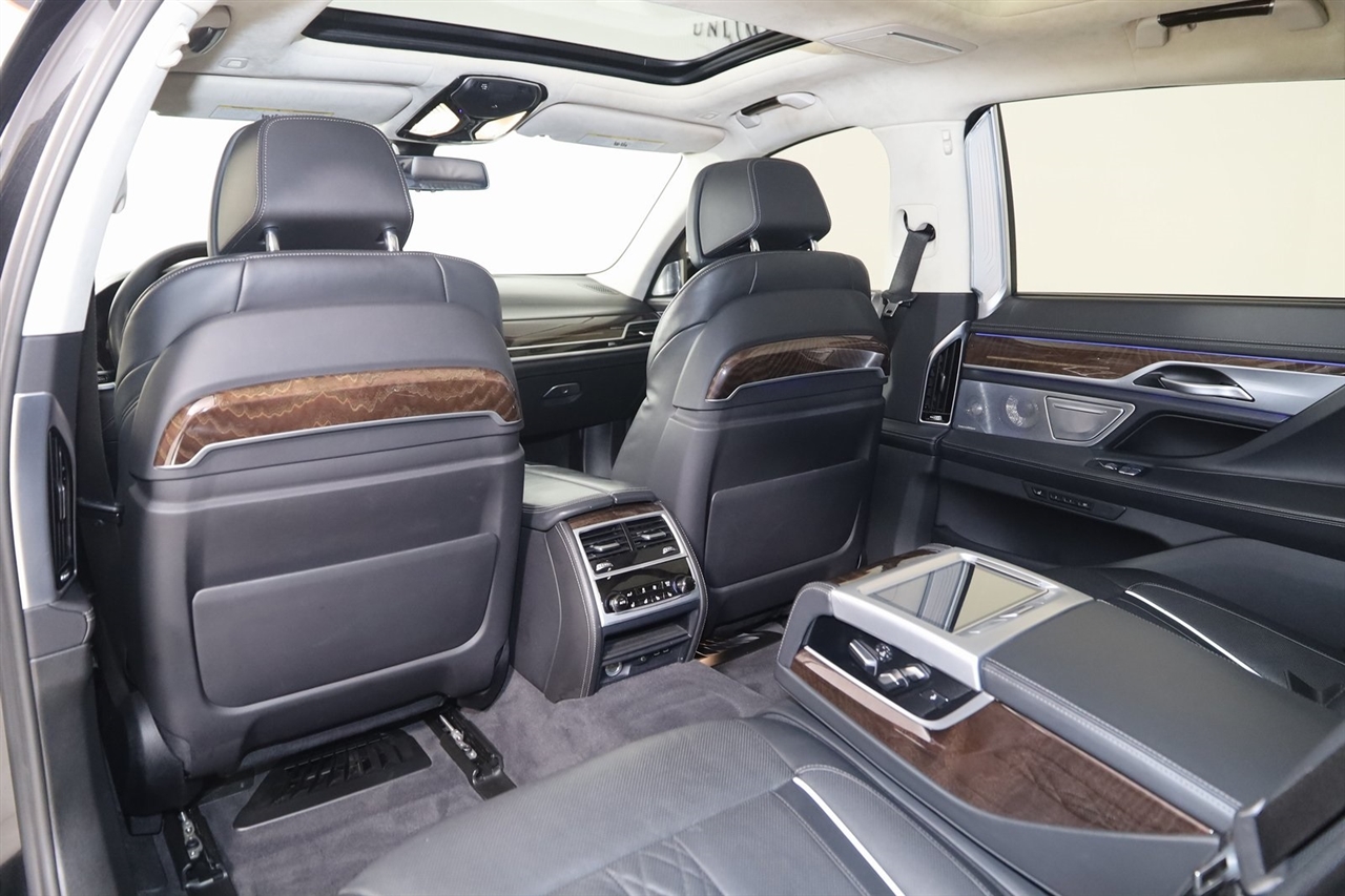 Navigation, Back Up Camera, Bluetooth, Panoramic Roof, Touch Screen, Heated Front Seats, Ventilated Front Seats, Blind Spot, Apple CarPlay/Android Auto, 750i xDrive, 4D Sedan, 4.4L V8 32V Twin Turbocharged, 8-Speed Automatic, AWD, Black Sapphire Metallic, Black Leather, 7" Touch Command Tablet, Active Driving Assistant Delete, Active Driving Assistant Pro, Ceramic Controls, Connected Package Pro, Coordinated Upholstery Color Alcantara Headliner, Driving Assistance Professional Package, Executive Package, Extended Traffic Jam Assistant, Front Massaging Seats, Front Ventilated Seats, Grab Handle in Wood Trim, Heated Steering Wheel w/Fr & Rr Seats & Armrests, Instrument Panel w/Nappa Leather Finish, Interior Design Package, Interior Design Package (7S5), Luxury Rear Floor Mats, Luxury Rear Seating Package, Navigation System, Panoramic Moonroof Delete, Panoramic Sky Lounge LED Roof, Power Rear Sunshade & Rear Side Window Shades, Rear Center Armrest w/Wood Trim, Rear Comfort Seats, Rear Massaging Seats, Rear Seat Belt Cover in Wood Trim, Rear Ventilated Seats.