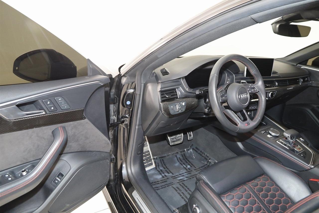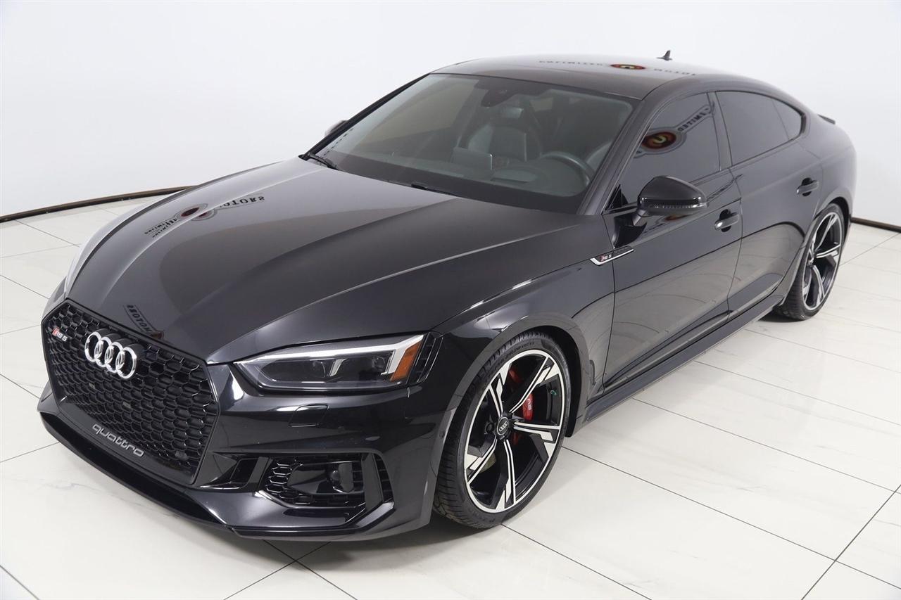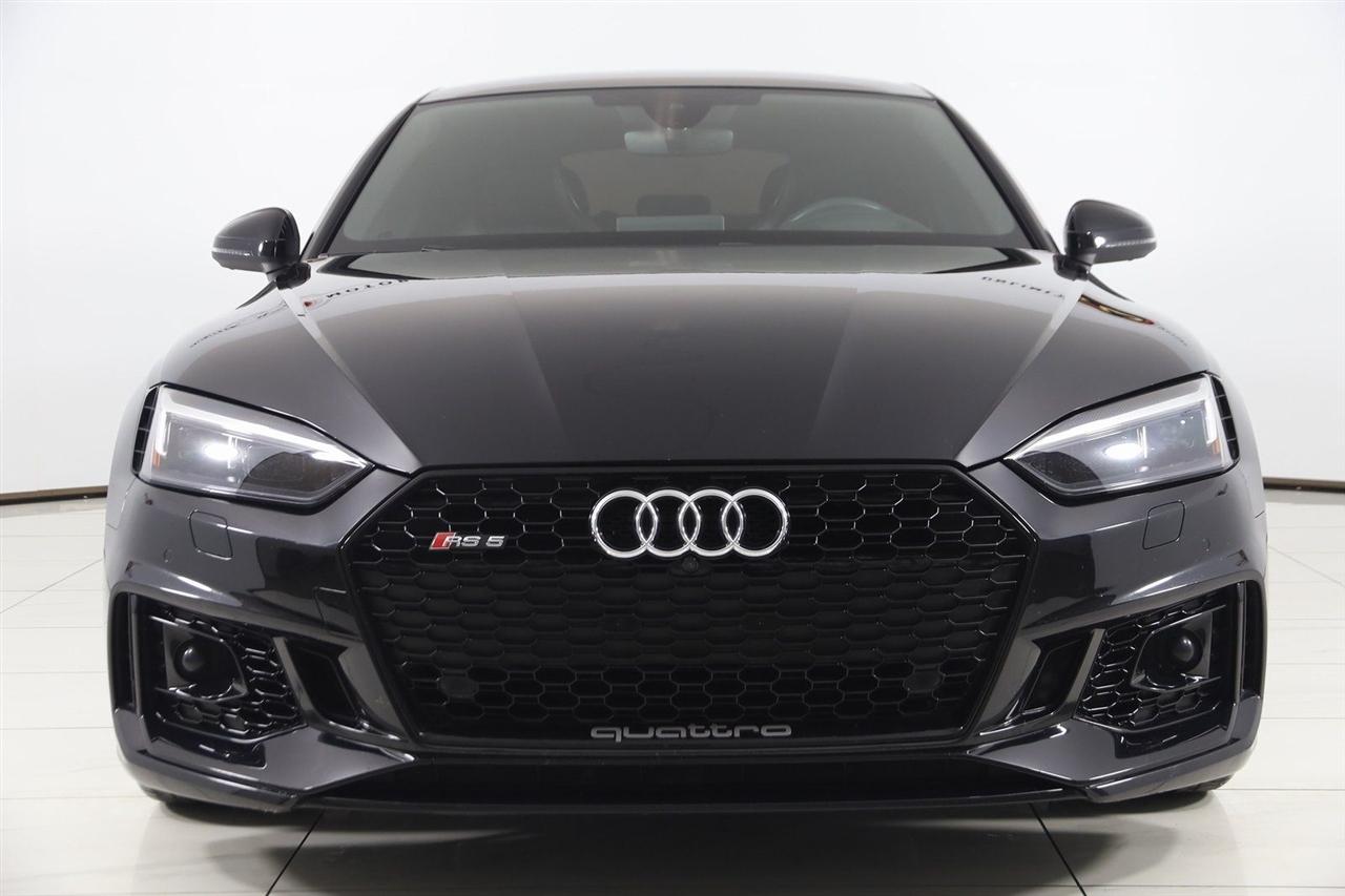 Navigation, Back Up Camera, Bluetooth, Sun/Moon Roof, Touch Screen, Heated Front Seats, Blind Spot, Massage Front Seats, RS 5 2.9T quattro, 4D Hatchback, 2.9L TFSI 6 Cylinder 24V DOHC, 8-Speed Automatic with Tiptronic, quattro, Black Metallic, Black Leather, Adaptive Cruise Control w/Traffic Jam Assist, Audi Active Lane Assist, Black Optic Package, Cold Weather Package, Dynamic Package, Fine Nappa Leather Package, Fine Nappa Leather Seating Surfaces, Head-Up Display, Heated Rear Seats, Heated Steering Wheel, High Gloss Black Exterior Kit w/quattro Script, High-Beam Assistant, High-Gloss Black Exterior Mirror Housings, LED Interior Lighting Plus Package, Navigation System, Navigation system: Audi Navigation Plus, Park Steering Assist, Red Brake Calipers, RS Driver Assistance Package, RS Sport Exhaust System w/Black Tips, RS Sport Suspension Plus w/Dynamic Ride Control, Top View Camera System, Traffic Sign Recognition, Wheels: 20" 5-Arm-Flag Forged Design.