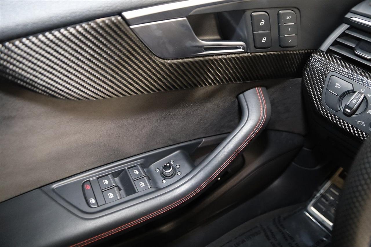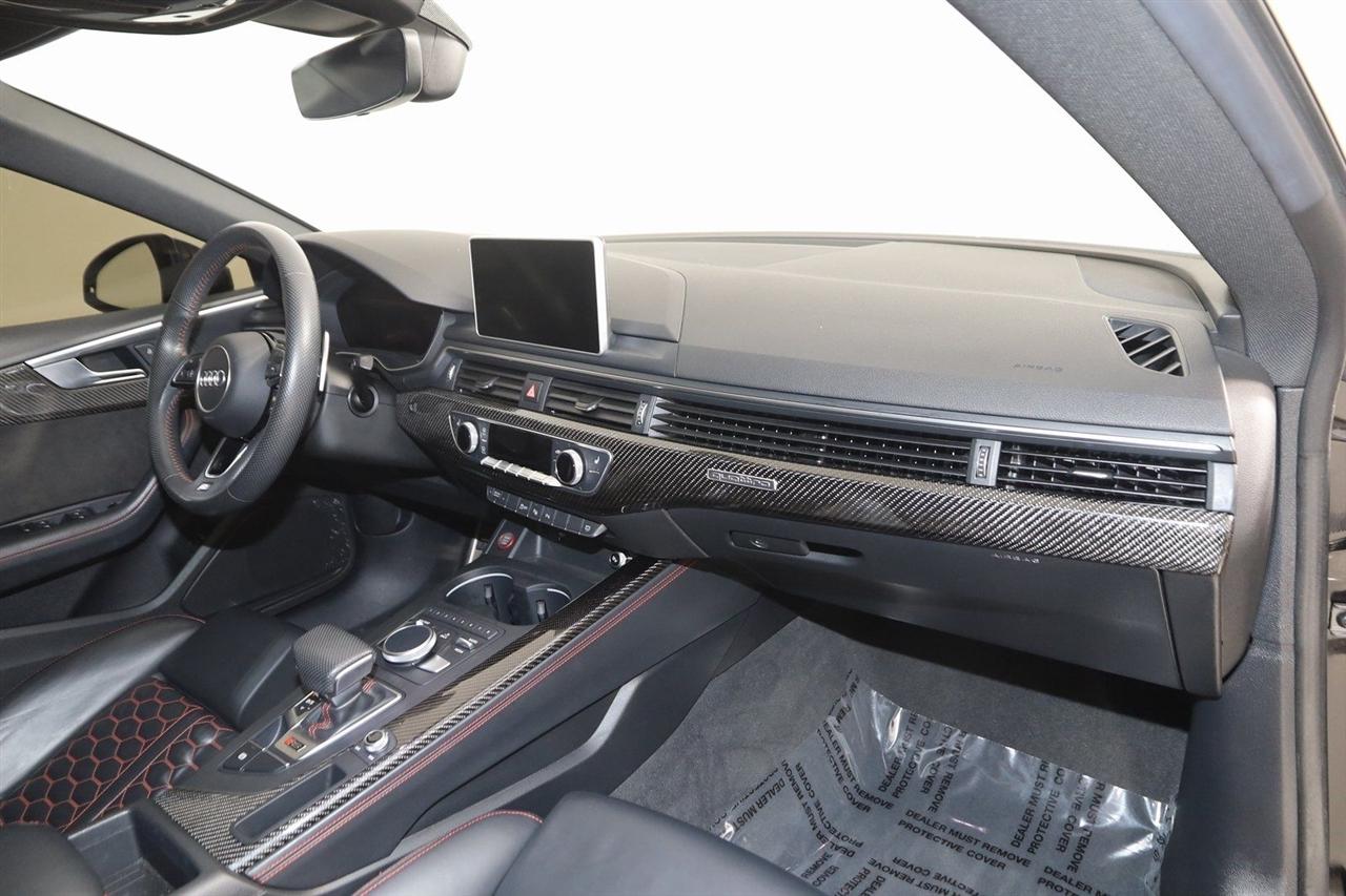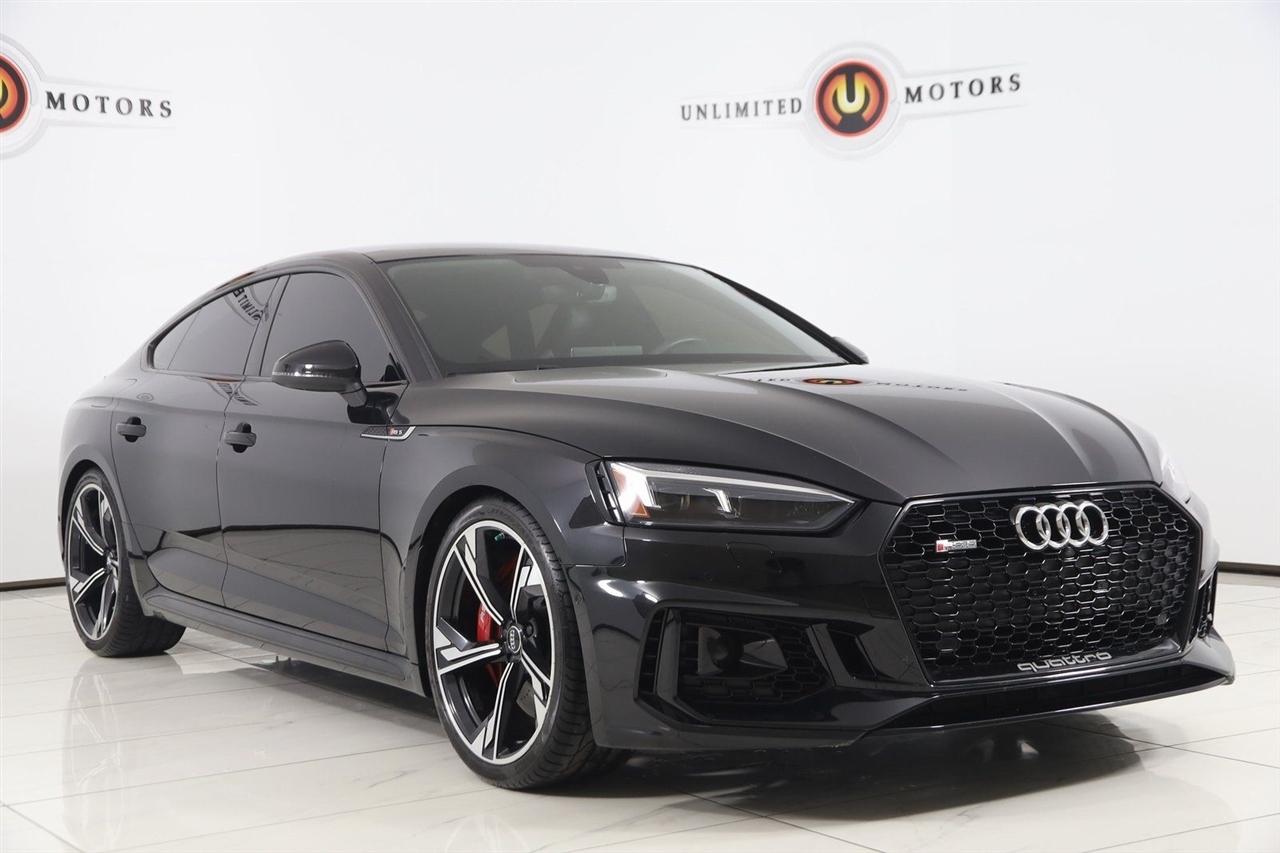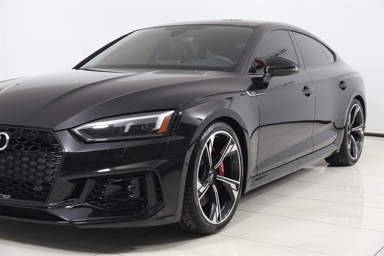 Navigation, Back Up Camera, Bluetooth, Sun/Moon Roof, Touch Screen, Heated Front Seats, Blind Spot, Massage Front Seats, RS 5 2.9T quattro, 4D Hatchback, 2.9L TFSI 6 Cylinder 24V DOHC, 8-Speed Automatic with Tiptronic, quattro, Black Metallic, Black Leather, Adaptive Cruise Control w/Traffic Jam Assist, Audi Active Lane Assist, Black Optic Package, Cold Weather Package, Dynamic Package, Fine Nappa Leather Package, Fine Nappa Leather Seating Surfaces, Head-Up Display, Heated Rear Seats, Heated Steering Wheel, High Gloss Black Exterior Kit w/quattro Script, High-Beam Assistant, High-Gloss Black Exterior Mirror Housings, LED Interior Lighting Plus Package, Navigation System, Navigation system: Audi Navigation Plus, Park Steering Assist, Red Brake Calipers, RS Driver Assistance Package, RS Sport Exhaust System w/Black Tips, RS Sport Suspension Plus w/Dynamic Ride Control, Top View Camera System, Traffic Sign Recognition, Wheels: 20" 5-Arm-Flag Forged Design.