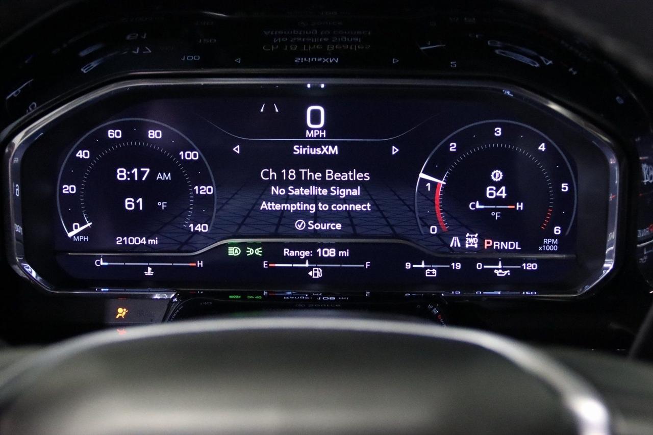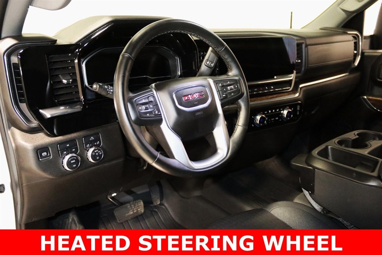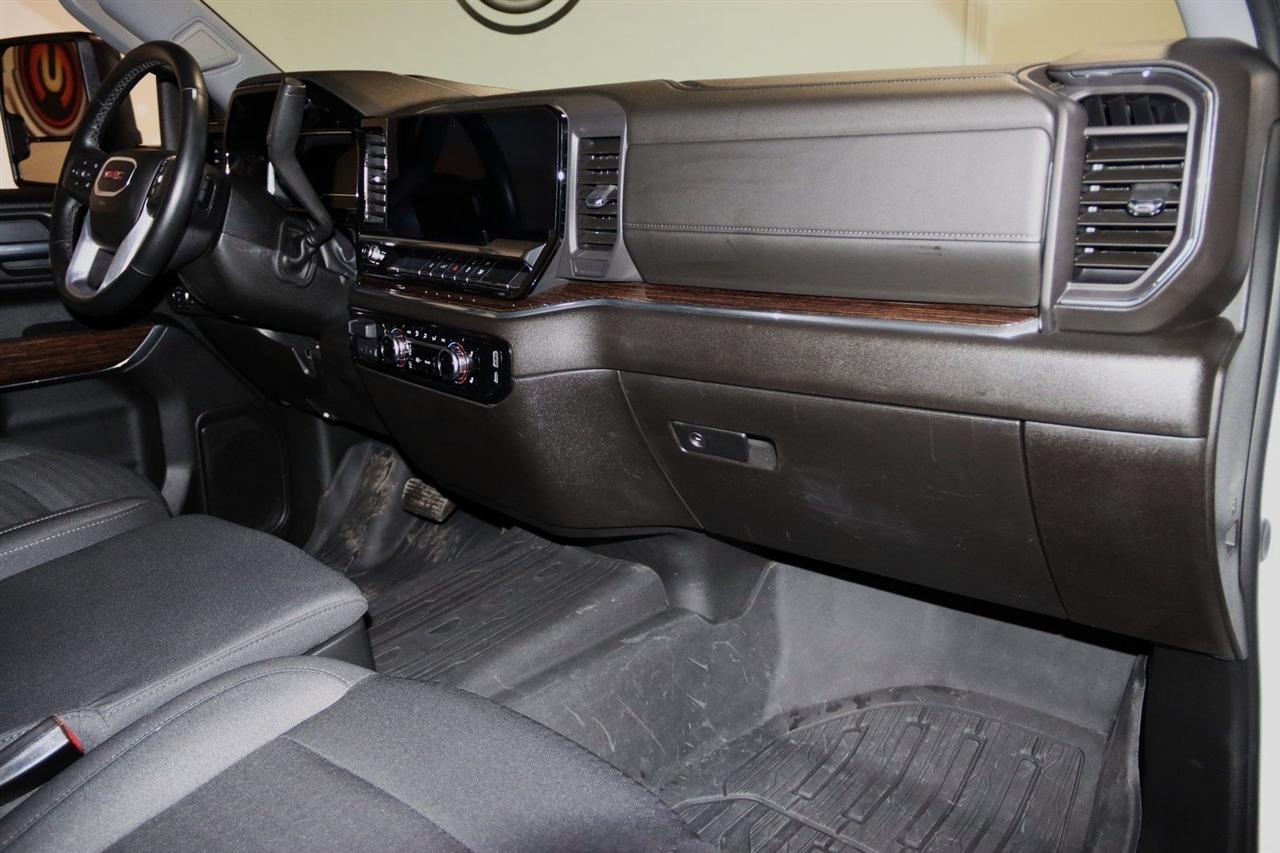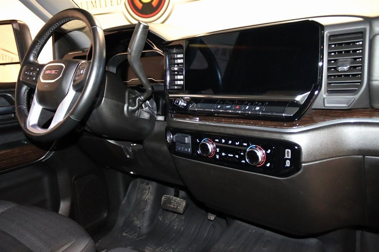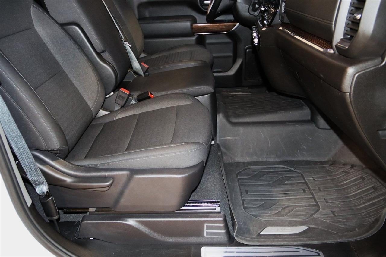Bluetooth, Back Up Camera, Towing, Heated Seats, Touch Screen, 10-Way Power Driver Seat Adjuster w/Lumbar, 120-Volt Bed Mounted Power Outlet, 120-Volt Instrument Panel Power Outlet, 17" Machined Aluminum Wheels, 2 Charge/Data USB Ports, 2 Speakers, 2-Speaker Audio System Feature, 2-Speed Electronic Shift Transfer Case, 220-Amp Alternator, 3.73 Rear Axle Ratio, 4-Way Manual Driver Seat Adjuster, 4-Way Manual Passenger Seat Adjuster, 4-Wheel Disc Brakes, A/C w/Dual-Zone Automatic Climate Control, ABS brakes, Air Conditioning, Alloy wheels, AM/FM radio: SiriusXM with 360L, Apple CarPlay/Android Auto, Auto High-beam Headlights, Automatic Emergency Braking, Brake assist, Buckle to Drive, Bumpers: chrome, Chrome Surround Grille w/Chrome Insert Bars, Cloth Seat Trim, Compass, Deep-Tinted Glass, Delay-off headlights, Driver door bin, Driver vanity mirror, Dual front impact airbags, Dual front side impact airbags, Electric Rear-Window Defogger, Electronic Stability Control, Emergency communication system: OnStar, Following Distance Indicator, Forward Collision Alert, Front 40/20/40 Split-Bench Seats, Front anti-roll bar, Front Center Armrest w/Storage, Front License Plate Kit, Front Pedestrian Braking, Front reading lights, Front wheel independent suspension, Fully automatic headlights, Heated door mirrors, Heated Driver & Front Outboard Passenger Seats, Heated Steering Wheel, Heavy-Duty 80 Amp Battery, Illuminated entry, IntelliBeam Automatic High Beam On/Off, Keyless Open & Start, Lane Departure Warning System, LED Fog Lamps, LED Smoked Amber Roof Marker Lamps, Low tire pressure warning, Manual Tilt-Wheel/Telescoping Steering Column, Occupant sensing airbag, OnStar Services Capable, Outside temperature display, Overhead airbag, Overhead console, Panic alarm, Passenger door bin, Passenger vanity mirror, Pickup Box, Power door mirrors, Power steering, Power windows, Preferred Equipment Group 3SA, Push Button Start, Radio: AM/FM w/Premium GMC Infotainment System, Rear step bumper, Remote keyless entry, Remote Start Package, Remote Vehicle Starter System, SiriusXM w/360L Trial Subscription, SLE Convenience Package, SLE Heated Package, Snow Plow Prep/Camper Package, Speed control, Spray-On Pickup Bedliner w/GMC Logo, Steering Wheel Audio Controls, Steering wheel mounted audio controls, Suspension Package, Tachometer, Tilt steering wheel, Traction control, Trip computer, Turn signal indicator mirrors, Unauthorized Entry Theft-Deterrent System, Variably intermittent wipers, Voltmeter, Wireless Phone Projection. CARFAX One-Owner. Clean CARFAX.
