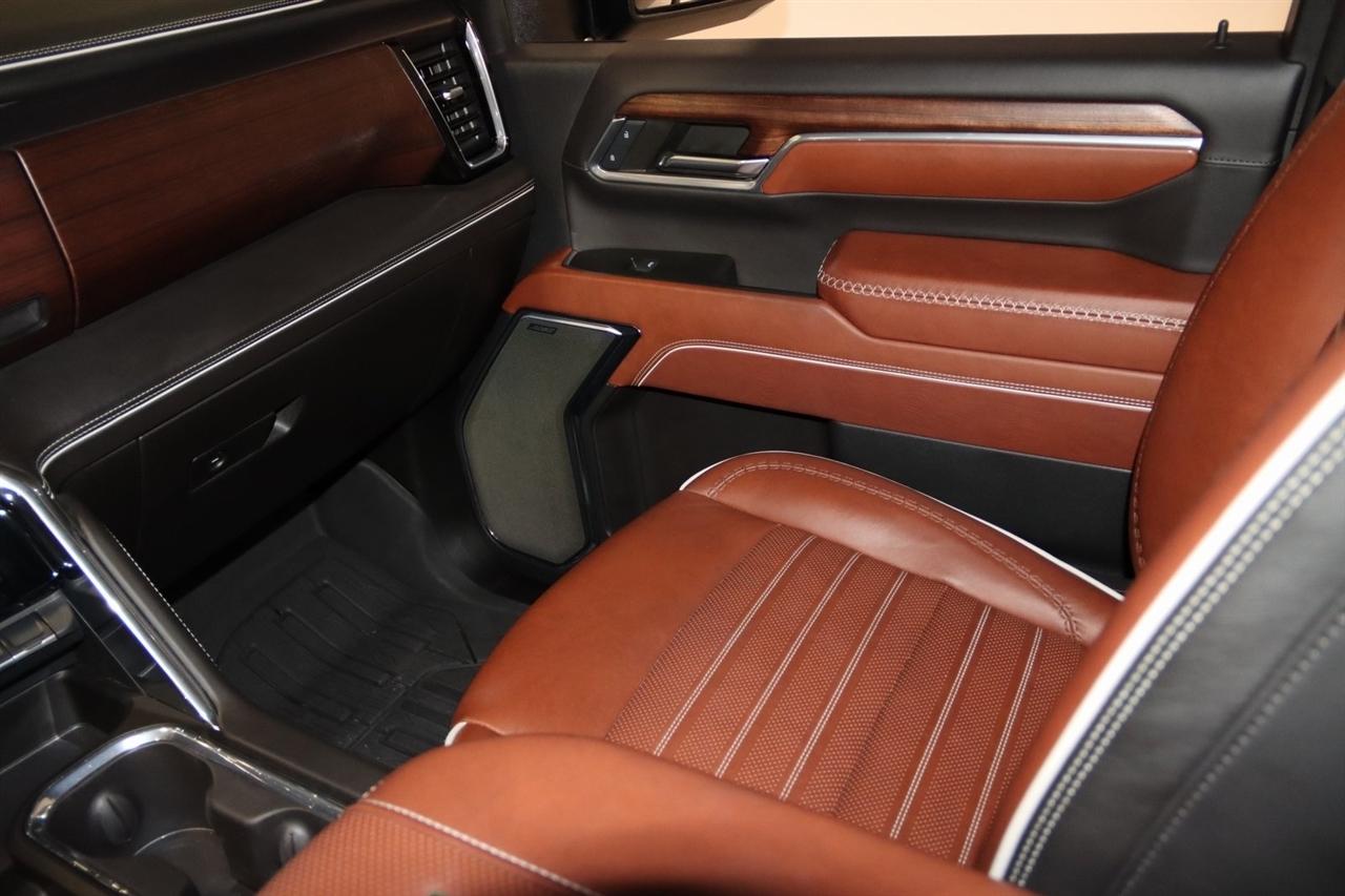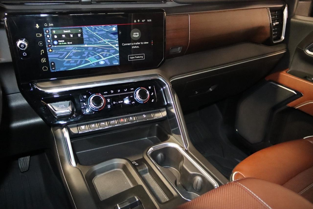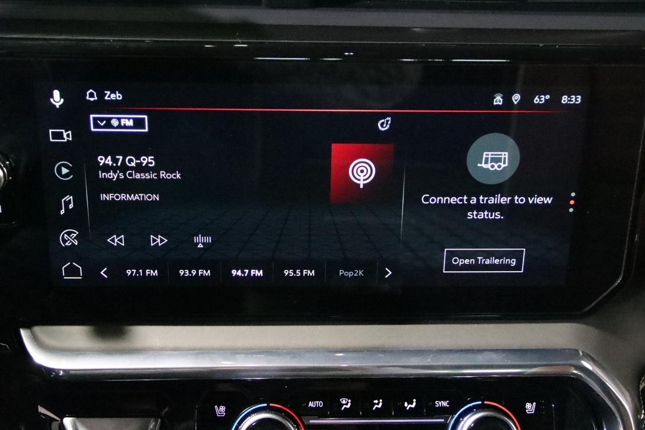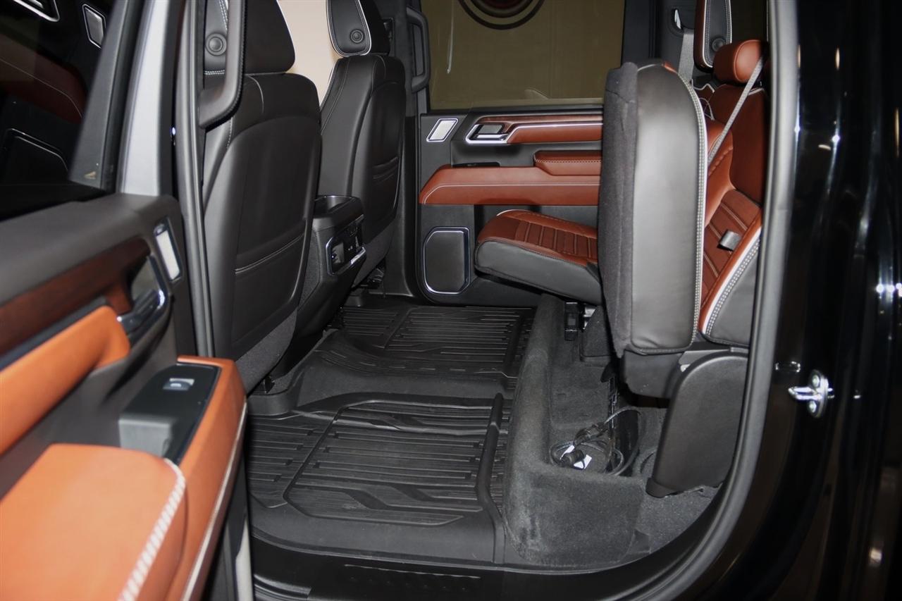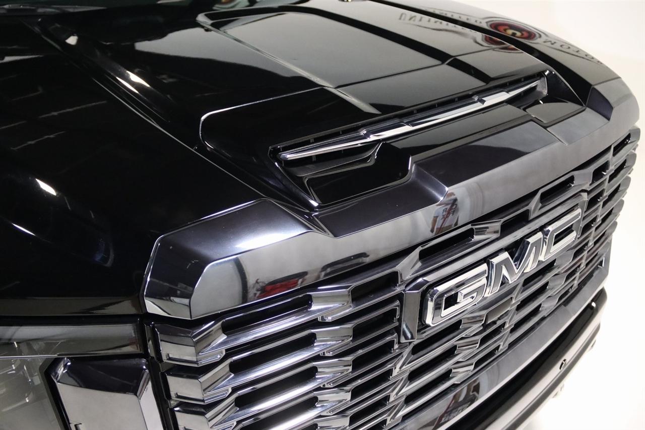 Navigation, Bluetooth, Back Up Camera, Heated Seats, Touch Screen, 120-Volt Bed Mounted Power Outlet, 120-Volt Instrument Panel Power Outlet, 16-Way Power Driver Seat Adjuster w/Lumbar, 16-Way Power Passenger Seat Adjuster w/Lumbar, 2 Charge-Only Rear USB Ports, 2 Charge/Data USB Ports Inside Center Console, 2 USB Ports, 2-Speed Active Transfer Case, 220-Amp Alternator, 3.42 Axle Ratio, 4-Wheel Disc Brakes, ABS brakes, Air Conditioning, Alloy wheels, Apple CarPlay/Android Auto, Auto High-beam Headlights, Auto-dimming door mirrors, Auto-dimming Rear-View mirror, Automatic Emergency Braking, Automatic temperature control, Bed View Camera w/2 Trailer Camera Provisions, Block heater, Body Color Wheel Arch Moldings (LPO), Bose Premium Series 12-Speaker System, Brake assist, Buckle to Drive, Bumpers: body-color, Compass, Deep-Tinted Glass, Delay-off headlights, Driver door bin, Driver Memory, Driver vanity mirror, Dual front impact airbags, Dual front side impact airbags, Dual Heavy-Duty 70 Amp Battery, Electric Rear-Window Defogger, Electronic Stability Control, Emergency communication system: OnStar and GMC connected services capable, Floor-Mounted Center Console, Following Distance Indicator, Forward Collision Alert, Front anti-roll bar, Front Bucket Seats, Front Center Armrest, Front dual zone A/C, Front fog lights, Front Pedestrian Braking, Front Rain-Sensing Wipers, Front reading lights, Front wheel independent suspension, Full Grain Leather Seat Trim, Fully automatic headlights, Garage door transmitter, Genuine wood dashboard insert, Genuine wood door panel insert, GMC Connected Access Capable, Gooseneck/5th Wheel Prep Package, HD Surround Vision, Heads-Up Display, Heated 2nd Row Outboard Seats, Heated door mirrors, Heated Driver & Front Outboard Passenger Seats, Heated front seats, Heated rear seats, Heated steering wheel, Hill Descent Control, Hitch Guidance w/Hitch View, Illuminated entry, In-Vehicle Trailering System App, Inside Rearview Auto-Dimming Rear Camera Mirror, Integrated Trailer Brake Controller, IntelliBeam Automatic High Beam On/Off, Keyless Open & Start, Lane Departure Warning System, Leather steering wheel, LED Cargo Area Lighting, LED Smoked Amber Roof Marker Lamps, Low tire pressure warning, Manual Tilt-Wheel/Telescoping Steering Column, Memory seat, Multicolor 15" Diagonal Head-Up Display, Navigation System, Occupant sensing airbag, Off-Road Suspension, OnStar & GMC Connected Services Capable, Outside temperature display, Overhead airbag, Overhead console, Panic alarm, Passenger door bin, Passenger vanity mirror, Pickup Box, Power door mirrors, Power driver seat, Power Front Passenger Windows w/Express Up/Down, Power moonroof, Power passenger seat, Power Sliding Rear Window w/Defogger, Power steering, Power Sunroof, Power windows, Preferred Equipment Group 5SB, Premium audio system: Premium GMC Infotainment System, Push Button Start, Radio: AM/FM w/Premium GMC Infotainment System, Rain sensing wipers, Rear Cross Traffic Alert, Rear reading lights, Rear seat center armrest, Rear step bumper, Rear Wheelhouse Liners, Rear window defroster, Remote keyless entry, Remote Vehicle Starter System, Safety Alert Seat, Security system, Signature Denali Grille in Vadar Chrome, SiriusXM w/360L, Speed control, Speed-sensing steering, Split folding rear seat, Spray-On Bedliner w/Denali Logo, Steering Wheel Audio Controls, Steering wheel mounted audio controls, Tachometer, Technology Package, Telescoping steering wheel, Tilt steering wheel, Traction control, Trailer Cam Provisions & Trailer Viewing Software, Trailer Side Blind Zone Alert, Trailer Tire Pressure Monitor Sensors, Trip computer, Turn signal indicator mirrors, Ultrasonic Front & Rear Park Assist, Unauthorized Entry Theft-Deterrent System, Universal Home Remote, Variably intermittent wipers, Ventilated Driver & Front Passenger Seats, Ventilated front seats, Voltmeter, Wheels: 22" High Gloss Black Aluminum (LPO), Wireless Charging, Wireless Phone Projection, X31