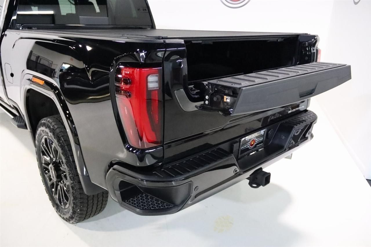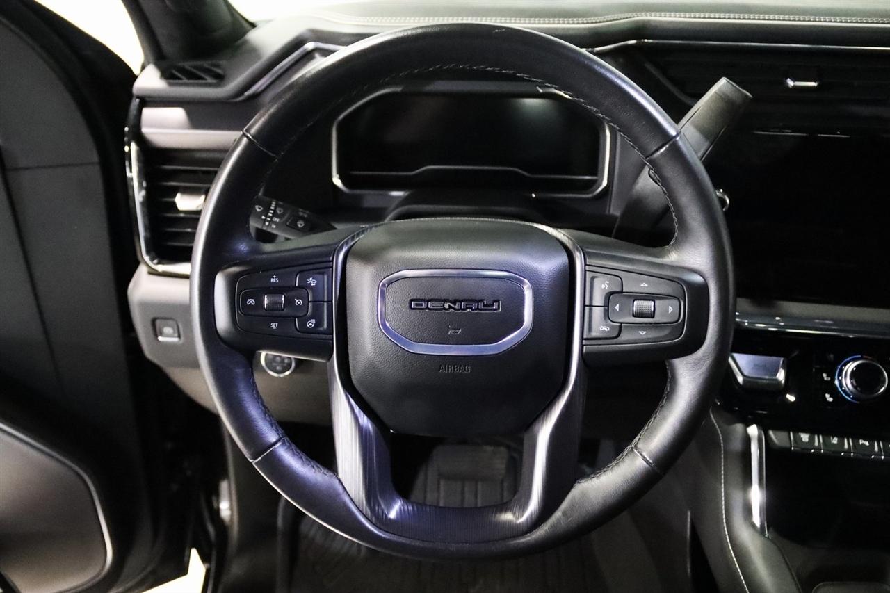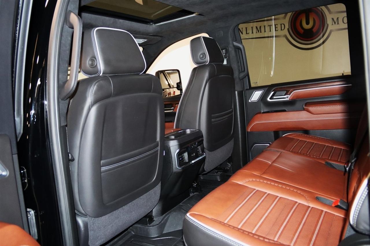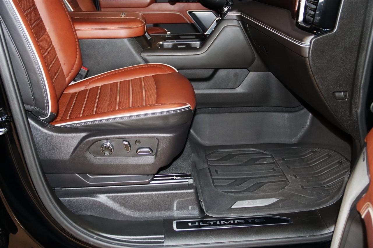 Navigation, Bluetooth, Back Up Camera, Heated Seats, Touch Screen, 120-Volt Bed Mounted Power Outlet, 120-Volt Instrument Panel Power Outlet, 16-Way Power Driver Seat Adjuster w/Lumbar, 16-Way Power Passenger Seat Adjuster w/Lumbar, 2 Charge-Only Rear USB Ports, 2 Charge/Data USB Ports Inside Center Console, 2 USB Ports, 2-Speed Active Transfer Case, 220-Amp Alternator, 3.42 Axle Ratio, 4-Wheel Disc Brakes, ABS brakes, Air Conditioning, Alloy wheels, Apple CarPlay/Android Auto, Auto High-beam Headlights, Auto-dimming door mirrors, Auto-dimming Rear-View mirror, Automatic Emergency Braking, Automatic temperature control, Bed View Camera w/2 Trailer Camera Provisions, Block heater, Body Color Wheel Arch Moldings (LPO), Bose Premium Series 12-Speaker System, Brake assist, Buckle to Drive, Bumpers: body-color, Compass, Deep-Tinted Glass, Delay-off headlights, Driver door bin, Driver Memory, Driver vanity mirror, Dual front impact airbags, Dual front side impact airbags, Dual Heavy-Duty 70 Amp Battery, Electric Rear-Window Defogger, Electronic Stability Control, Emergency communication system: OnStar and GMC connected services capable, Floor-Mounted Center Console, Following Distance Indicator, Forward Collision Alert, Front anti-roll bar, Front Bucket Seats, Front Center Armrest, Front dual zone A/C, Front fog lights, Front Pedestrian Braking, Front Rain-Sensing Wipers, Front reading lights, Front wheel independent suspension, Full Grain Leather Seat Trim, Fully automatic headlights, Garage door transmitter, Genuine wood dashboard insert, Genuine wood door panel insert, GMC Connected Access Capable, Gooseneck/5th Wheel Prep Package, HD Surround Vision, Heads-Up Display, Heated 2nd Row Outboard Seats, Heated door mirrors, Heated Driver & Front Outboard Passenger Seats, Heated front seats, Heated rear seats, Heated steering wheel, Hill Descent Control, Hitch Guidance w/Hitch View, Illuminated entry, In-Vehicle Trailering System App, Inside Rearview Auto-Dimming Rear Camera Mirror, Integrated Trailer Brake Controller, IntelliBeam Automatic High Beam On/Off, Keyless Open & Start, Lane Departure Warning System, Leather steering wheel, LED Cargo Area Lighting, LED Smoked Amber Roof Marker Lamps, Low tire pressure warning, Manual Tilt-Wheel/Telescoping Steering Column, Memory seat, Multicolor 15" Diagonal Head-Up Display, Navigation System, Occupant sensing airbag, Off-Road Suspension, OnStar & GMC Connected Services Capable, Outside temperature display, Overhead airbag, Overhead console, Panic alarm, Passenger door bin, Passenger vanity mirror, Pickup Box, Power door mirrors, Power driver seat, Power Front Passenger Windows w/Express Up/Down, Power moonroof, Power passenger seat, Power Sliding Rear Window w/Defogger, Power steering, Power Sunroof, Power windows, Preferred Equipment Group 5SB, Premium audio system: Premium GMC Infotainment System, Push Button Start, Radio: AM/FM w/Premium GMC Infotainment System, Rain sensing wipers, Rear Cross Traffic Alert, Rear reading lights, Rear seat center armrest, Rear step bumper, Rear Wheelhouse Liners, Rear window defroster, Remote keyless entry, Remote Vehicle Starter System, Safety Alert Seat, Security system, Signature Denali Grille in Vadar Chrome, SiriusXM w/360L, Speed control, Speed-sensing steering, Split folding rear seat, Spray-On Bedliner w/Denali Logo, Steering Wheel Audio Controls, Steering wheel mounted audio controls, Tachometer, Technology Package, Telescoping steering wheel, Tilt steering wheel, Traction control, Trailer Cam Provisions & Trailer Viewing Software, Trailer Side Blind Zone Alert, Trailer Tire Pressure Monitor Sensors, Trip computer, Turn signal indicator mirrors, Ultrasonic Front & Rear Park Assist, Unauthorized Entry Theft-Deterrent System, Universal Home Remote, Variably intermittent wipers, Ventilated Driver & Front Passenger Seats, Ventilated front seats, Voltmeter, Wheels: 22" High Gloss Black Aluminum (LPO), Wireless Charging, Wireless Phone Projection, X31