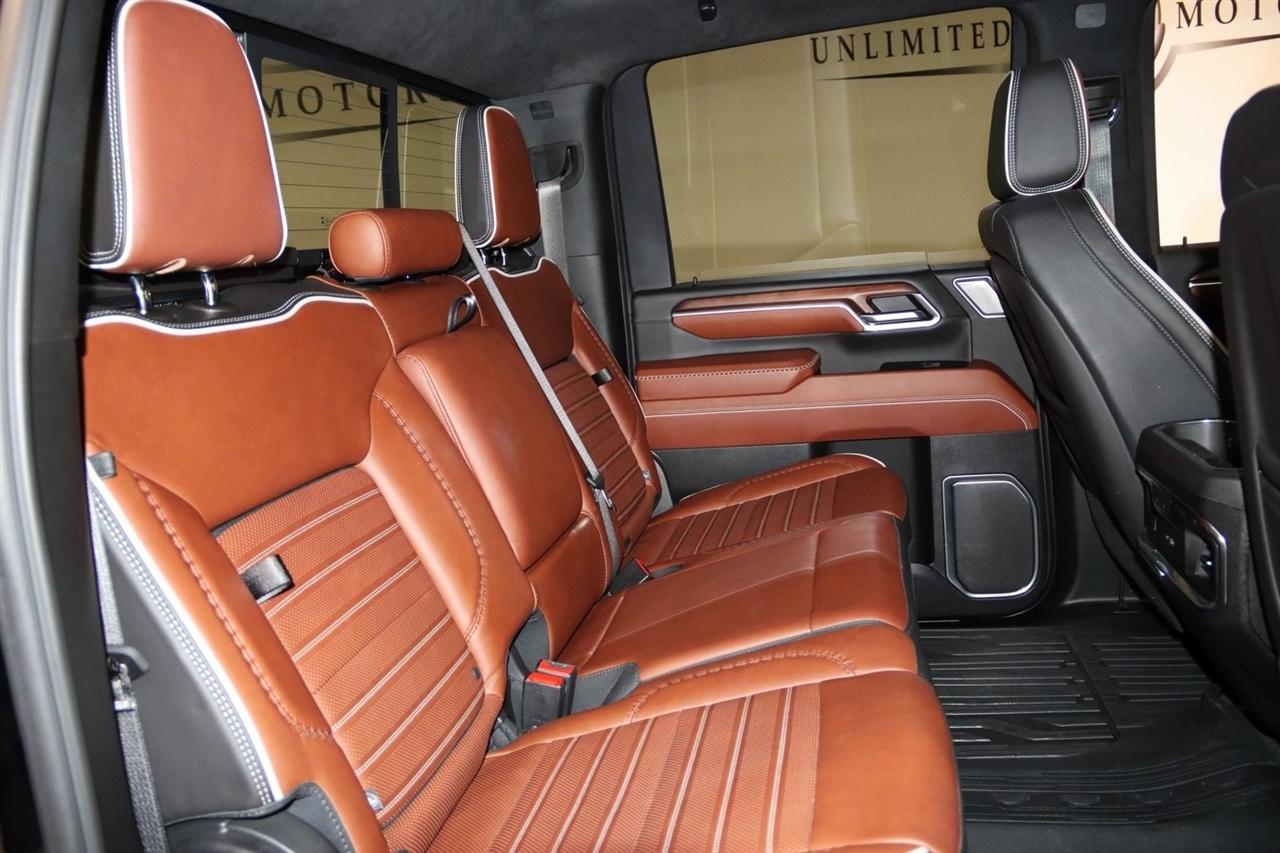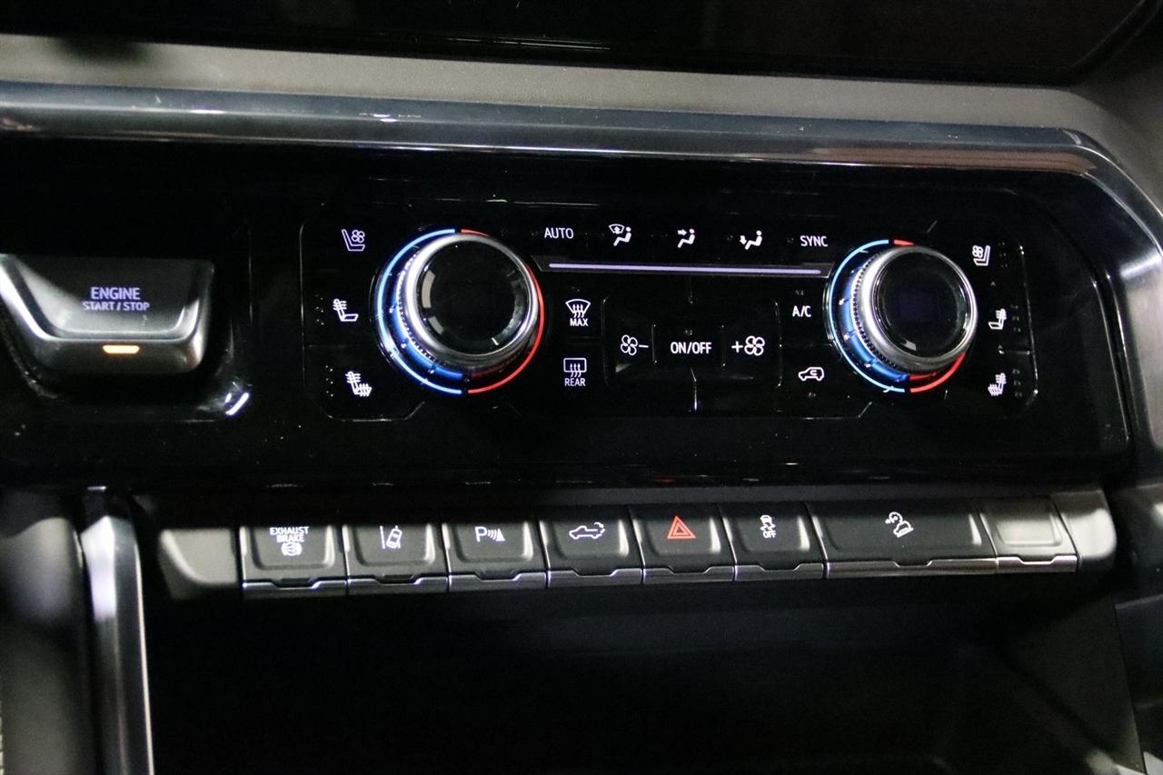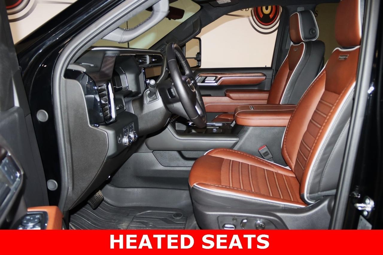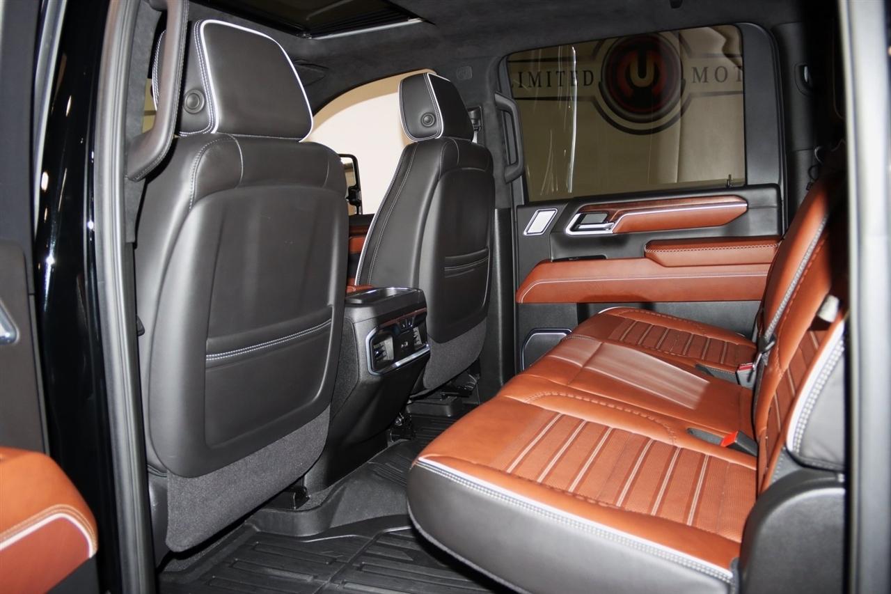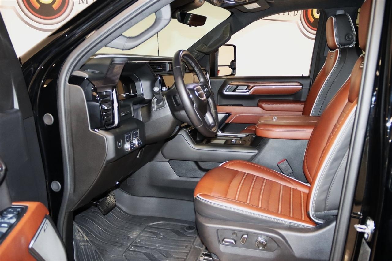 Navigation, Bluetooth, Back Up Camera, Heated Seats, Touch Screen, 120-Volt Bed Mounted Power Outlet, 120-Volt Instrument Panel Power Outlet, 16-Way Power Driver Seat Adjuster w/Lumbar, 16-Way Power Passenger Seat Adjuster w/Lumbar, 2 Charge-Only Rear USB Ports, 2 Charge/Data USB Ports Inside Center Console, 2 USB Ports, 2-Speed Active Transfer Case, 220-Amp Alternator, 3.42 Axle Ratio, 4-Wheel Disc Brakes, ABS brakes, Air Conditioning, Alloy wheels, Apple CarPlay/Android Auto, Auto High-beam Headlights, Auto-dimming door mirrors, Auto-dimming Rear-View mirror, Automatic Emergency Braking, Automatic temperature control, Bed View Camera w/2 Trailer Camera Provisions, Block heater, Body Color Wheel Arch Moldings (LPO), Bose Premium Series 12-Speaker System, Brake assist, Buckle to Drive, Bumpers: body-color, Compass, Deep-Tinted Glass, Delay-off headlights, Driver door bin, Driver Memory, Driver vanity mirror, Dual front impact airbags, Dual front side impact airbags, Dual Heavy-Duty 70 Amp Battery, Electric Rear-Window Defogger, Electronic Stability Control, Emergency communication system: OnStar and GMC connected services capable, Floor-Mounted Center Console, Following Distance Indicator, Forward Collision Alert, Front anti-roll bar, Front Bucket Seats, Front Center Armrest, Front dual zone A/C, Front fog lights, Front Pedestrian Braking, Front Rain-Sensing Wipers, Front reading lights, Front wheel independent suspension, Full Grain Leather Seat Trim, Fully automatic headlights, Garage door transmitter, Genuine wood dashboard insert, Genuine wood door panel insert, GMC Connected Access Capable, Gooseneck/5th Wheel Prep Package, HD Surround Vision, Heads-Up Display, Heated 2nd Row Outboard Seats, Heated door mirrors, Heated Driver & Front Outboard Passenger Seats, Heated front seats, Heated rear seats, Heated steering wheel, Hill Descent Control, Hitch Guidance w/Hitch View, Illuminated entry, In-Vehicle Trailering System App, Inside Rearview Auto-Dimming Rear Camera Mirror, Integrated Trailer Brake Controller, IntelliBeam Automatic High Beam On/Off, Keyless Open & Start, Lane Departure Warning System, Leather steering wheel, LED Cargo Area Lighting, LED Smoked Amber Roof Marker Lamps, Low tire pressure warning, Manual Tilt-Wheel/Telescoping Steering Column, Memory seat, Multicolor 15" Diagonal Head-Up Display, Navigation System, Occupant sensing airbag, Off-Road Suspension, OnStar & GMC Connected Services Capable, Outside temperature display, Overhead airbag, Overhead console, Panic alarm, Passenger door bin, Passenger vanity mirror, Pickup Box, Power door mirrors, Power driver seat, Power Front Passenger Windows w/Express Up/Down, Power moonroof, Power passenger seat, Power Sliding Rear Window w/Defogger, Power steering, Power Sunroof, Power windows, Preferred Equipment Group 5SB, Premium audio system: Premium GMC Infotainment System, Push Button Start, Radio: AM/FM w/Premium GMC Infotainment System, Rain sensing wipers, Rear Cross Traffic Alert, Rear reading lights, Rear seat center armrest, Rear step bumper, Rear Wheelhouse Liners, Rear window defroster, Remote keyless entry, Remote Vehicle Starter System, Safety Alert Seat, Security system, Signature Denali Grille in Vadar Chrome, SiriusXM w/360L, Speed control, Speed-sensing steering, Split folding rear seat, Spray-On Bedliner w/Denali Logo, Steering Wheel Audio Controls, Steering wheel mounted audio controls, Tachometer, Technology Package, Telescoping steering wheel, Tilt steering wheel, Traction control, Trailer Cam Provisions & Trailer Viewing Software, Trailer Side Blind Zone Alert, Trailer Tire Pressure Monitor Sensors, Trip computer, Turn signal indicator mirrors, Ultrasonic Front & Rear Park Assist, Unauthorized Entry Theft-Deterrent System, Universal Home Remote, Variably intermittent wipers, Ventilated Driver & Front Passenger Seats, Ventilated front seats, Voltmeter, Wheels: 22" High Gloss Black Aluminum (LPO), Wireless Charging, Wireless Phone Projection, X31