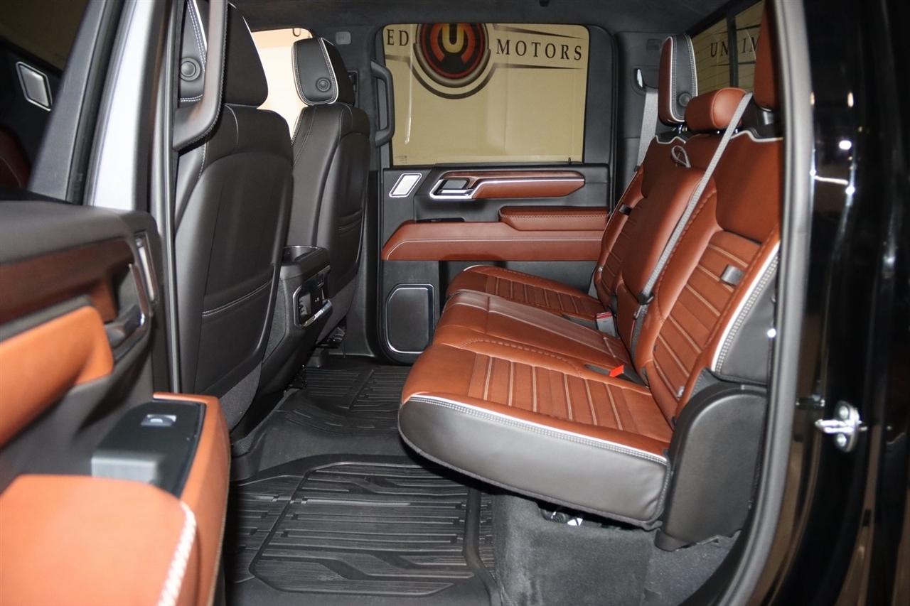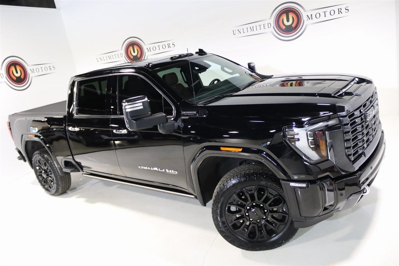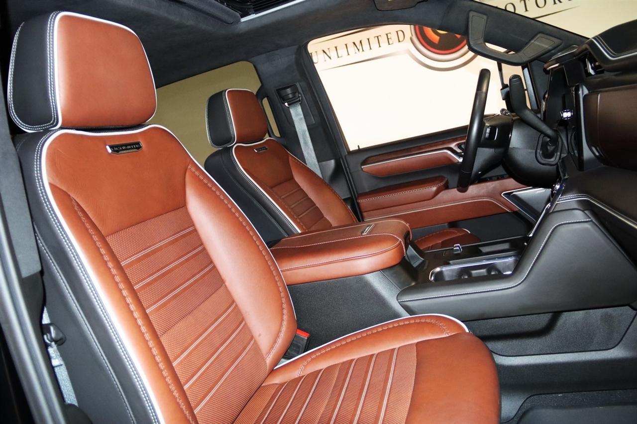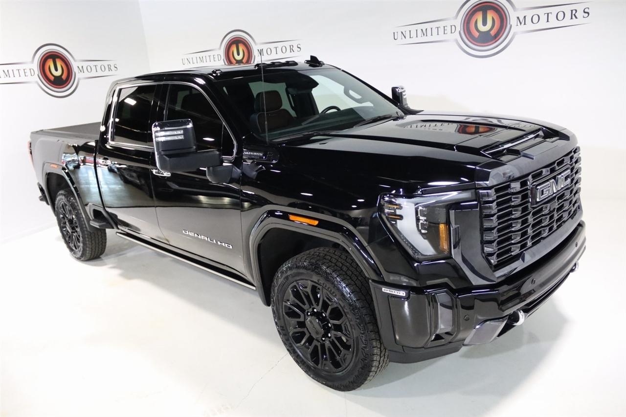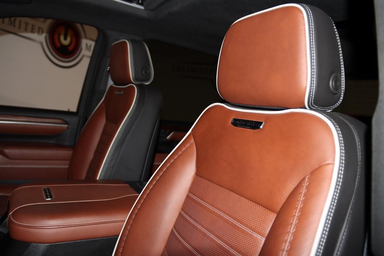 Navigation, Bluetooth, Back Up Camera, Heated Seats, Touch Screen, 120-Volt Bed Mounted Power Outlet, 120-Volt Instrument Panel Power Outlet, 16-Way Power Driver Seat Adjuster w/Lumbar, 16-Way Power Passenger Seat Adjuster w/Lumbar, 2 Charge-Only Rear USB Ports, 2 Charge/Data USB Ports Inside Center Console, 2 USB Ports, 2-Speed Active Transfer Case, 220-Amp Alternator, 3.42 Axle Ratio, 4-Wheel Disc Brakes, ABS brakes, Air Conditioning, Alloy wheels, Apple CarPlay/Android Auto, Auto High-beam Headlights, Auto-dimming door mirrors, Auto-dimming Rear-View mirror, Automatic Emergency Braking, Automatic temperature control, Bed View Camera w/2 Trailer Camera Provisions, Block heater, Body Color Wheel Arch Moldings (LPO), Bose Premium Series 12-Speaker System, Brake assist, Buckle to Drive, Bumpers: body-color, Compass, Deep-Tinted Glass, Delay-off headlights, Driver door bin, Driver Memory, Driver vanity mirror, Dual front impact airbags, Dual front side impact airbags, Dual Heavy-Duty 70 Amp Battery, Electric Rear-Window Defogger, Electronic Stability Control, Emergency communication system: OnStar and GMC connected services capable, Floor-Mounted Center Console, Following Distance Indicator, Forward Collision Alert, Front anti-roll bar, Front Bucket Seats, Front Center Armrest, Front dual zone A/C, Front fog lights, Front Pedestrian Braking, Front Rain-Sensing Wipers, Front reading lights, Front wheel independent suspension, Full Grain Leather Seat Trim, Fully automatic headlights, Garage door transmitter, Genuine wood dashboard insert, Genuine wood door panel insert, GMC Connected Access Capable, Gooseneck/5th Wheel Prep Package, HD Surround Vision, Heads-Up Display, Heated 2nd Row Outboard Seats, Heated door mirrors, Heated Driver & Front Outboard Passenger Seats, Heated front seats, Heated rear seats, Heated steering wheel, Hill Descent Control, Hitch Guidance w/Hitch View, Illuminated entry, In-Vehicle Trailering System App, Inside Rearview Auto-Dimming Rear Camera Mirror, Integrated Trailer Brake Controller, IntelliBeam Automatic High Beam On/Off, Keyless Open & Start, Lane Departure Warning System, Leather steering wheel, LED Cargo Area Lighting, LED Smoked Amber Roof Marker Lamps, Low tire pressure warning, Manual Tilt-Wheel/Telescoping Steering Column, Memory seat, Multicolor 15" Diagonal Head-Up Display, Navigation System, Occupant sensing airbag, Off-Road Suspension, OnStar & GMC Connected Services Capable, Outside temperature display, Overhead airbag, Overhead console, Panic alarm, Passenger door bin, Passenger vanity mirror, Pickup Box, Power door mirrors, Power driver seat, Power Front Passenger Windows w/Express Up/Down, Power moonroof, Power passenger seat, Power Sliding Rear Window w/Defogger, Power steering, Power Sunroof, Power windows, Preferred Equipment Group 5SB, Premium audio system: Premium GMC Infotainment System, Push Button Start, Radio: AM/FM w/Premium GMC Infotainment System, Rain sensing wipers, Rear Cross Traffic Alert, Rear reading lights, Rear seat center armrest, Rear step bumper, Rear Wheelhouse Liners, Rear window defroster, Remote keyless entry, Remote Vehicle Starter System, Safety Alert Seat, Security system, Signature Denali Grille in Vadar Chrome, SiriusXM w/360L, Speed control, Speed-sensing steering, Split folding rear seat, Spray-On Bedliner w/Denali Logo, Steering Wheel Audio Controls, Steering wheel mounted audio controls, Tachometer, Technology Package, Telescoping steering wheel, Tilt steering wheel, Traction control, Trailer Cam Provisions & Trailer Viewing Software, Trailer Side Blind Zone Alert, Trailer Tire Pressure Monitor Sensors, Trip computer, Turn signal indicator mirrors, Ultrasonic Front & Rear Park Assist, Unauthorized Entry Theft-Deterrent System, Universal Home Remote, Variably intermittent wipers, Ventilated Driver & Front Passenger Seats, Ventilated front seats, Voltmeter, Wheels: 22" High Gloss Black Aluminum (LPO), Wireless Charging, Wireless Phone Projection, X31