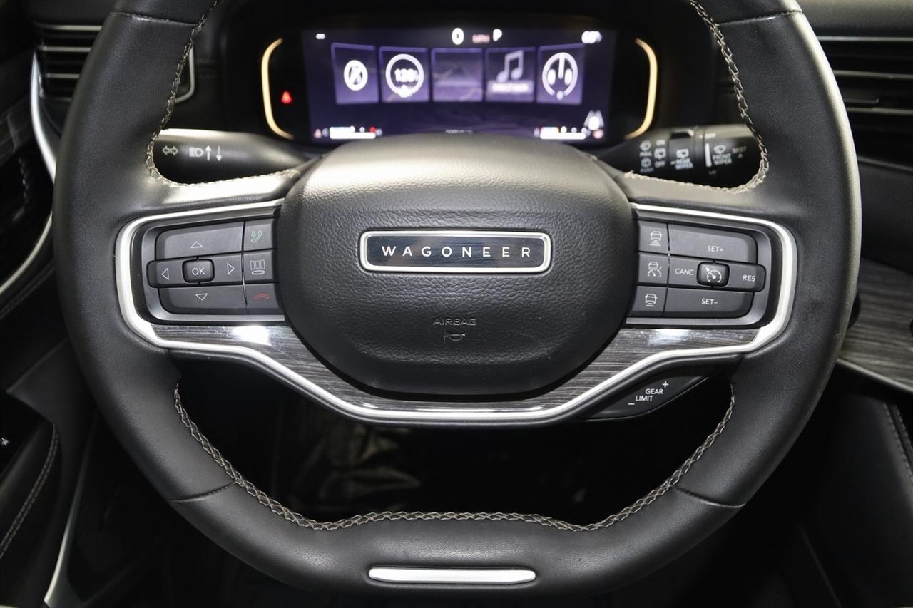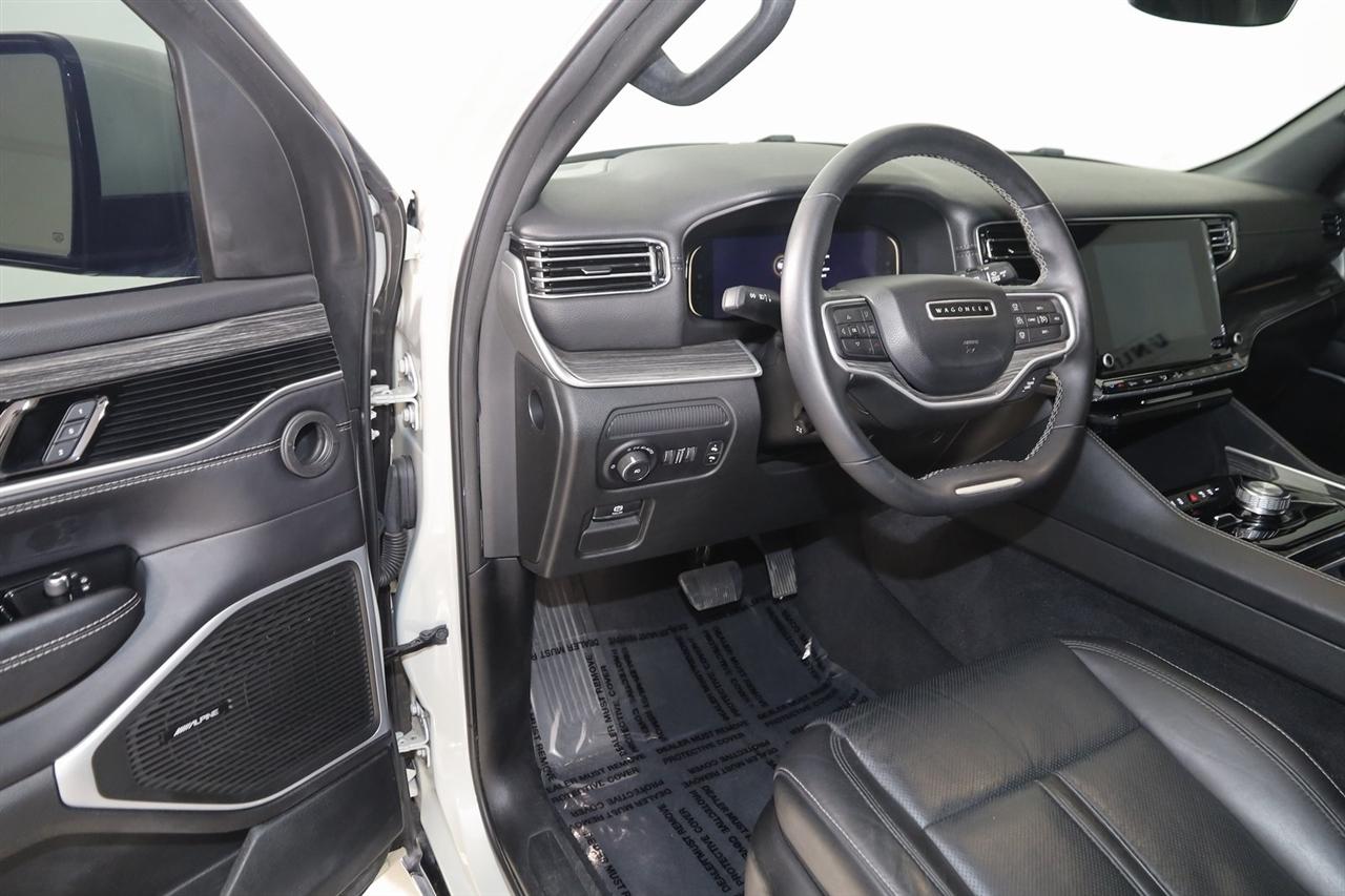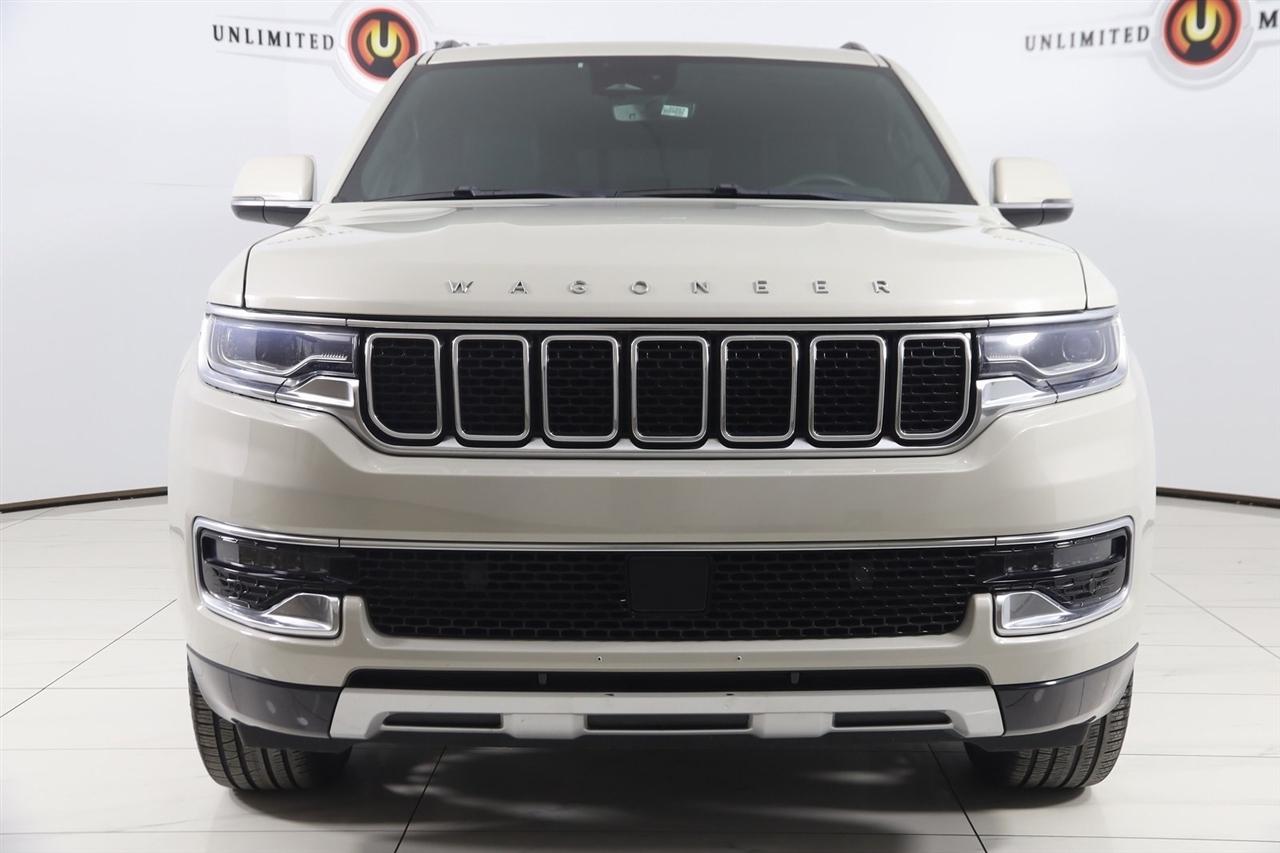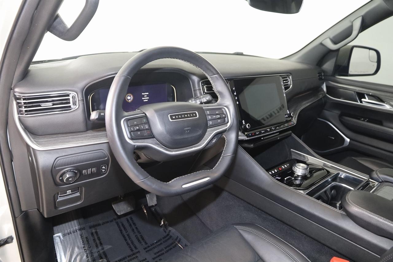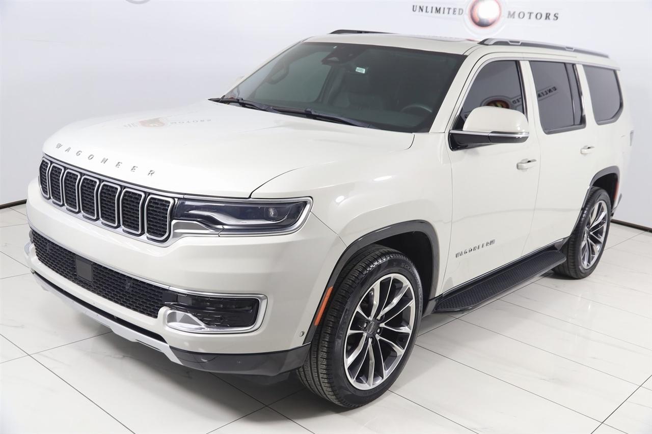 Navigation, Back Up Camera, Bluetooth, Panoramic Roof, Touch Screen, Heated Front Seats, Heated Steering Wheel, Ventilated Front Seats, Blind Spot, Apple CarPlay/Android Auto, Wagoneer Series II, 4D Sport Utility, 5.7L V8, 8-Speed Automatic, 4WD, Luxury White Pearlcoat, Black Leather, 3 Panel Sunroof, Adjustable Roof Rail Crossbars, Cargo Cover, Navigation System, Premium Group I (DISC), Quick Order Package 22J, Reversible Carpet/Vinyl Cargo Mat.