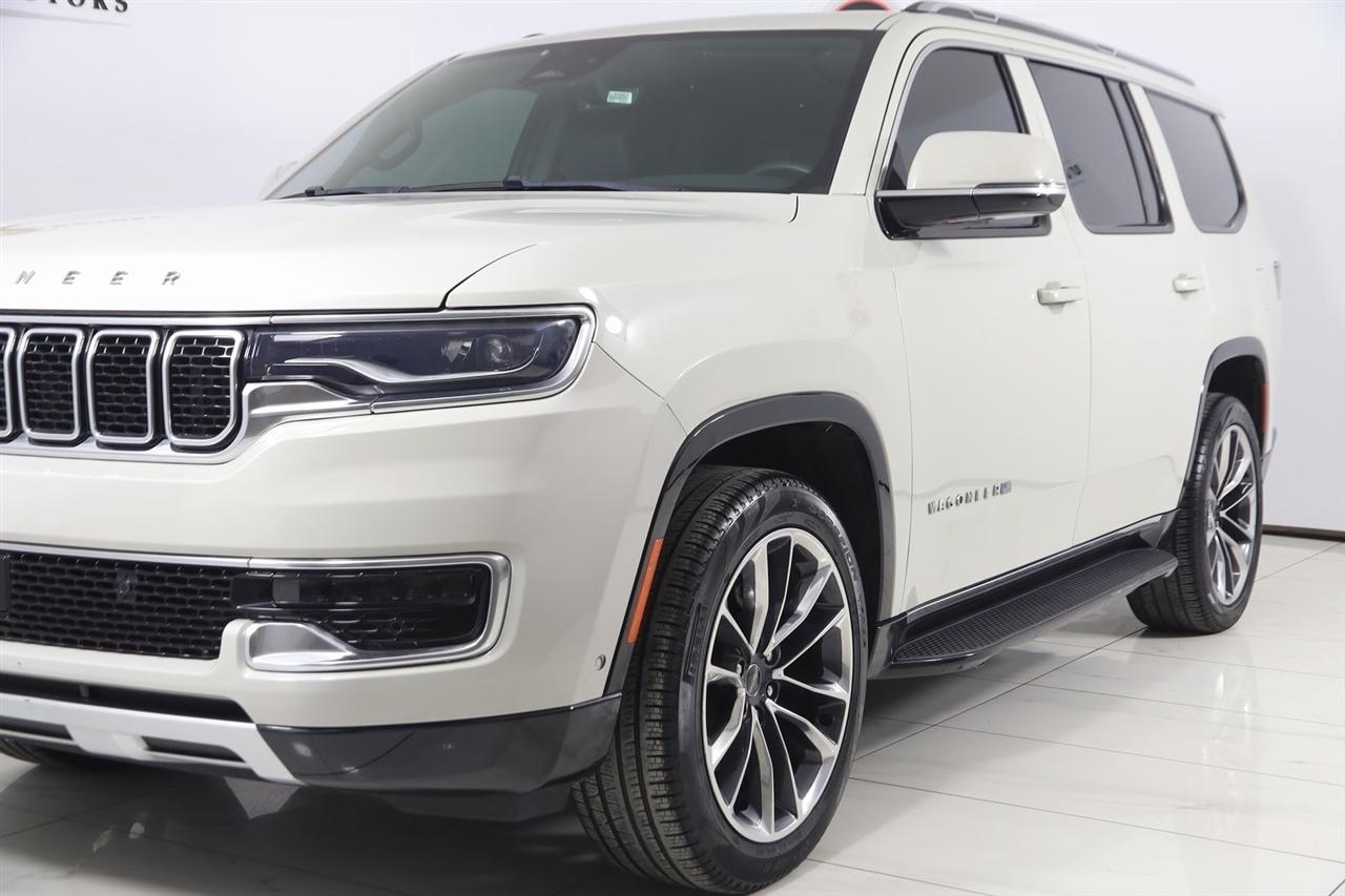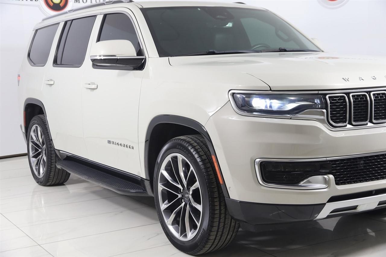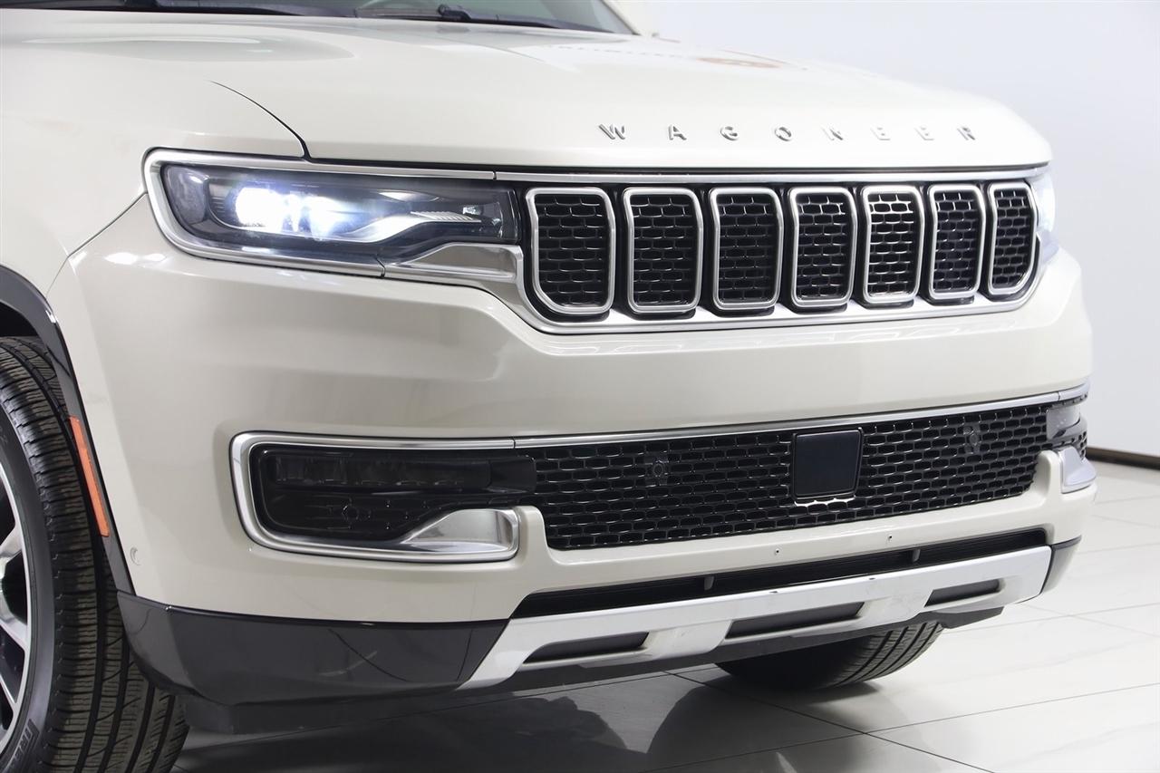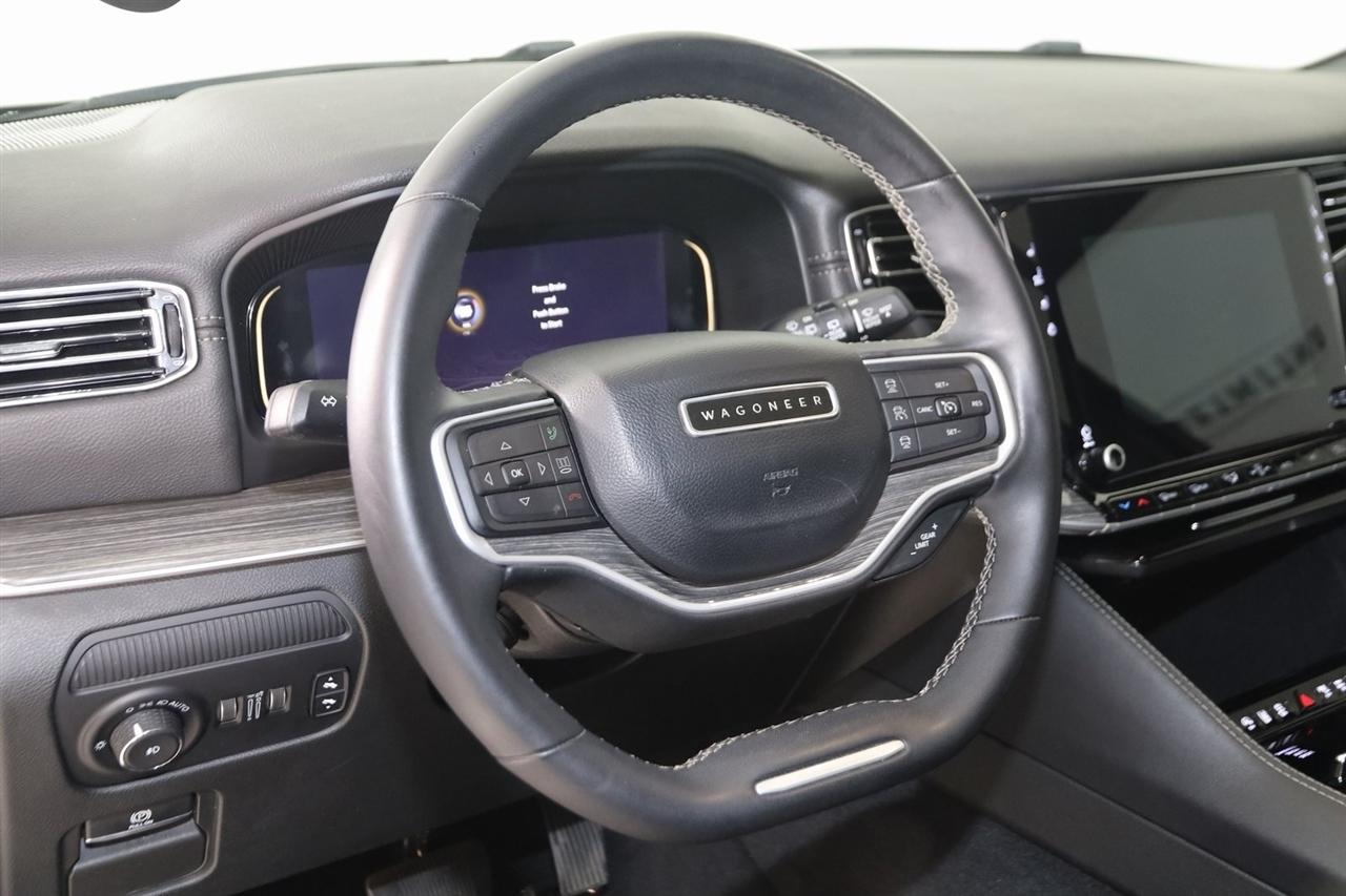 Navigation, Back Up Camera, Bluetooth, Panoramic Roof, Touch Screen, Heated Front Seats, Heated Steering Wheel, Ventilated Front Seats, Blind Spot, Apple CarPlay/Android Auto, Wagoneer Series II, 4D Sport Utility, 5.7L V8, 8-Speed Automatic, 4WD, Luxury White Pearlcoat, Black Leather, 3 Panel Sunroof, Adjustable Roof Rail Crossbars, Cargo Cover, Navigation System, Premium Group I (DISC), Quick Order Package 22J, Reversible Carpet/Vinyl Cargo Mat.