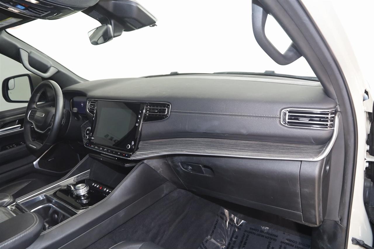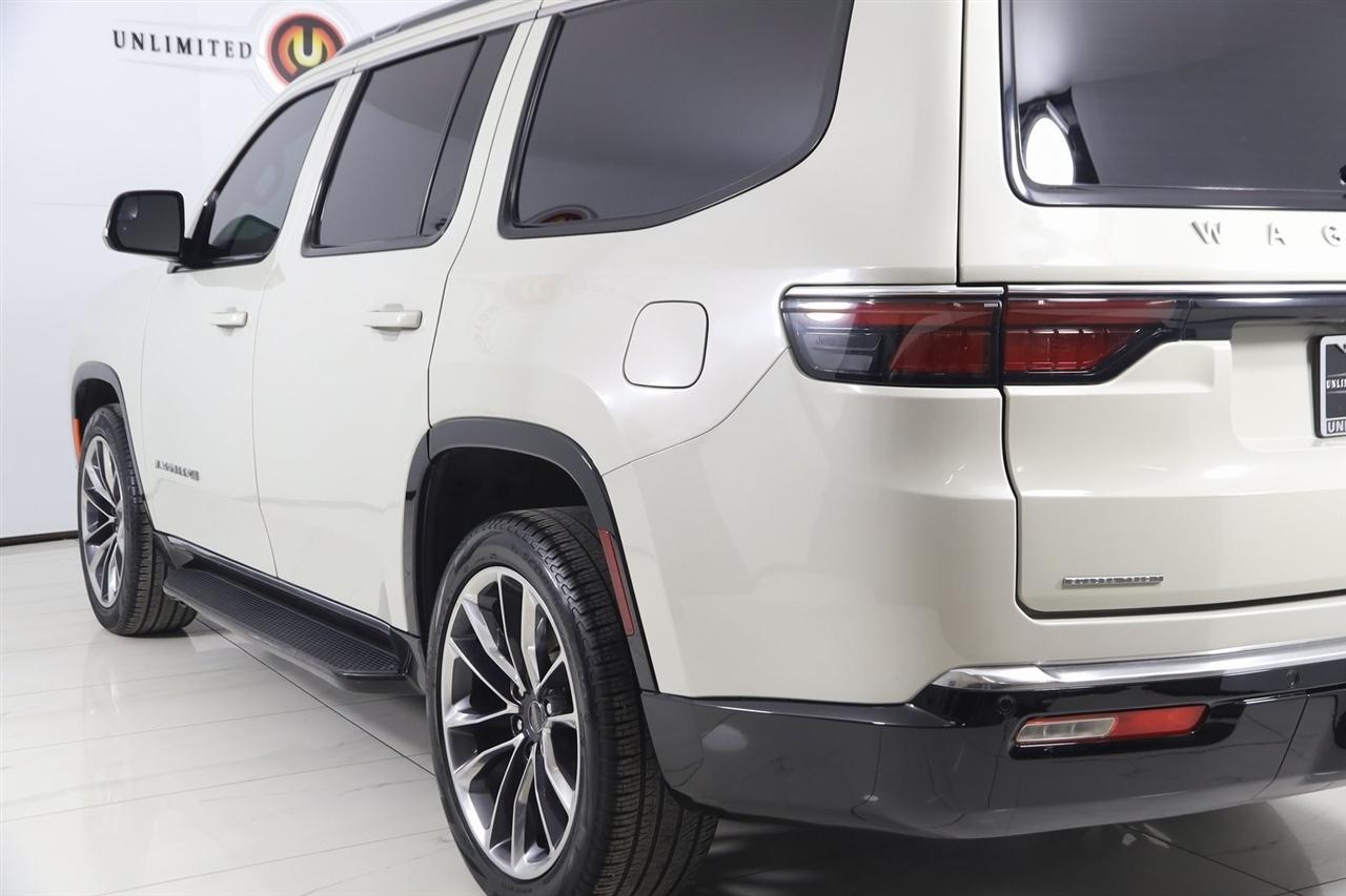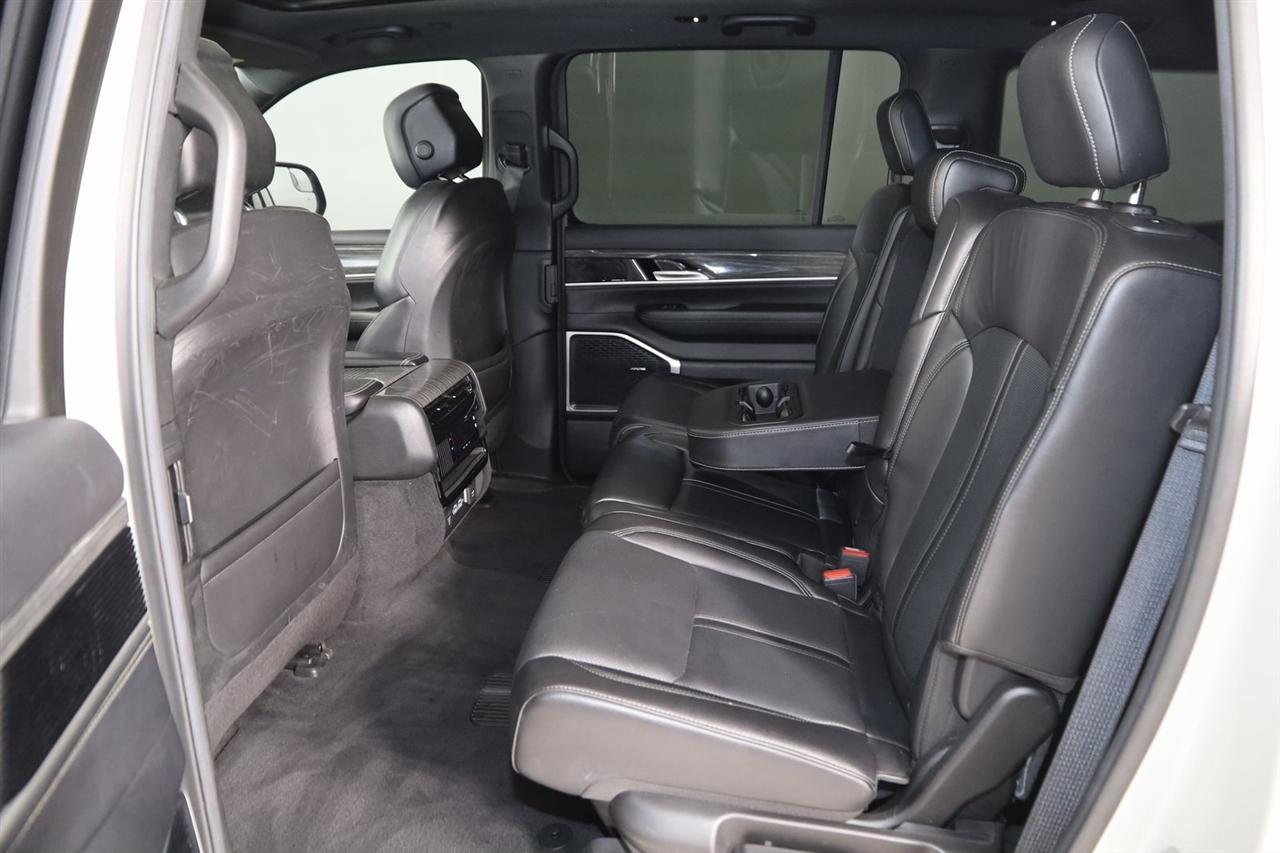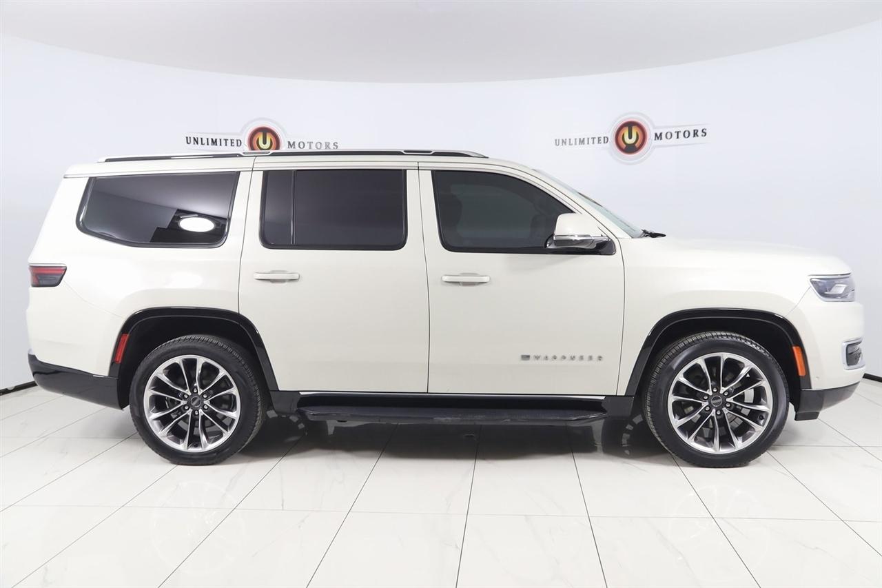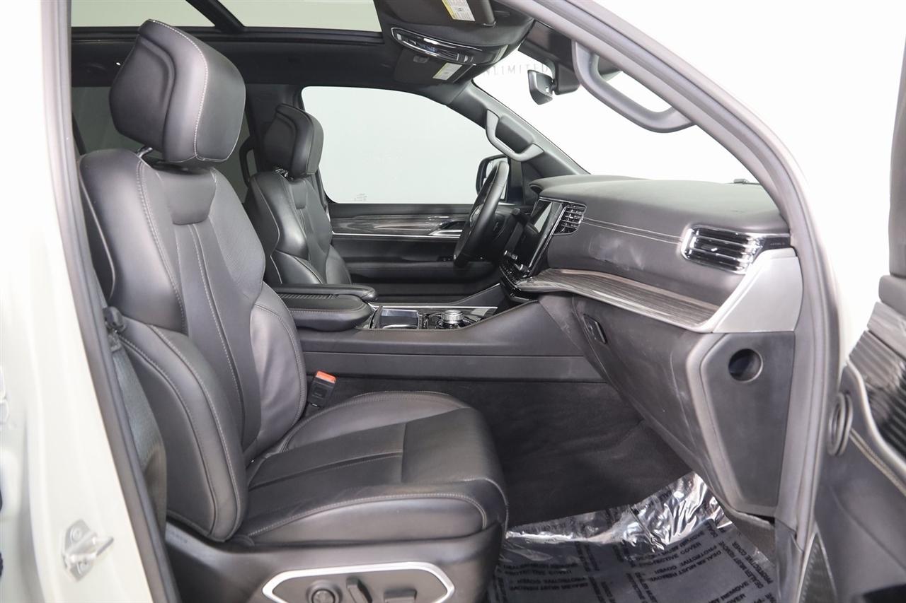 Navigation, Back Up Camera, Bluetooth, Panoramic Roof, Touch Screen, Heated Front Seats, Heated Steering Wheel, Ventilated Front Seats, Blind Spot, Apple CarPlay/Android Auto, Wagoneer Series II, 4D Sport Utility, 5.7L V8, 8-Speed Automatic, 4WD, Luxury White Pearlcoat, Black Leather, 3 Panel Sunroof, Adjustable Roof Rail Crossbars, Cargo Cover, Navigation System, Premium Group I (DISC), Quick Order Package 22J, Reversible Carpet/Vinyl Cargo Mat.
