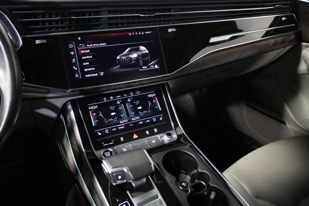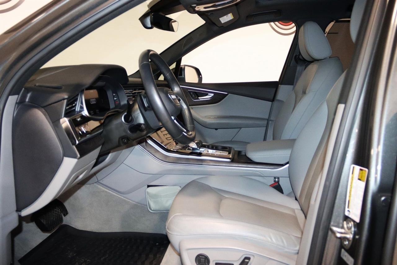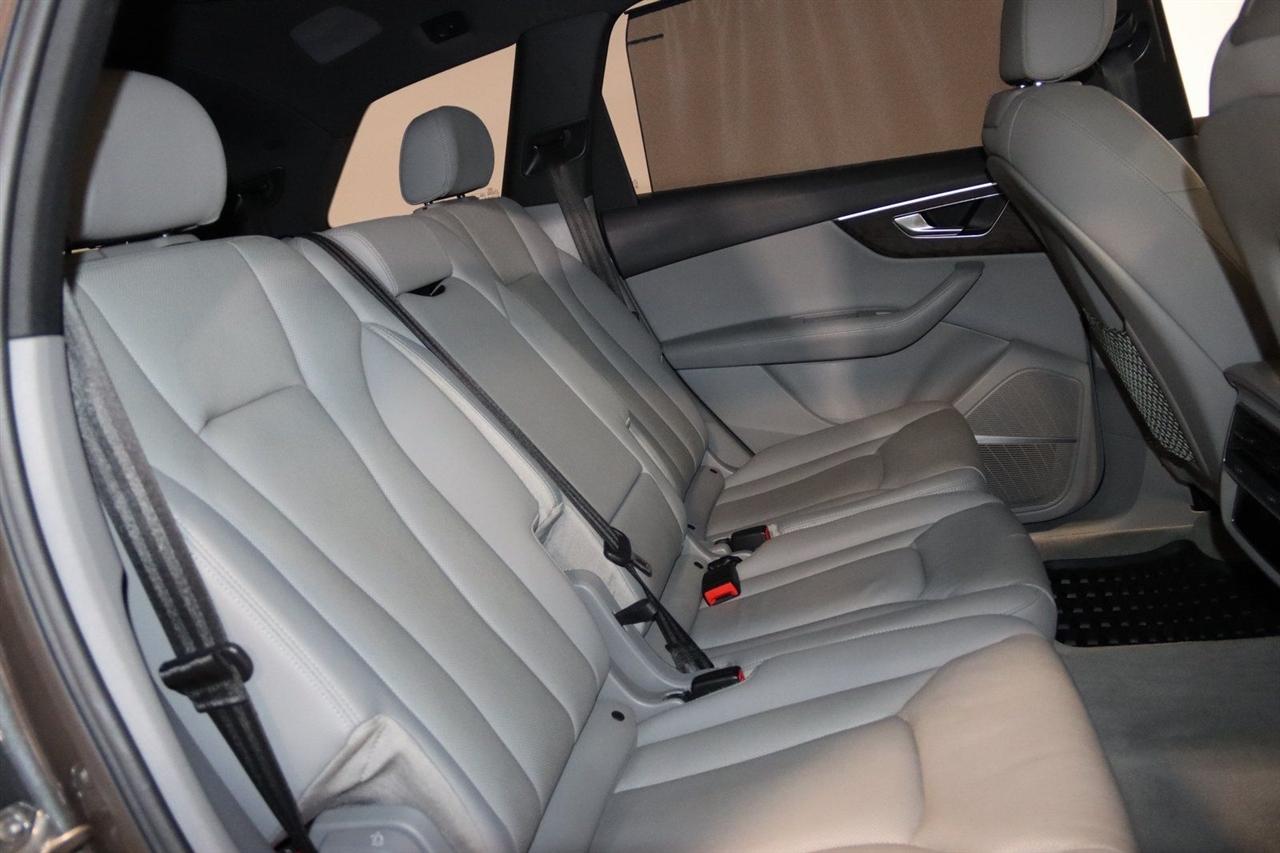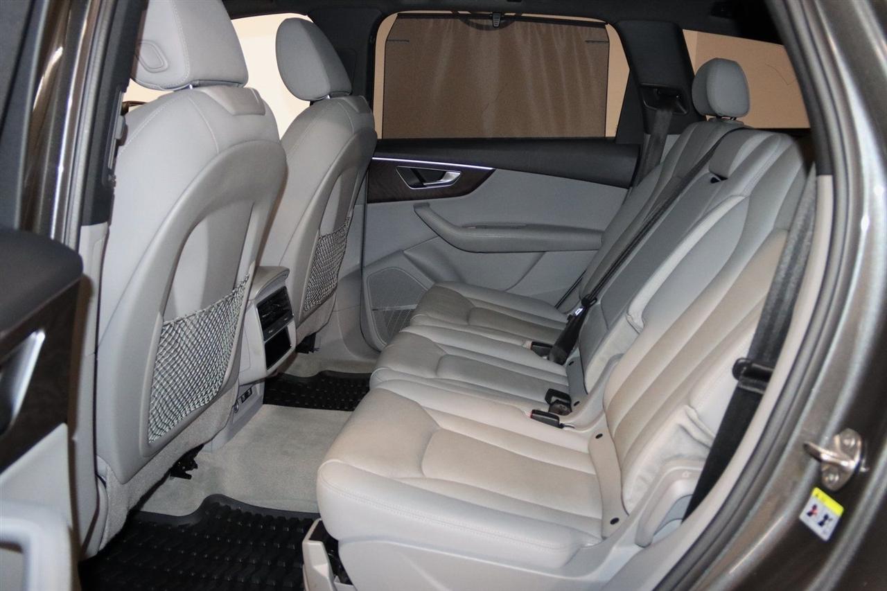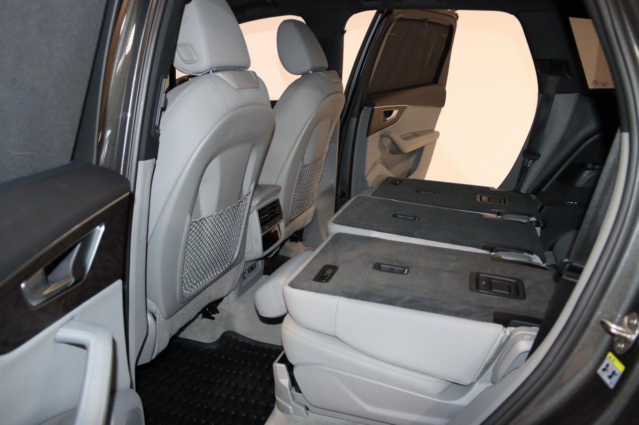 Navigation, Bluetooth, Back Up Camera, Panoramic Roof, 3rd Row, Heated Seats, Touch Screen, 10 Speakers, 3.204 Axle Ratio, 3rd row seats: bench, 4-Wheel Disc Brakes, ABS brakes, Air Conditioning, Alloy wheels, AM/FM radio: SiriusXM, Audi smartphone interface (Apple CarPlay/Android Auto), Auto High-beam Headlights, Auto-dimming Rear-View mirror, Automatic temperature control, Bang & Olufsen 3D Premium Sound System, Black Cloth Headliner, Black Door Blades, Black Front & Rear Bumper Inserts, Black Grille, Black Optic Exterior Package, Black Optic Package, Black Roof Rails, Black Window Surrounds, Brake assist, Bumpers: body-color, Comfort Adaptive Air Suspension, Compass, Contour/Ambient LED Interior Lighting Package, Convenience Package, Delay-off headlights, Driver door bin, Driver vanity mirror, Dual front impact airbags, Dual front side impact airbags, Dual-Pane Acoustic Side Windows, Electronic Stability Control, Emergency communication system: Audi connect CARE, PRIME & PLUS, Executive Package, Exterior Parking Camera Rear, Four wheel independent suspension, Front & Rear Doors Audi Beam-Rings, Front anti-roll bar, Front Bucket Seats, Front Center Armrest, Front dual zone A/C, Front fog lights, Front reading lights, Fully automatic headlights, Garage door transmitter: HomeLink, Genuine wood door panel insert, Gray/Brown Fine Grain Ash Natural Wood Inlays, Head-Up Display, Heated door mirrors, Heated Front Bucket Seats, Heated front seats, Illuminated Door Sills, Illuminated entry, Interior Protection Package, Intersection Assist, Leather Seating Surfaces, Leather Shift Knob, Leather steering wheel, Low tire pressure warning, Matrix-Design LED Headlights, Memory seat, Navigation System, Navigation system: Audi MMI Navigation plus with Touch Response, Occupant sensing airbag, Outside temperature display, Overhead airbag, Overhead console, Panic alarm, Passenger door bin, Passenger vanity mirror, Power door mirrors, Power driver seat, Power Liftgate, Power moonroof, Power passenger seat, Power Soft-Closing Doors, Power steering, Power windows, Prestige Package, Privacy Trunk Cover, Radio data system, Radio: Audi Sound System, Rain sensing wipers, Rear air conditioning, Rear anti-roll bar, Rear fog lights, Rear reading lights, Rear seat center armrest, Rear window defroster, Rear window wiper, Reclining 3rd row seat, Remote keyless entry, Roof rack: rails only, Security system, Speed control, Speed-sensing steering, Split folding rear seat, Spoiler, Steering wheel memory, Steering wheel mounted audio controls, Tachometer, Telescoping steering wheel, Tilt steering wheel, Tow Hitch Receiver, Towing Package, Traction control, Traffic Sign Recognition, Trip computer, Turn signal indicator mirrors, Variably intermittent wipers, Wheels: 20" 5-Spoke Turbine-Design, Wheels: 21" 10-Spoke Star-Design Bi-Color Black. Clean CARFAX.