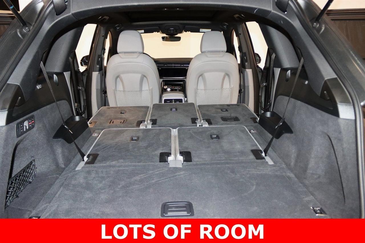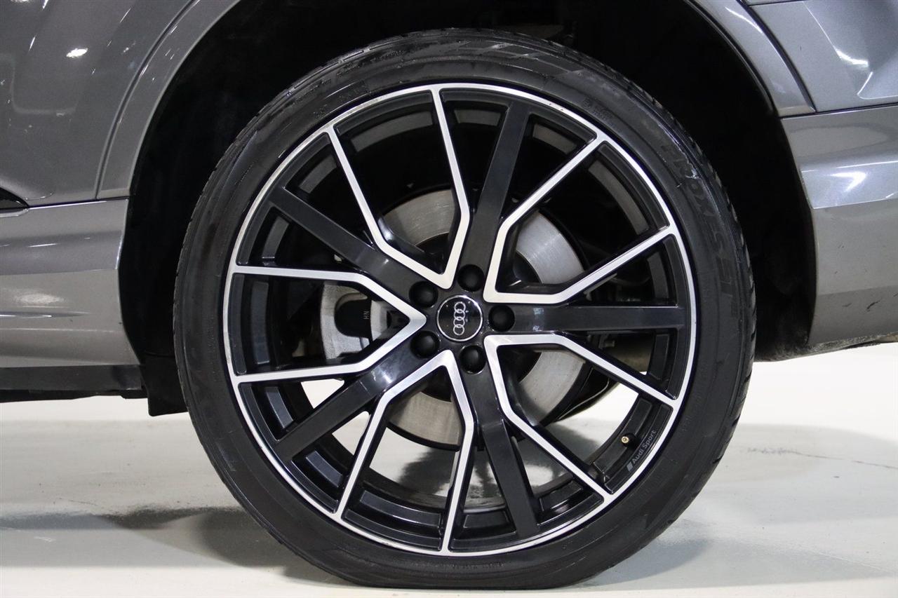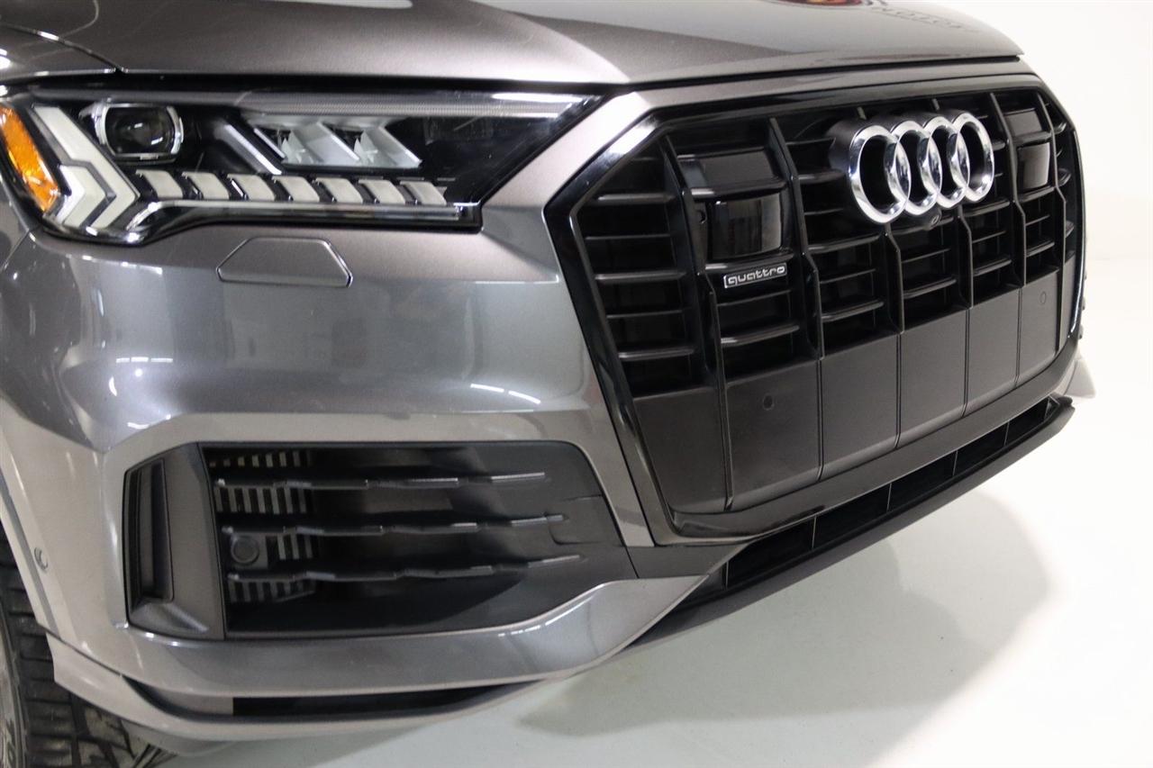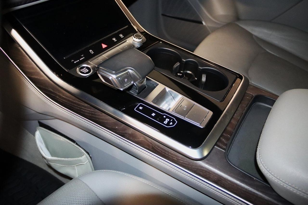 Navigation, Bluetooth, Back Up Camera, Panoramic Roof, 3rd Row, Heated Seats, Touch Screen, 10 Speakers, 3.204 Axle Ratio, 3rd row seats: bench, 4-Wheel Disc Brakes, ABS brakes, Air Conditioning, Alloy wheels, AM/FM radio: SiriusXM, Audi smartphone interface (Apple CarPlay/Android Auto), Auto High-beam Headlights, Auto-dimming Rear-View mirror, Automatic temperature control, Bang & Olufsen 3D Premium Sound System, Black Cloth Headliner, Black Door Blades, Black Front & Rear Bumper Inserts, Black Grille, Black Optic Exterior Package, Black Optic Package, Black Roof Rails, Black Window Surrounds, Brake assist, Bumpers: body-color, Comfort Adaptive Air Suspension, Compass, Contour/Ambient LED Interior Lighting Package, Convenience Package, Delay-off headlights, Driver door bin, Driver vanity mirror, Dual front impact airbags, Dual front side impact airbags, Dual-Pane Acoustic Side Windows, Electronic Stability Control, Emergency communication system: Audi connect CARE, PRIME & PLUS, Executive Package, Exterior Parking Camera Rear, Four wheel independent suspension, Front & Rear Doors Audi Beam-Rings, Front anti-roll bar, Front Bucket Seats, Front Center Armrest, Front dual zone A/C, Front fog lights, Front reading lights, Fully automatic headlights, Garage door transmitter: HomeLink, Genuine wood door panel insert, Gray/Brown Fine Grain Ash Natural Wood Inlays, Head-Up Display, Heated door mirrors, Heated Front Bucket Seats, Heated front seats, Illuminated Door Sills, Illuminated entry, Interior Protection Package, Intersection Assist, Leather Seating Surfaces, Leather Shift Knob, Leather steering wheel, Low tire pressure warning, Matrix-Design LED Headlights, Memory seat, Navigation System, Navigation system: Audi MMI Navigation plus with Touch Response, Occupant sensing airbag, Outside temperature display, Overhead airbag, Overhead console, Panic alarm, Passenger door bin, Passenger vanity mirror, Power door mirrors, Power driver seat, Power Liftgate, Power moonroof, Power passenger seat, Power Soft-Closing Doors, Power steering, Power windows, Prestige Package, Privacy Trunk Cover, Radio data system, Radio: Audi Sound System, Rain sensing wipers, Rear air conditioning, Rear anti-roll bar, Rear fog lights, Rear reading lights, Rear seat center armrest, Rear window defroster, Rear window wiper, Reclining 3rd row seat, Remote keyless entry, Roof rack: rails only, Security system, Speed control, Speed-sensing steering, Split folding rear seat, Spoiler, Steering wheel memory, Steering wheel mounted audio controls, Tachometer, Telescoping steering wheel, Tilt steering wheel, Tow Hitch Receiver, Towing Package, Traction control, Traffic Sign Recognition, Trip computer, Turn signal indicator mirrors, Variably intermittent wipers, Wheels: 20" 5-Spoke Turbine-Design, Wheels: 21" 10-Spoke Star-Design Bi-Color Black. Clean CARFAX.