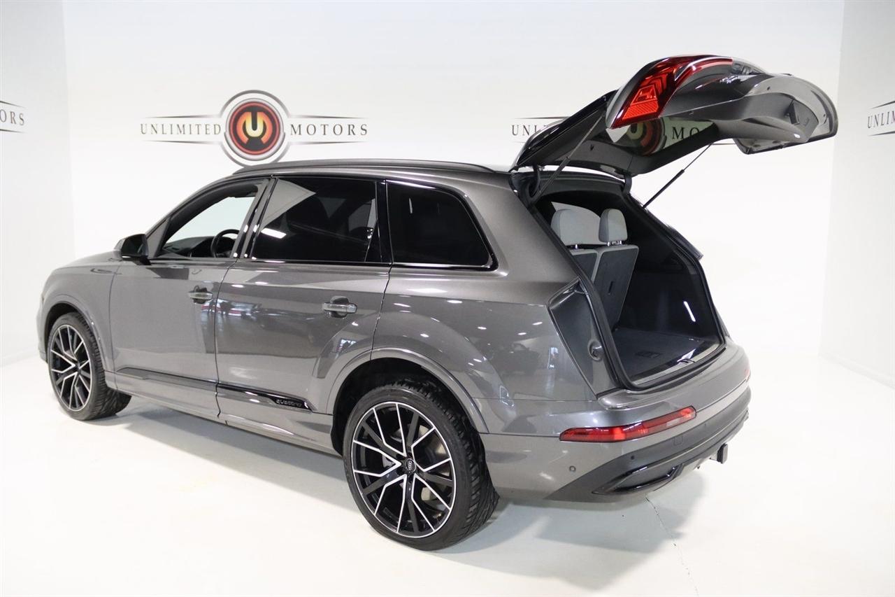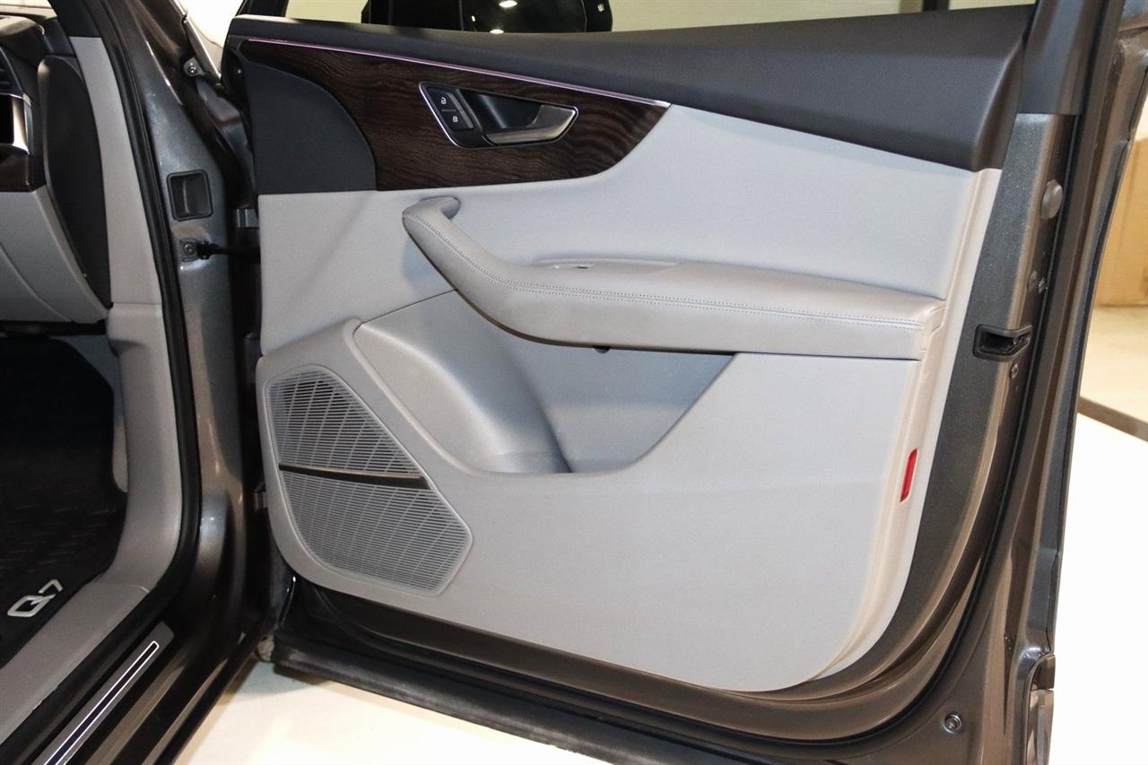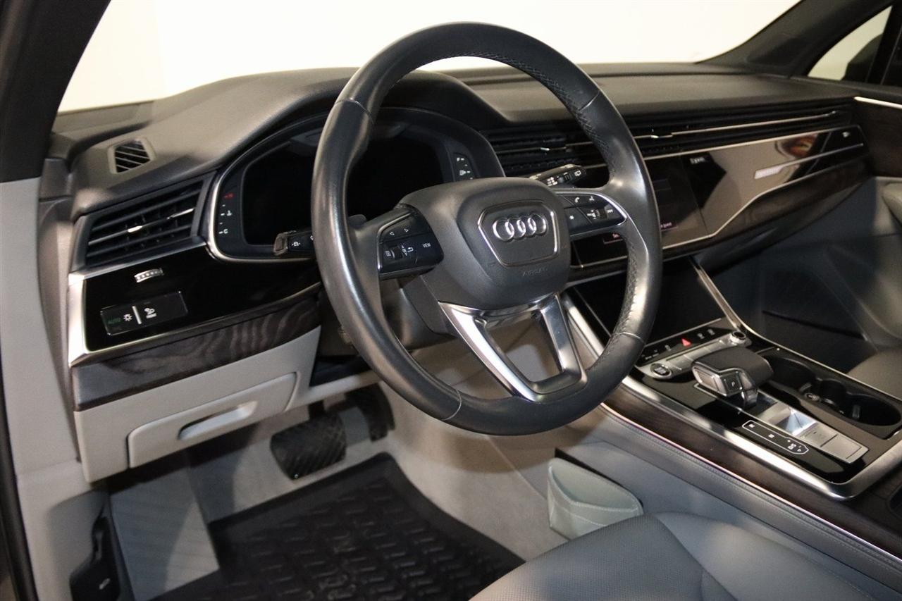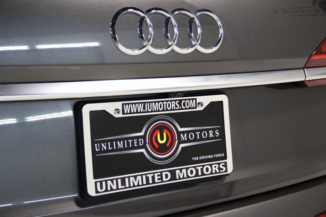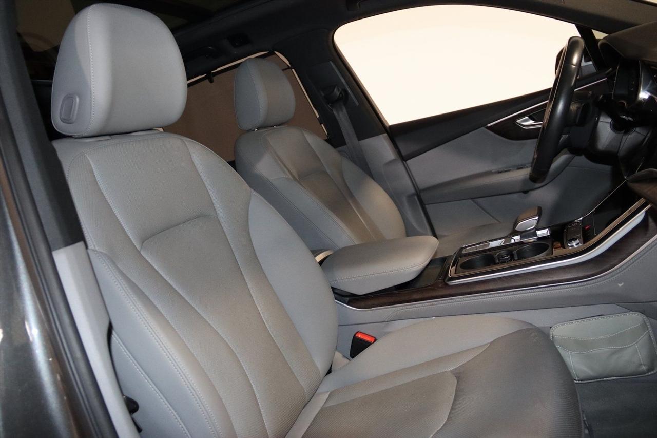 Navigation, Bluetooth, Back Up Camera, Panoramic Roof, 3rd Row, Heated Seats, Touch Screen, 10 Speakers, 3.204 Axle Ratio, 3rd row seats: bench, 4-Wheel Disc Brakes, ABS brakes, Air Conditioning, Alloy wheels, AM/FM radio: SiriusXM, Audi smartphone interface (Apple CarPlay/Android Auto), Auto High-beam Headlights, Auto-dimming Rear-View mirror, Automatic temperature control, Bang & Olufsen 3D Premium Sound System, Black Cloth Headliner, Black Door Blades, Black Front & Rear Bumper Inserts, Black Grille, Black Optic Exterior Package, Black Optic Package, Black Roof Rails, Black Window Surrounds, Brake assist, Bumpers: body-color, Comfort Adaptive Air Suspension, Compass, Contour/Ambient LED Interior Lighting Package, Convenience Package, Delay-off headlights, Driver door bin, Driver vanity mirror, Dual front impact airbags, Dual front side impact airbags, Dual-Pane Acoustic Side Windows, Electronic Stability Control, Emergency communication system: Audi connect CARE, PRIME & PLUS, Executive Package, Exterior Parking Camera Rear, Four wheel independent suspension, Front & Rear Doors Audi Beam-Rings, Front anti-roll bar, Front Bucket Seats, Front Center Armrest, Front dual zone A/C, Front fog lights, Front reading lights, Fully automatic headlights, Garage door transmitter: HomeLink, Genuine wood door panel insert, Gray/Brown Fine Grain Ash Natural Wood Inlays, Head-Up Display, Heated door mirrors, Heated Front Bucket Seats, Heated front seats, Illuminated Door Sills, Illuminated entry, Interior Protection Package, Intersection Assist, Leather Seating Surfaces, Leather Shift Knob, Leather steering wheel, Low tire pressure warning, Matrix-Design LED Headlights, Memory seat, Navigation System, Navigation system: Audi MMI Navigation plus with Touch Response, Occupant sensing airbag, Outside temperature display, Overhead airbag, Overhead console, Panic alarm, Passenger door bin, Passenger vanity mirror, Power door mirrors, Power driver seat, Power Liftgate, Power moonroof, Power passenger seat, Power Soft-Closing Doors, Power steering, Power windows, Prestige Package, Privacy Trunk Cover, Radio data system, Radio: Audi Sound System, Rain sensing wipers, Rear air conditioning, Rear anti-roll bar, Rear fog lights, Rear reading lights, Rear seat center armrest, Rear window defroster, Rear window wiper, Reclining 3rd row seat, Remote keyless entry, Roof rack: rails only, Security system, Speed control, Speed-sensing steering, Split folding rear seat, Spoiler, Steering wheel memory, Steering wheel mounted audio controls, Tachometer, Telescoping steering wheel, Tilt steering wheel, Tow Hitch Receiver, Towing Package, Traction control, Traffic Sign Recognition, Trip computer, Turn signal indicator mirrors, Variably intermittent wipers, Wheels: 20" 5-Spoke Turbine-Design, Wheels: 21" 10-Spoke Star-Design Bi-Color Black. Clean CARFAX.