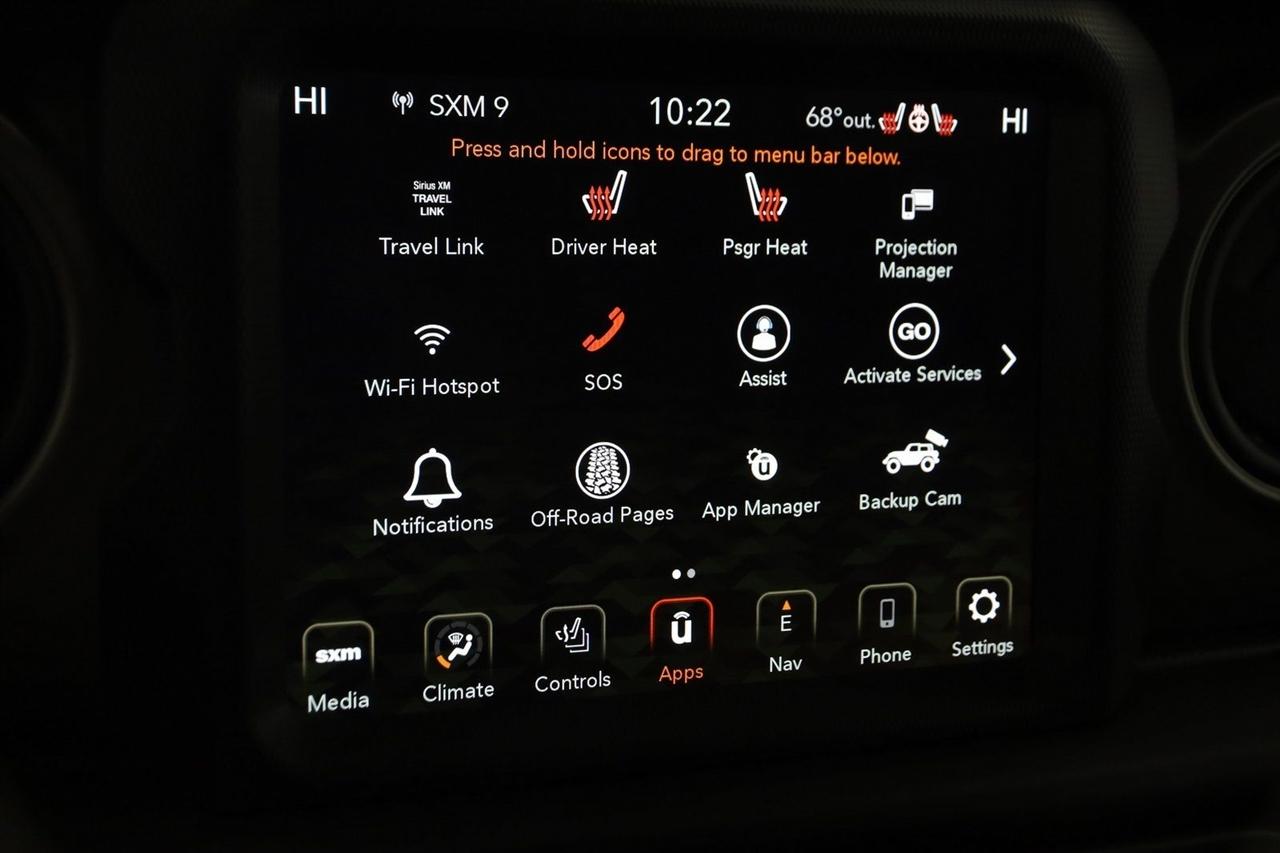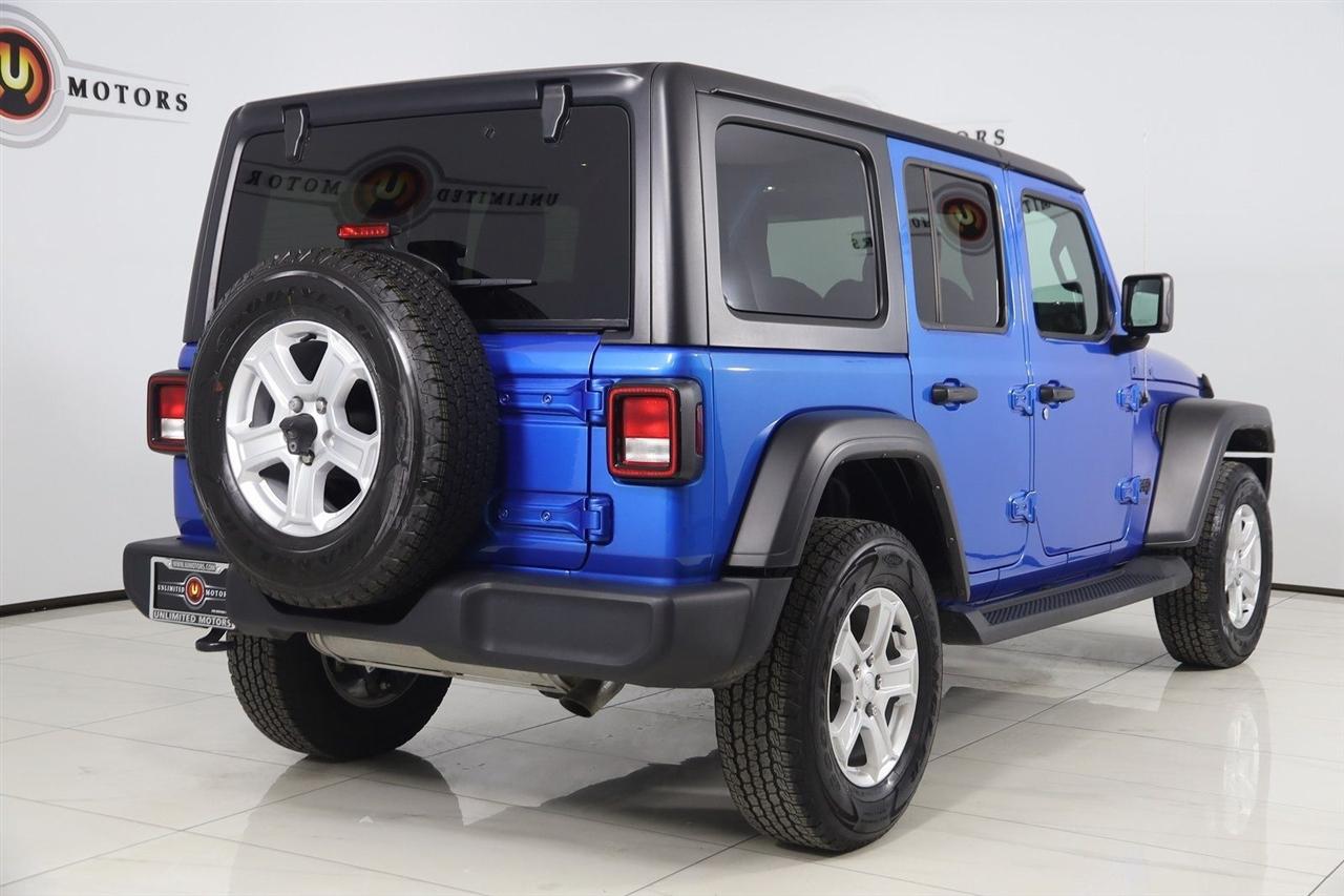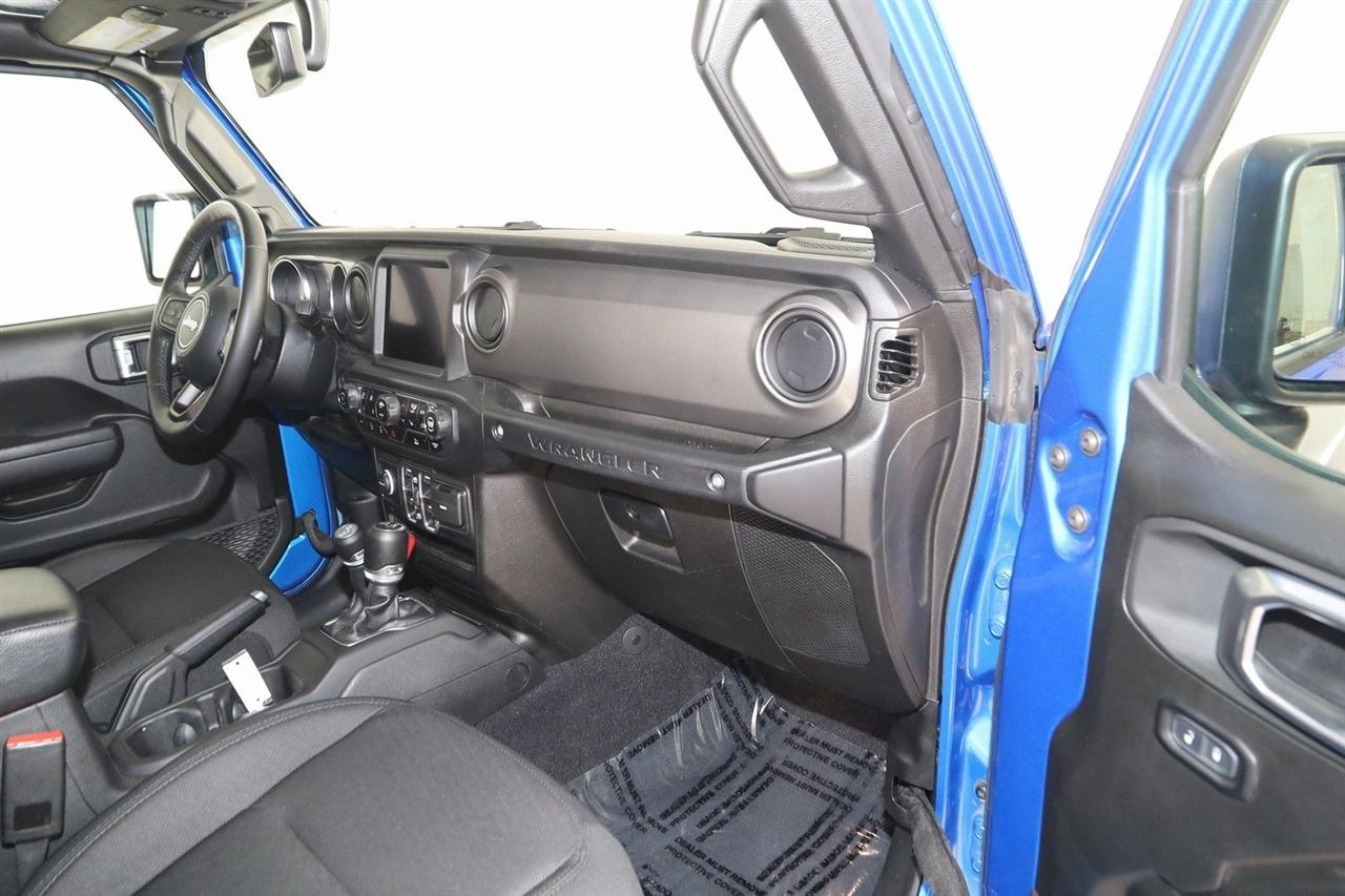 Navigation, Back Up Camera, Bluetooth, Sun/Moon Roof, Running Boards, Winch, Touch Screen, Heated Front Seats, Heated Steering Wheel, Blind Spot, Wrangler Unlimited Sport S, 4D Sport Utility, 3.6L V6 24V VVT, 8-Speed Automatic, 4WD, Hydro Blue Pearl Coat, Black Cloth, 1-Year SiriusXM Guardian Trial, 2-Door Passive Entry, Front Door Locks, 4G LTE Wi-Fi Hot Spot, 5-Year SiriusXM Traffic Service, 5-Year SiriusXM Travel Link Service, 8.4" Radio & Premium Audio Group, 8.4" Touchscreen Display, Air Conditioning w/Auto Temperature Control, Air Filtering, Alpine Premium Audio System, Auto-Dimming Rear-View Mirror, Automatic Headlamps, Cluster 7.0" TFT Color Display, Cold Weather Group, Convenience Group, Deep Tint Sunscreen Windows, Emergency/Assistance Call, Front 1-Touch Down Power Windows, GPS Navigation, HD Radio, Heated Front Seats, Heated Steering Wheel, Leather Wrapped Steering Wheel, Navigation System, Off-Road Info Pages, Power Heated Mirrors, Quick Order Package 24S Sport S, Radio: Uconnect 4C Nav w/8.4" Display, Remote Keyless Entry, Security Alarm, SiriusXM Satellite Radio, SiriusXM Traffic Plus, SiriusXM Travel Link, Speed Sensitive Power Locks, Sport S, Sun Visors w/Illuminated Vanity Mirrors, Technology Group, Universal Garage Door Opener, Wheels: 17" x 7.5" Tech Silver Aluminum.