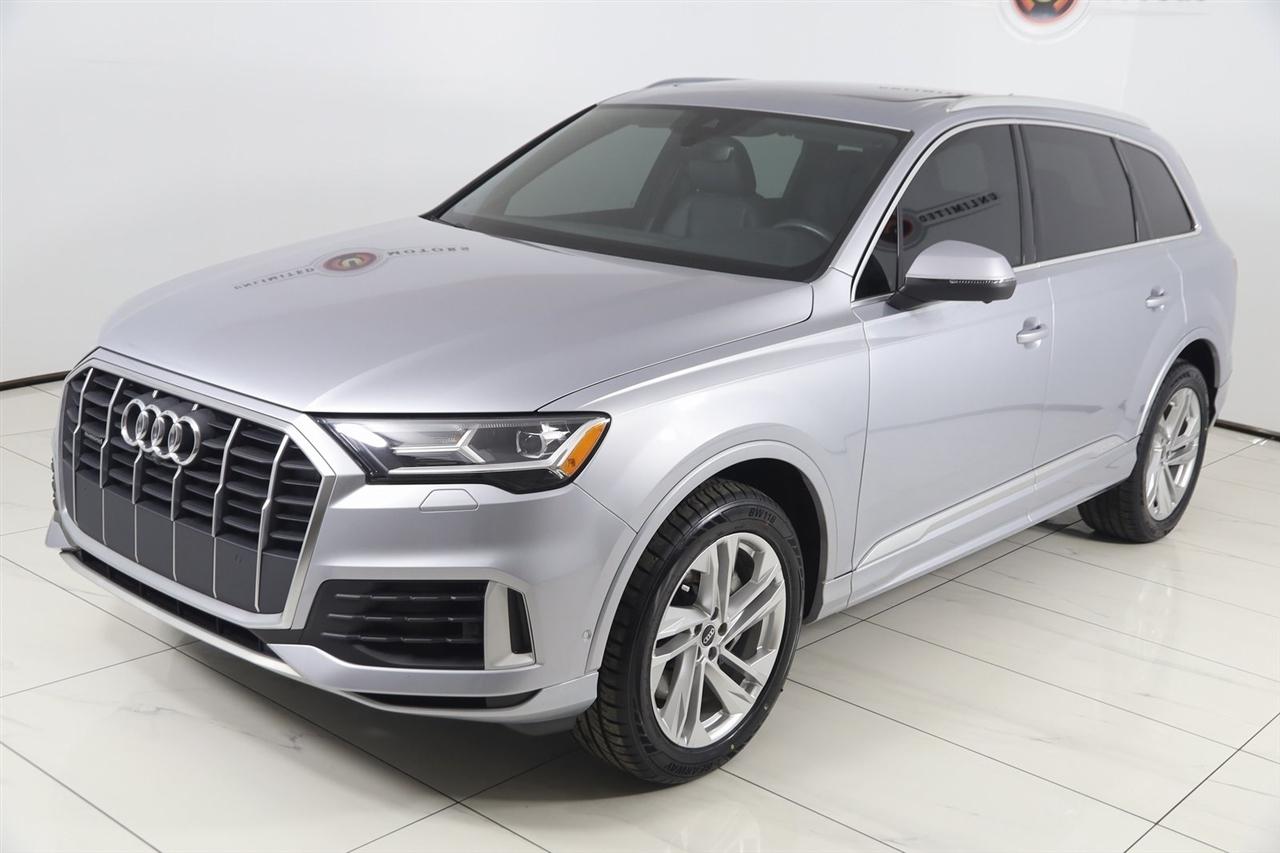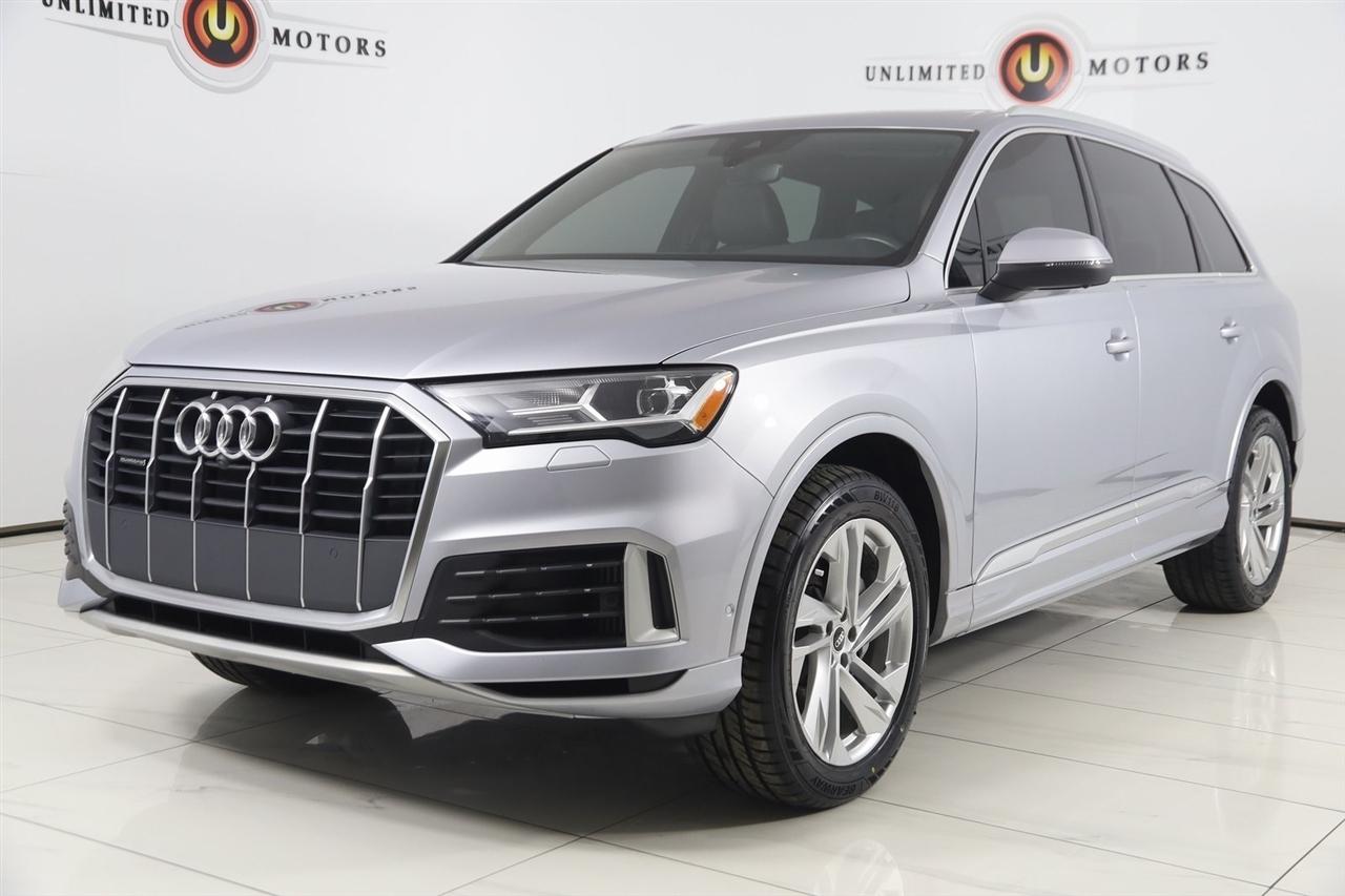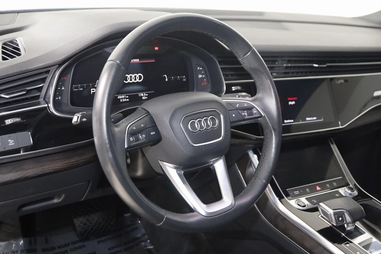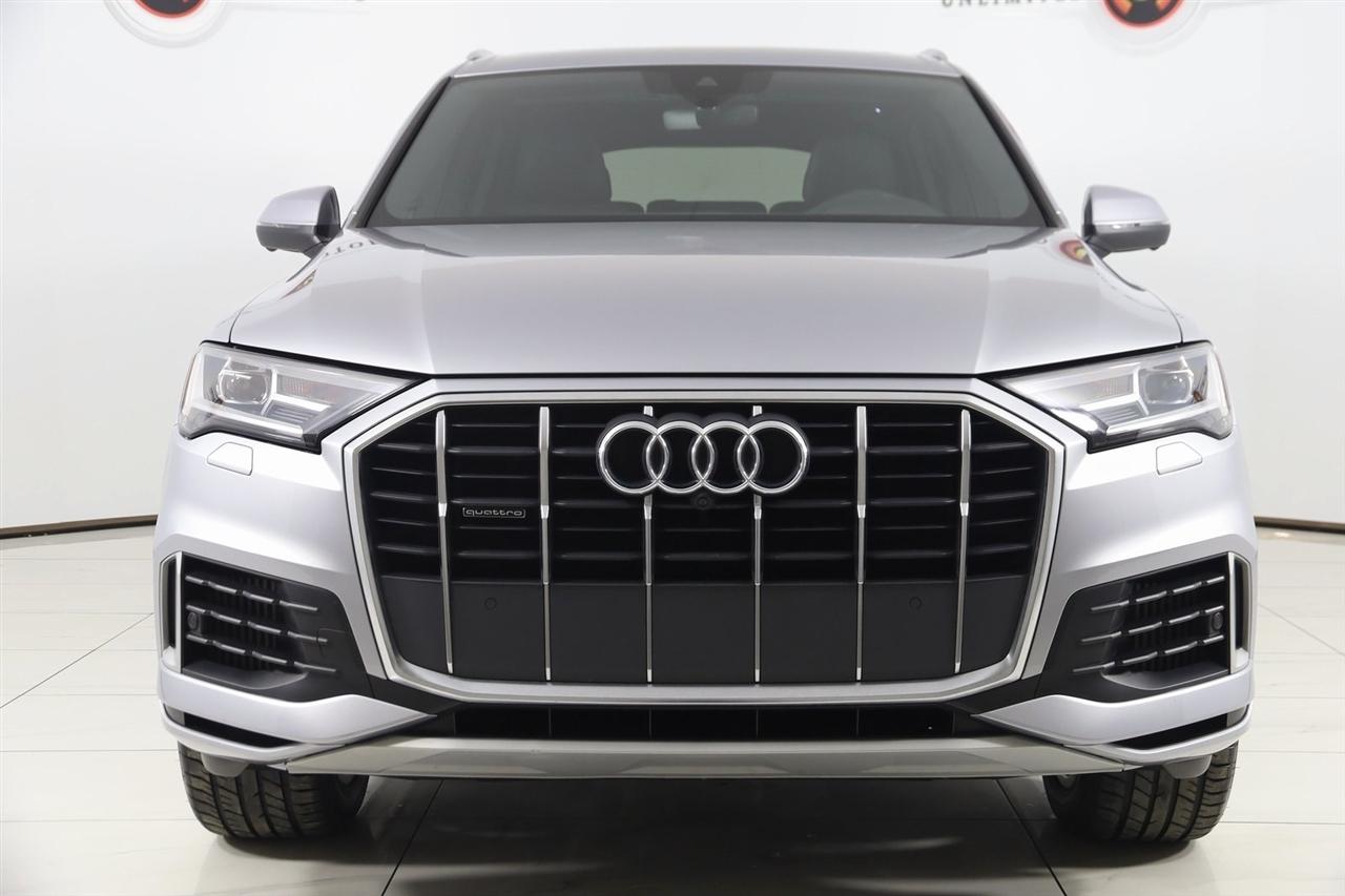 Navigation, Back Up Camera, Bluetooth, Panoramic Roof, Touch Screen, Heated Front Seats, Blind Spot, Apple CarPlay/Android Auto, Q7 55 Premium Plus quattro, 4D Sport Utility, 3.0L TFSI V6 DOHC, 8-Speed Automatic with Tiptronic, quattro, Silver Metallic, Black Leather, 3-Spoke Multifunction Steering Wheel w/Paddles, Ambient Interior Lighting Package, Audi Phone Box w/Wireless Charging, Bang & Olufsen 3D Premium Sound System, Convenience Package, Heated Auto-Dimming Power Folding Exterior Mirrors, Illuminated Door Sills, Navigation System, Navigation system: Audi MMI Navigation plus with Touch Response, Premium Plus Package, Topview Camera System, Wheels: 20" 5-Spoke Turbine-Design.