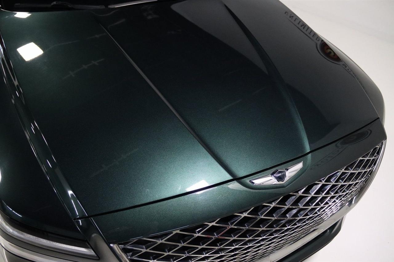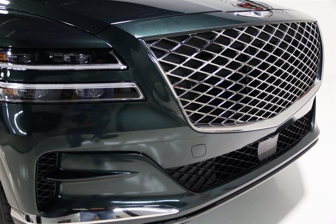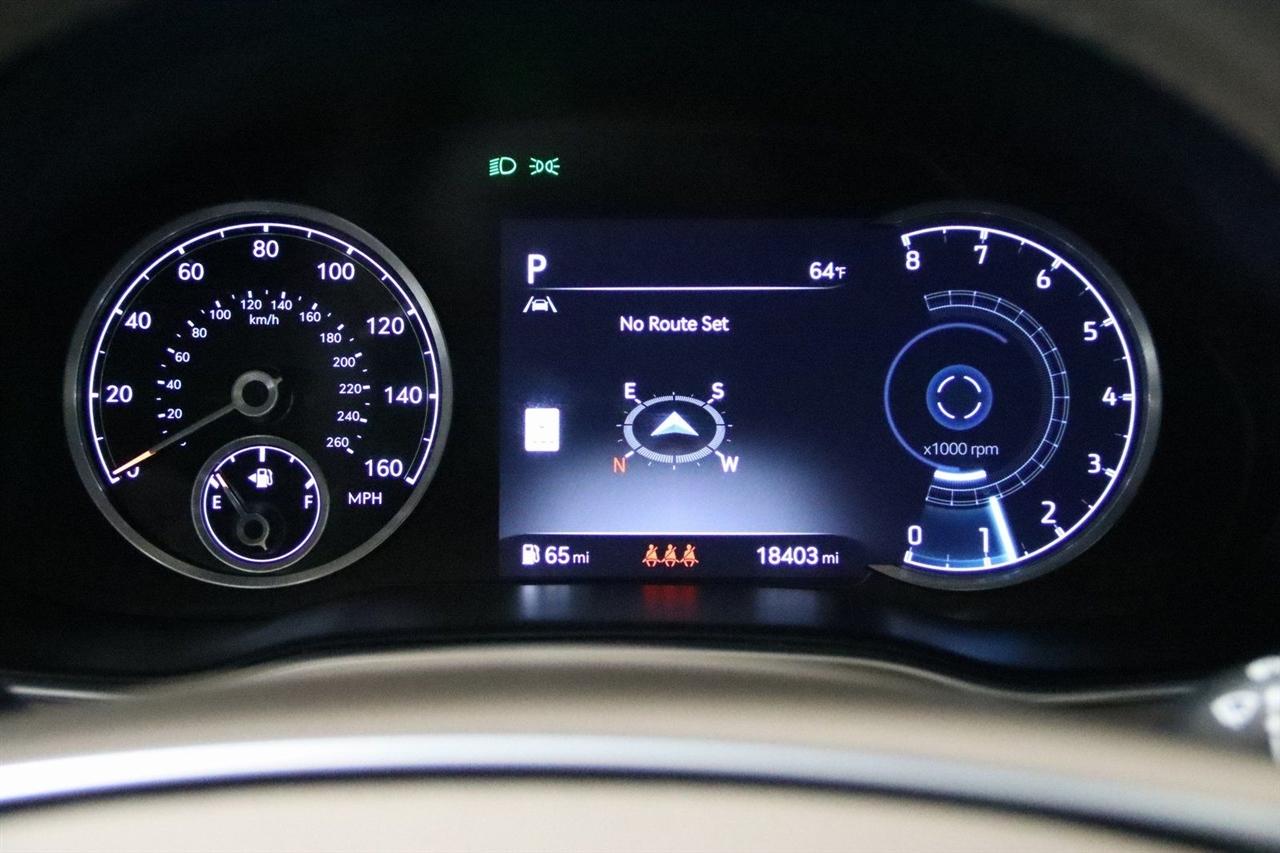 Navigation, Bluetooth, Back Up Camera, Panoramic Roof, Heated Seats, Touch Screen, 12 Speakers, 3.909 Axle Ratio, 4-Wheel Disc Brakes, ABS brakes, Adaptive suspension, Air Conditioning, Alloy wheels, AM/FM radio: SiriusXM, Android Auto & Apple CarPlay, Anti-whiplash front head restraints, Auto High-beam Headlights, Auto tilt-away steering wheel, Auto-dimming door mirrors, Auto-dimming Rear-View mirror, Automatic temperature control, Brake assist, Bumpers: body-color, Compass, Delay-off headlights, Driver door bin, Driver vanity mirror, Dual front impact airbags, Dual front side impact airbags, Electronic Stability Control, Emergency communication system: Genesis Connected Services, Exterior Parking Camera Rear, Four wheel independent suspension, Front anti-roll bar, Front Bucket Seats, Front Center Armrest, Front dual zone A/C, Front reading lights, Fully automatic headlights, Garage door transmitter: HomeLink, Genuine wood console insert, Genuine wood dashboard insert, Genuine wood door panel insert, Heated & Ventilated Front Bucket Seats, Heated door mirrors, Heated front seats, Heated steering wheel, Illuminated entry, Knee airbag, Leather steering wheel, Leatherette Seating Surfaces, Low tire pressure warning, Memory seat, Navigation System, Occupant sensing airbag, Outside temperature display, Overhead airbag, Overhead console, Panic alarm, Passenger door bin, Passenger vanity mirror, Power door mirrors, Power driver seat, Power Liftgate, Power moonroof, Power passenger seat, Power steering, Power windows, Radio data system, Radio:14.5" Navigation System w/AM/FM/HD Radio, Rain sensing wipers, Rear air conditioning, Rear anti-roll bar, Rear reading lights, Rear seat center armrest, Rear side impact airbag, Rear window defroster, Rear window wiper, Remote keyless entry, Security system, Speed control, Speed-sensing steering, Speed-Sensitive Wipers, Split folding rear seat, Spoiler, Steering wheel memory, Steering wheel mounted audio controls, Tachometer, Telescoping steering wheel, Tilt steering wheel, Traction control, Trip computer, Turn signal indicator mirrors, Variably intermittent wipers, Ventilated front seats, Wheels: 20" x 8.5J Medium Metallic Gray Alloy. CARFAX One-Owner. Clean CARFAX. Odometer is 12388 miles below market average! Priced below KBB Fair Purchase Price!