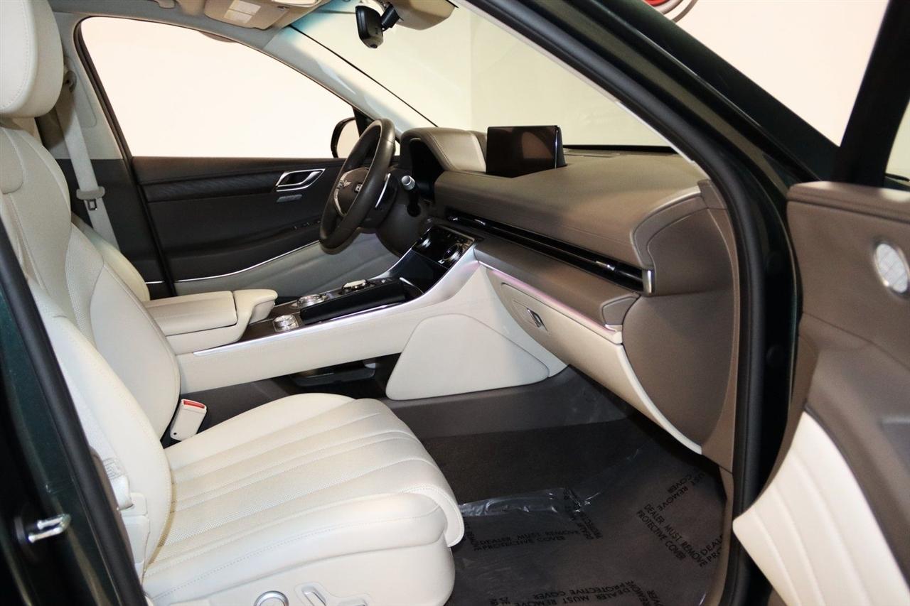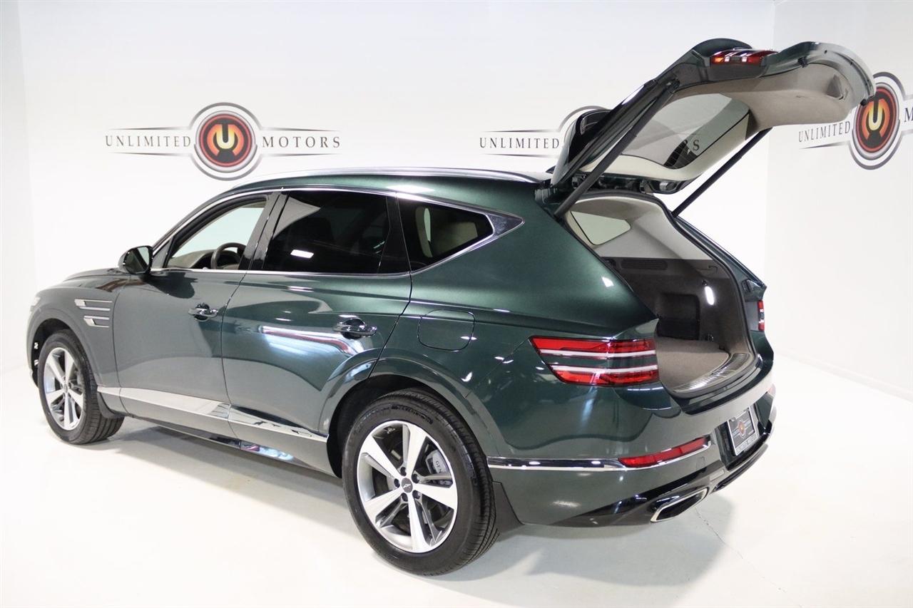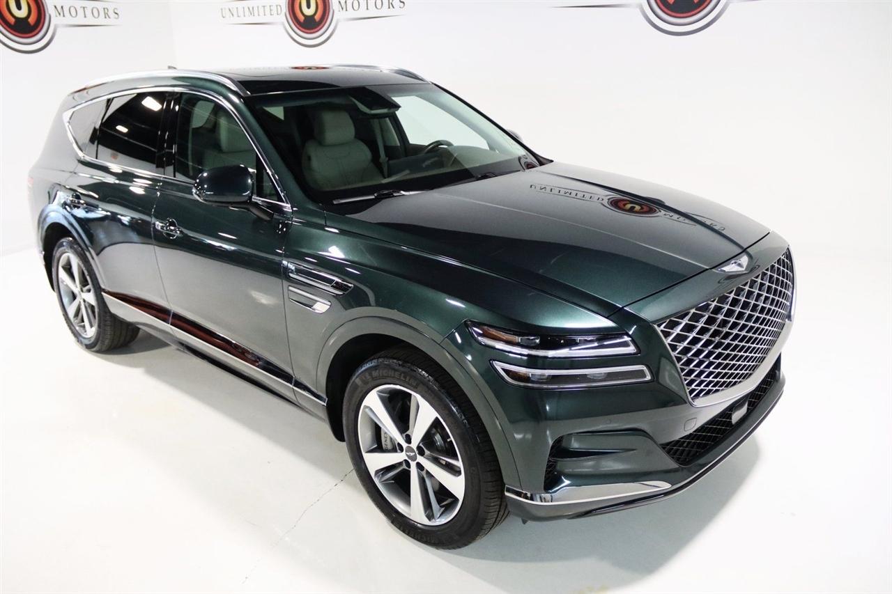 Navigation, Bluetooth, Back Up Camera, Panoramic Roof, Heated Seats, Touch Screen, 12 Speakers, 3.909 Axle Ratio, 4-Wheel Disc Brakes, ABS brakes, Adaptive suspension, Air Conditioning, Alloy wheels, AM/FM radio: SiriusXM, Android Auto & Apple CarPlay, Anti-whiplash front head restraints, Auto High-beam Headlights, Auto tilt-away steering wheel, Auto-dimming door mirrors, Auto-dimming Rear-View mirror, Automatic temperature control, Brake assist, Bumpers: body-color, Compass, Delay-off headlights, Driver door bin, Driver vanity mirror, Dual front impact airbags, Dual front side impact airbags, Electronic Stability Control, Emergency communication system: Genesis Connected Services, Exterior Parking Camera Rear, Four wheel independent suspension, Front anti-roll bar, Front Bucket Seats, Front Center Armrest, Front dual zone A/C, Front reading lights, Fully automatic headlights, Garage door transmitter: HomeLink, Genuine wood console insert, Genuine wood dashboard insert, Genuine wood door panel insert, Heated & Ventilated Front Bucket Seats, Heated door mirrors, Heated front seats, Heated steering wheel, Illuminated entry, Knee airbag, Leather steering wheel, Leatherette Seating Surfaces, Low tire pressure warning, Memory seat, Navigation System, Occupant sensing airbag, Outside temperature display, Overhead airbag, Overhead console, Panic alarm, Passenger door bin, Passenger vanity mirror, Power door mirrors, Power driver seat, Power Liftgate, Power moonroof, Power passenger seat, Power steering, Power windows, Radio data system, Radio:14.5" Navigation System w/AM/FM/HD Radio, Rain sensing wipers, Rear air conditioning, Rear anti-roll bar, Rear reading lights, Rear seat center armrest, Rear side impact airbag, Rear window defroster, Rear window wiper, Remote keyless entry, Security system, Speed control, Speed-sensing steering, Speed-Sensitive Wipers, Split folding rear seat, Spoiler, Steering wheel memory, Steering wheel mounted audio controls, Tachometer, Telescoping steering wheel, Tilt steering wheel, Traction control, Trip computer, Turn signal indicator mirrors, Variably intermittent wipers, Ventilated front seats, Wheels: 20" x 8.5J Medium Metallic Gray Alloy. CARFAX One-Owner. Clean CARFAX. Odometer is 12388 miles below market average! Priced below KBB Fair Purchase Price!