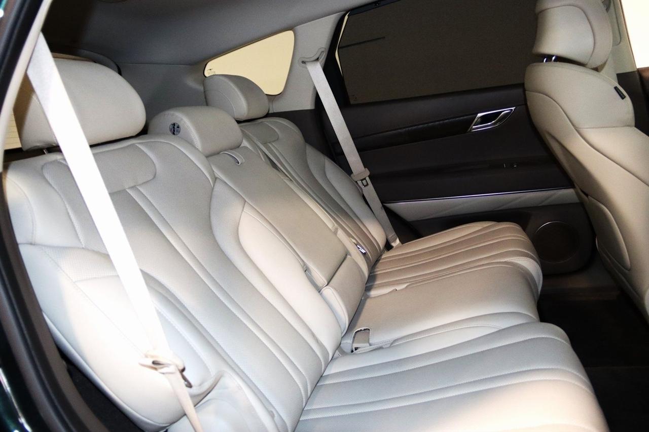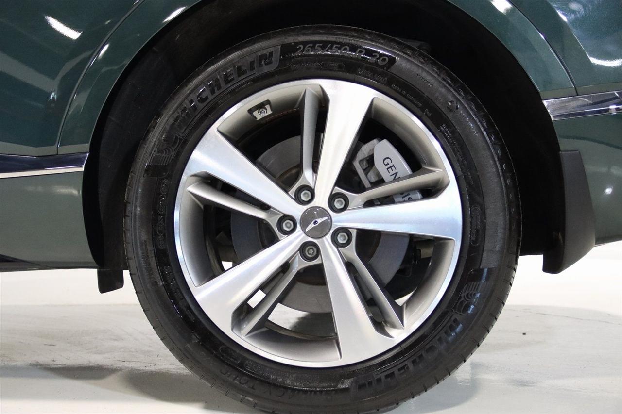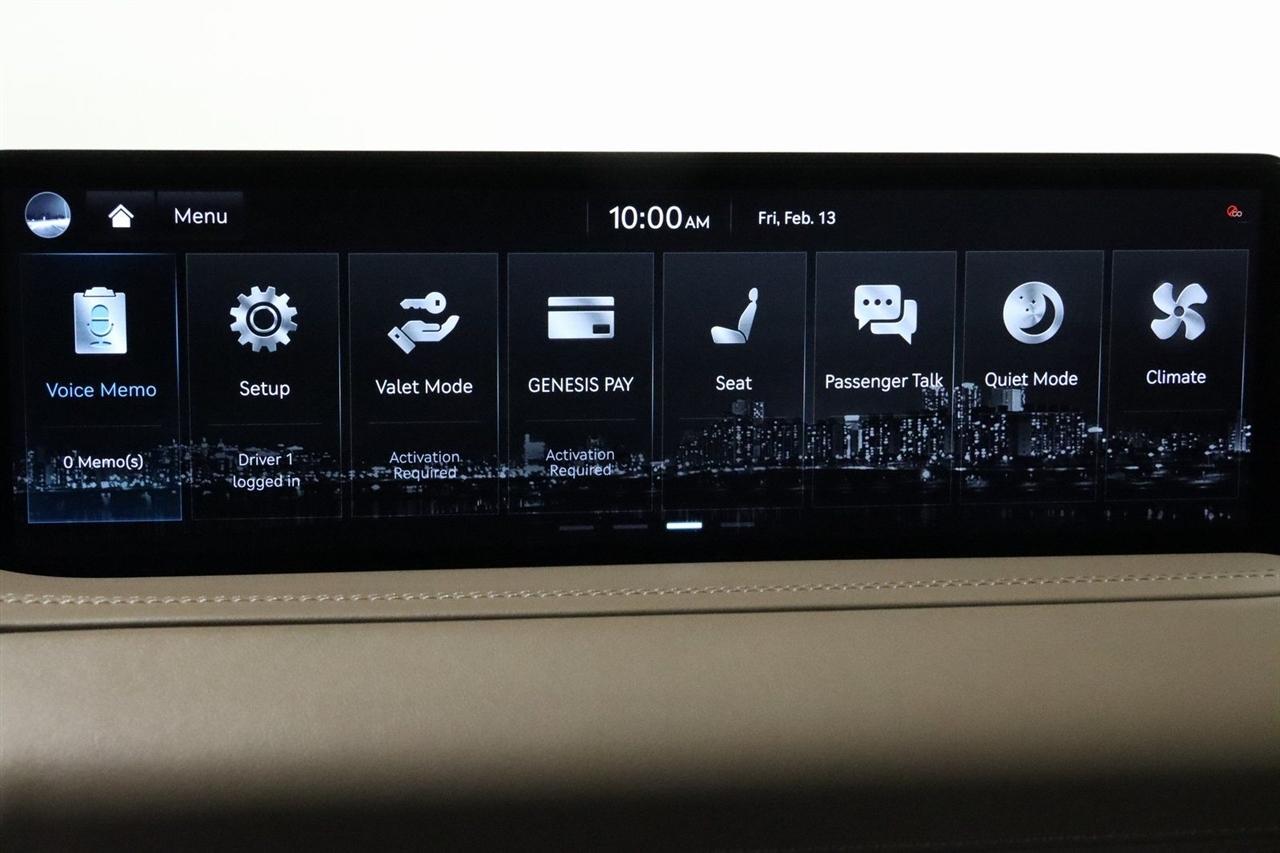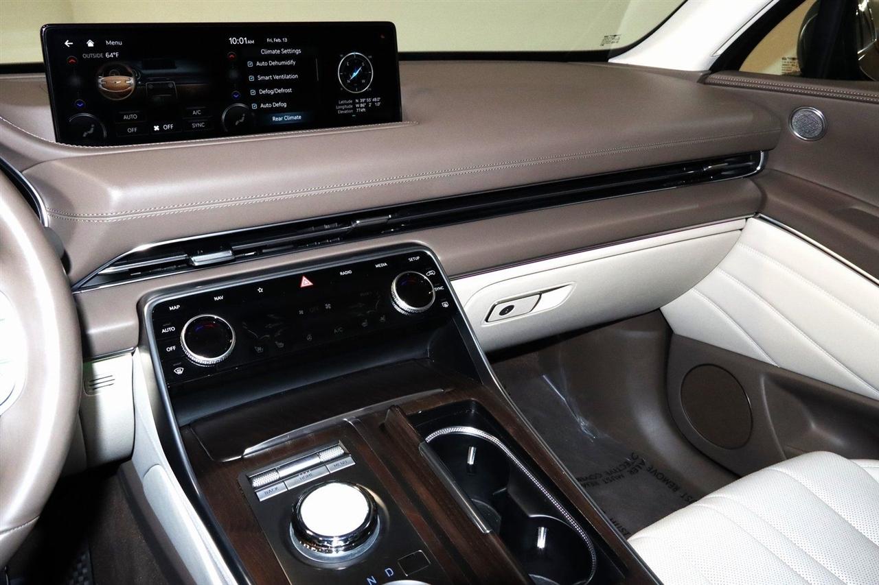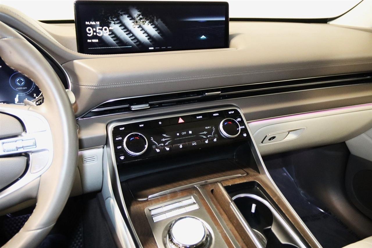 Navigation, Bluetooth, Back Up Camera, Panoramic Roof, Heated Seats, Touch Screen, 12 Speakers, 3.909 Axle Ratio, 4-Wheel Disc Brakes, ABS brakes, Adaptive suspension, Air Conditioning, Alloy wheels, AM/FM radio: SiriusXM, Android Auto & Apple CarPlay, Anti-whiplash front head restraints, Auto High-beam Headlights, Auto tilt-away steering wheel, Auto-dimming door mirrors, Auto-dimming Rear-View mirror, Automatic temperature control, Brake assist, Bumpers: body-color, Compass, Delay-off headlights, Driver door bin, Driver vanity mirror, Dual front impact airbags, Dual front side impact airbags, Electronic Stability Control, Emergency communication system: Genesis Connected Services, Exterior Parking Camera Rear, Four wheel independent suspension, Front anti-roll bar, Front Bucket Seats, Front Center Armrest, Front dual zone A/C, Front reading lights, Fully automatic headlights, Garage door transmitter: HomeLink, Genuine wood console insert, Genuine wood dashboard insert, Genuine wood door panel insert, Heated & Ventilated Front Bucket Seats, Heated door mirrors, Heated front seats, Heated steering wheel, Illuminated entry, Knee airbag, Leather steering wheel, Leatherette Seating Surfaces, Low tire pressure warning, Memory seat, Navigation System, Occupant sensing airbag, Outside temperature display, Overhead airbag, Overhead console, Panic alarm, Passenger door bin, Passenger vanity mirror, Power door mirrors, Power driver seat, Power Liftgate, Power moonroof, Power passenger seat, Power steering, Power windows, Radio data system, Radio:14.5" Navigation System w/AM/FM/HD Radio, Rain sensing wipers, Rear air conditioning, Rear anti-roll bar, Rear reading lights, Rear seat center armrest, Rear side impact airbag, Rear window defroster, Rear window wiper, Remote keyless entry, Security system, Speed control, Speed-sensing steering, Speed-Sensitive Wipers, Split folding rear seat, Spoiler, Steering wheel memory, Steering wheel mounted audio controls, Tachometer, Telescoping steering wheel, Tilt steering wheel, Traction control, Trip computer, Turn signal indicator mirrors, Variably intermittent wipers, Ventilated front seats, Wheels: 20" x 8.5J Medium Metallic Gray Alloy. CARFAX One-Owner. Odometer is 11447 miles below market average! Priced below KBB Fair Purchase Price!