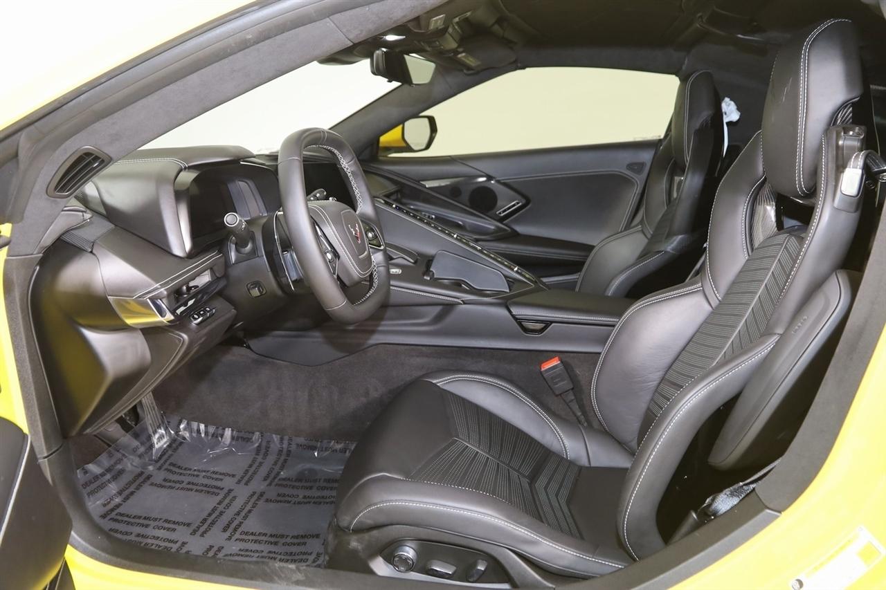 Navigation, Back Up Camera, Bluetooth, Sun/Moon Roof, Touch Screen, Heated Front Seats, Heated Steering Wheel, Ventilated Front Seats, Blind Spot, Apple CarPlay/Android Auto, Corvette Stingray 3LT, 2D Coupe, 6.2L V8, 8-Speed Dual Clutch, RWD, Competition Yellow Tintcoat Metallic, Jet Black Leather, 2 Cargo Nets, Bose Performance Series Sound System w/14 Speakers, Custom Leather Wrapped Interior Package, Driver Power Bolster Seat Adjuster, Electrical Theft Deterrent System, HD Front & Rear Vision Cameras, Head-Up Display, Heated & Vented Driver & Passenger Seats, Heated Steering Wheel, Memory Driver & Passenger Convenience Package, Navigation System, Passenger Power Bolster Seat Adjuster, Performance Data & Video Recorder, Power Driver Lumbar Control Seat Adjuster, Power Passenger Lumbar Control Seat Adjuster, Power-Adjustable Outside Heated Mirrors, Preferred Equipment Group 3LT, Rear Cross Traffic Alert, Side Blind Zone Alert, Sueded Microfiber-Wrapped Upper Interior Trim Pkg, Universal Home Remote, Vehicle Inclination Theft Deterrent Sensor, Vehicle Interior Movement Theft Deterrent Sensor, Wireless Charging for Devices.