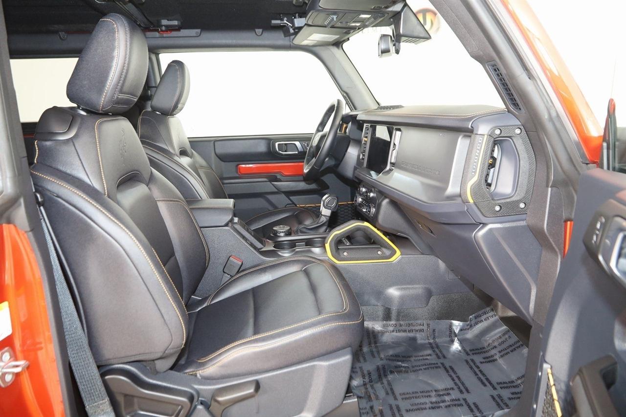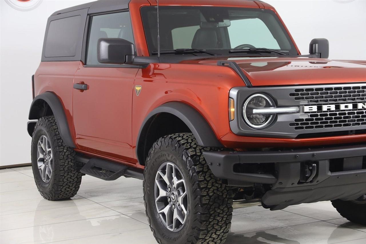 Navigation, Back Up Camera, Bluetooth, Sun/Moon Roof, Running Boards, Winch, Touch Screen, Heated Front Seats, Blind Spot, Apple CarPlay/Android Auto, Bronco Badlands, 2D Sport Utility, 2.7L EcoBoost V6, 10-Speed Automatic, 4WD, Hot Pepper Red Metallic Tinted Clearcoat, Black Onyx Vinyl, 2-Door Intelligent Access w/Lock/Unlock, Ambient Footwell Lighting, Auto-Dimming Interior Rear-View Mirror, Connected Navigation, Dr & Pass Illuminated Sliding Visor Vanity Mirrors, Dual Smart Charging USB Ports, Dual-Zone Electronic Automatic Temperature Control, Equipment Group 332A Mid Package, Front Row Heated Seats, Navigation System, Power Outlet - Back Side of Center Floor Console, Rear Parking Sensors.