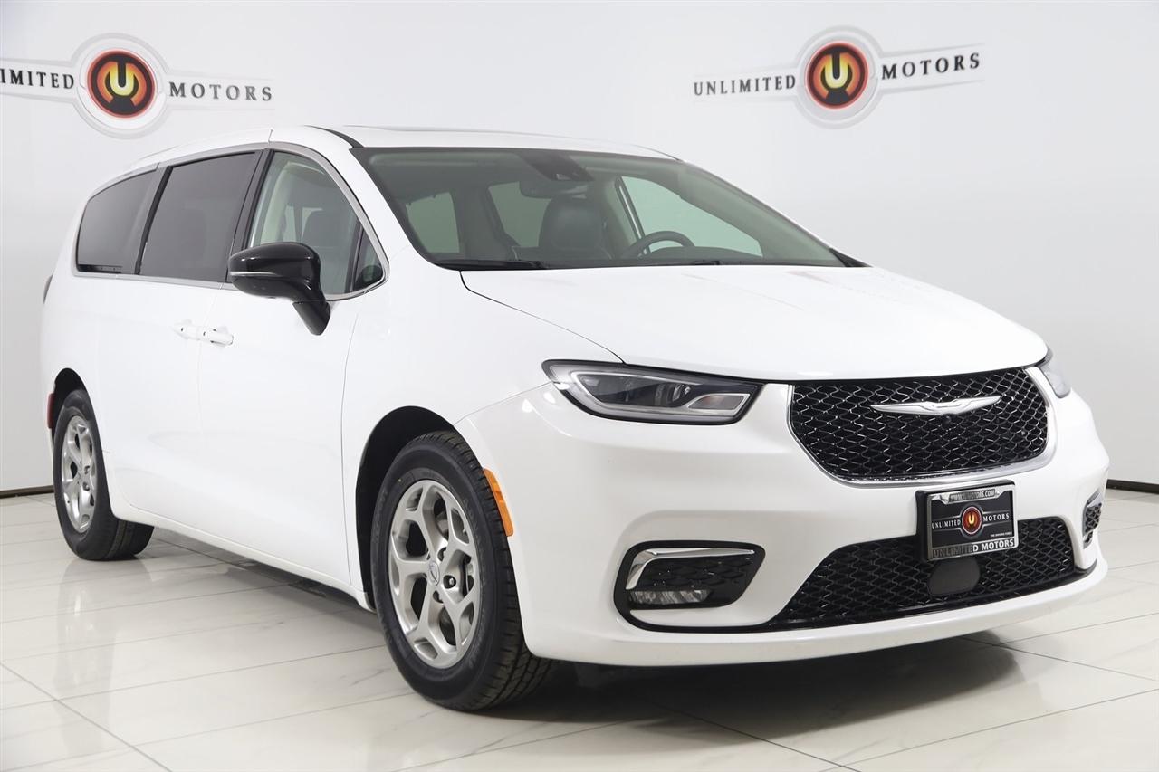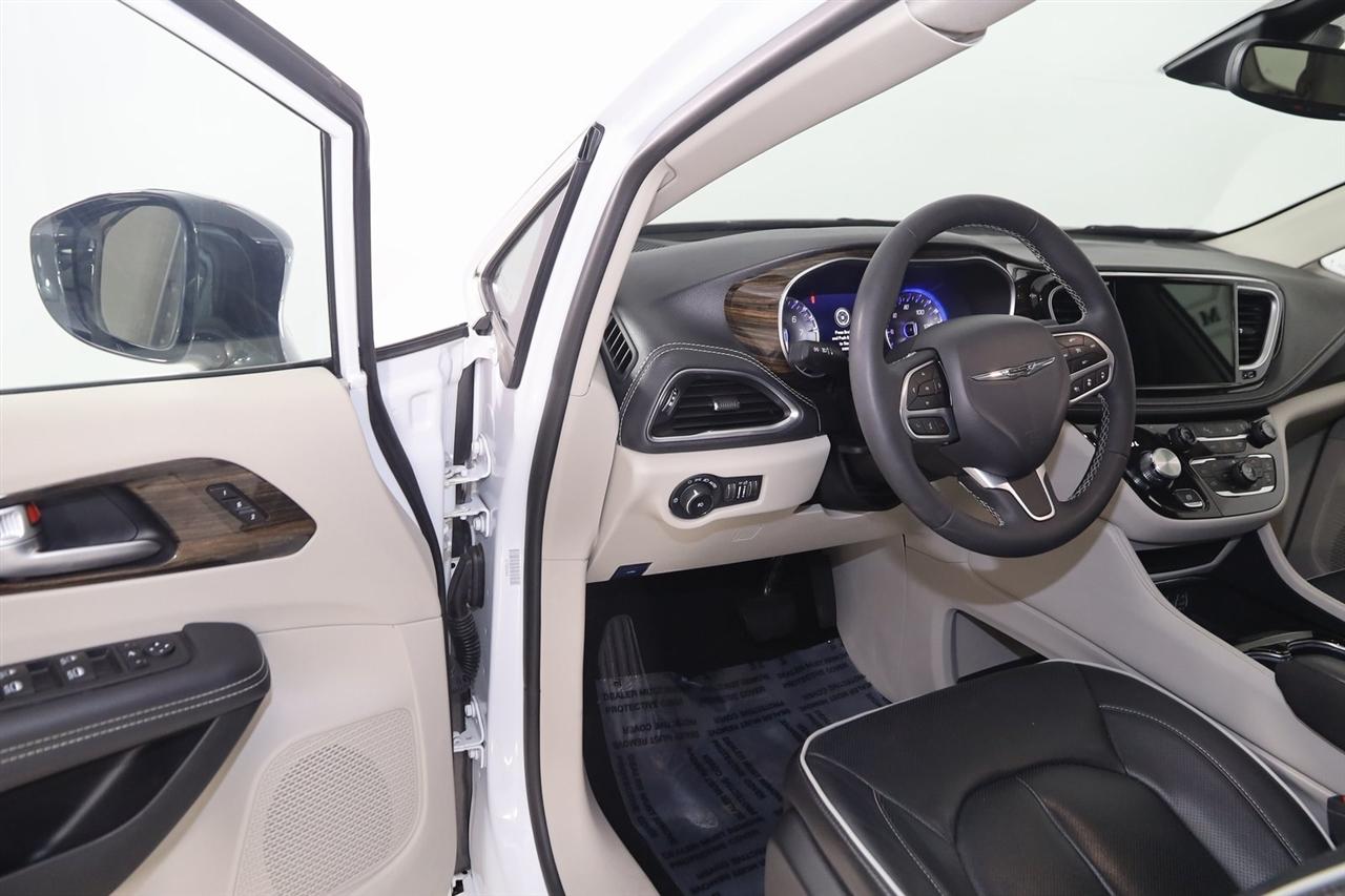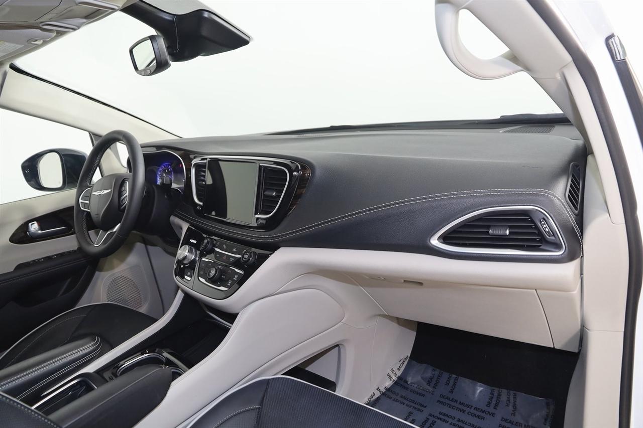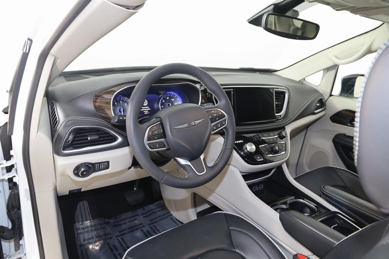 Navigation, Back Up Camera, Bluetooth, Panoramic Roof, Touch Screen, Heated Front Seats, Heated Steering Wheel, Ventilated Front Seats, Blind Spot, Apple CarPlay/Android Auto, Pacifica Limited, 4D Passenger Van, 3.6L V6 24V VVT, 9-Speed 948TE Automatic, FWD, Bright White Clearcoat, Black/Alloy/Black Leather, Navigation System, Quick Order Package 27P.