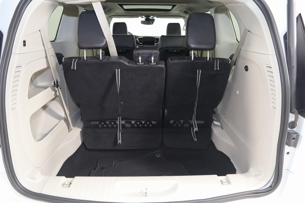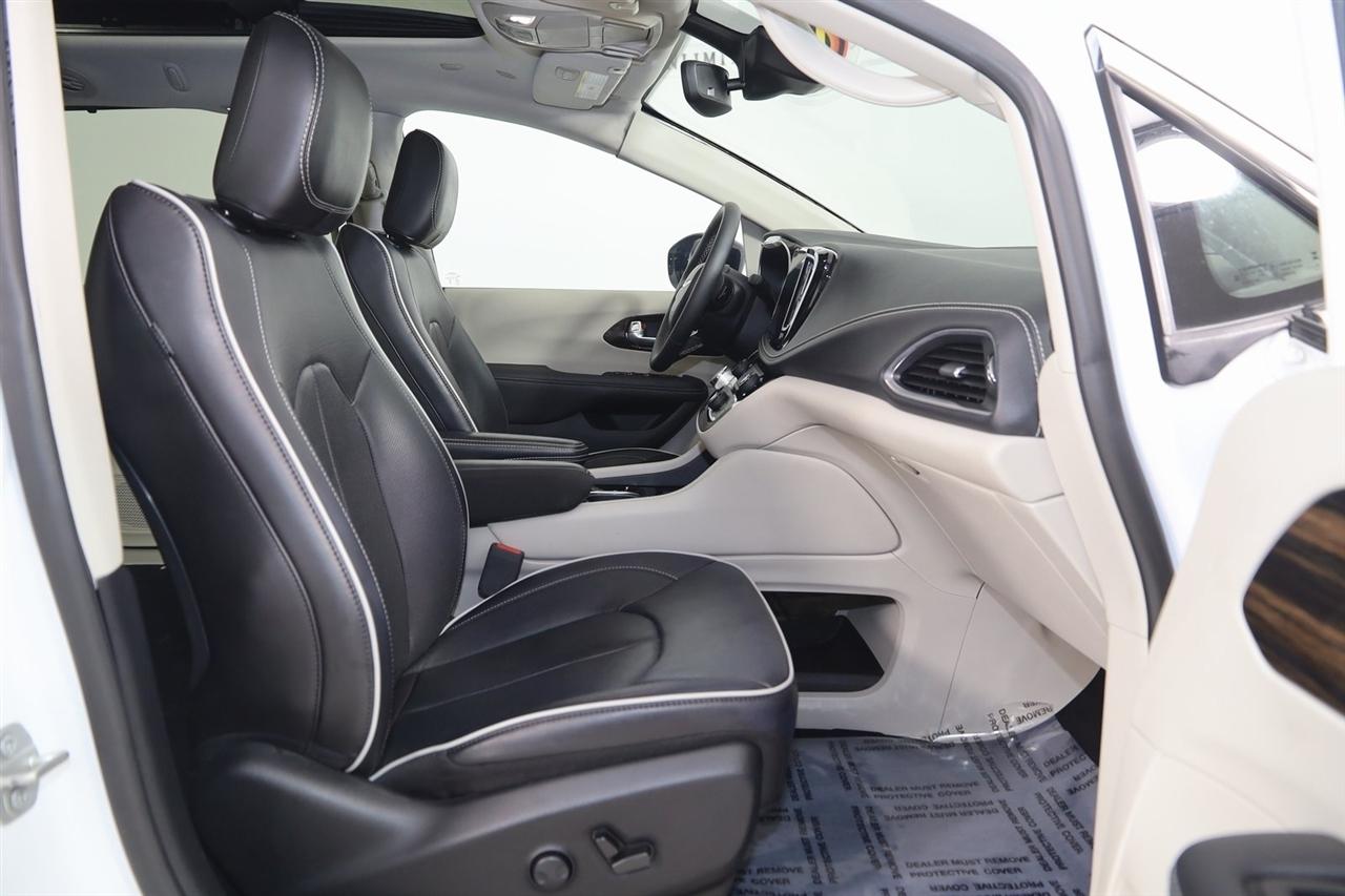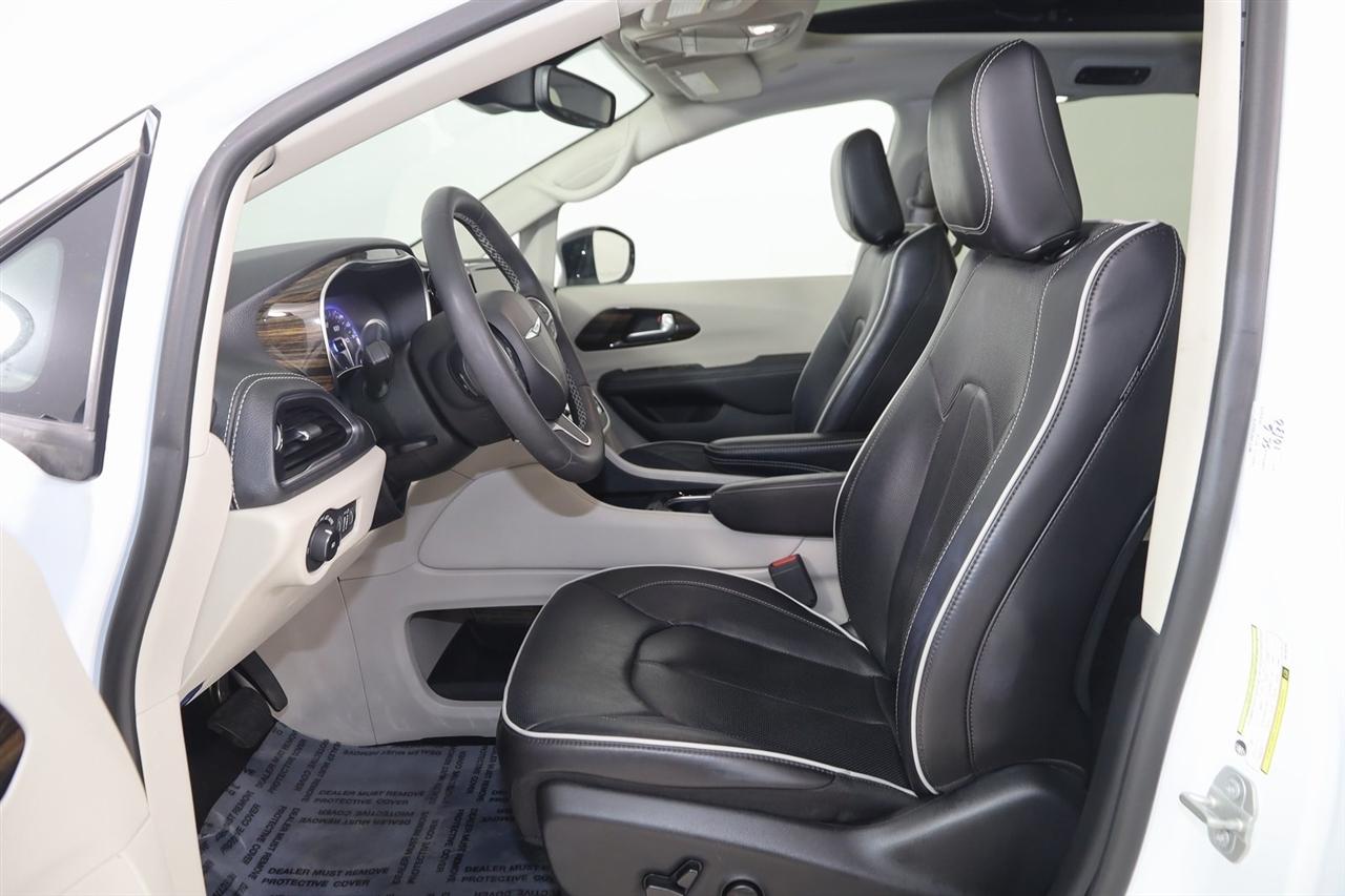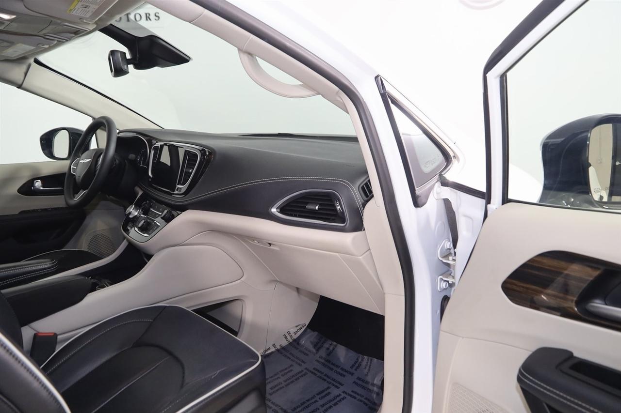 Navigation, Back Up Camera, Bluetooth, Panoramic Roof, Touch Screen, Heated Front Seats, Heated Steering Wheel, Ventilated Front Seats, Blind Spot, Apple CarPlay/Android Auto, Pacifica Limited, 4D Passenger Van, 3.6L V6 24V VVT, 9-Speed 948TE Automatic, FWD, Bright White Clearcoat, Black/Alloy/Black Leather, Navigation System, Quick Order Package 27P.