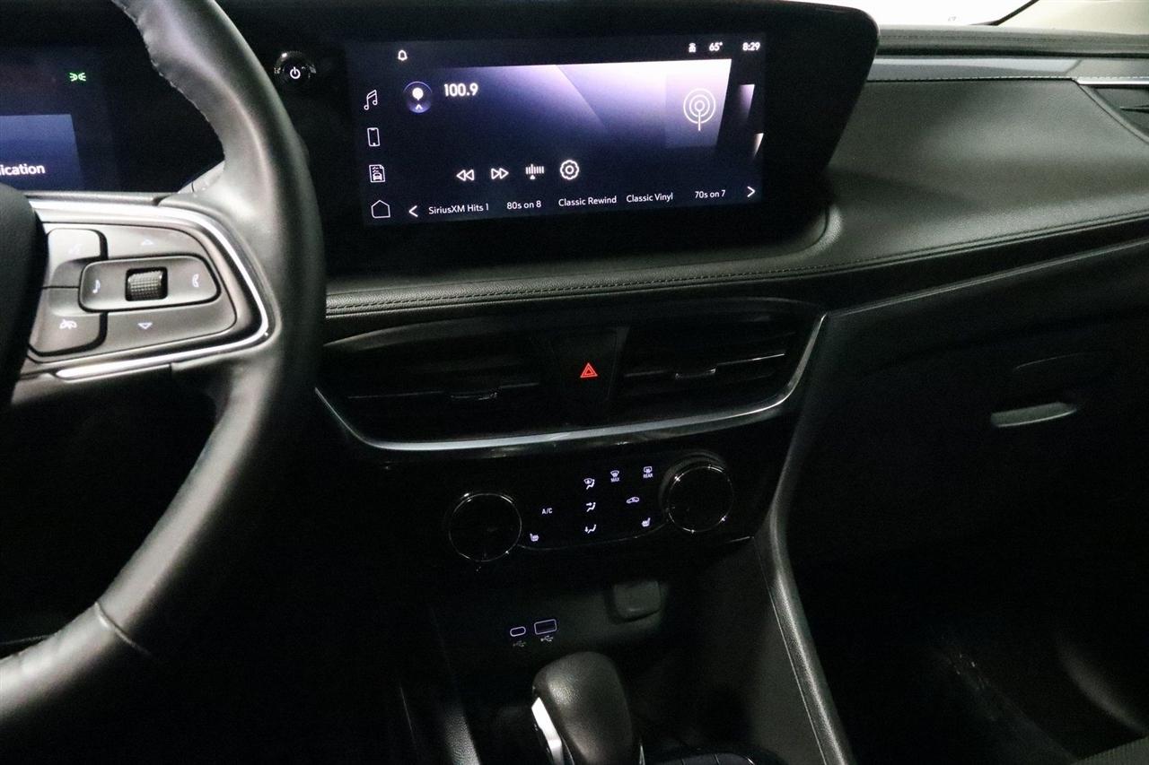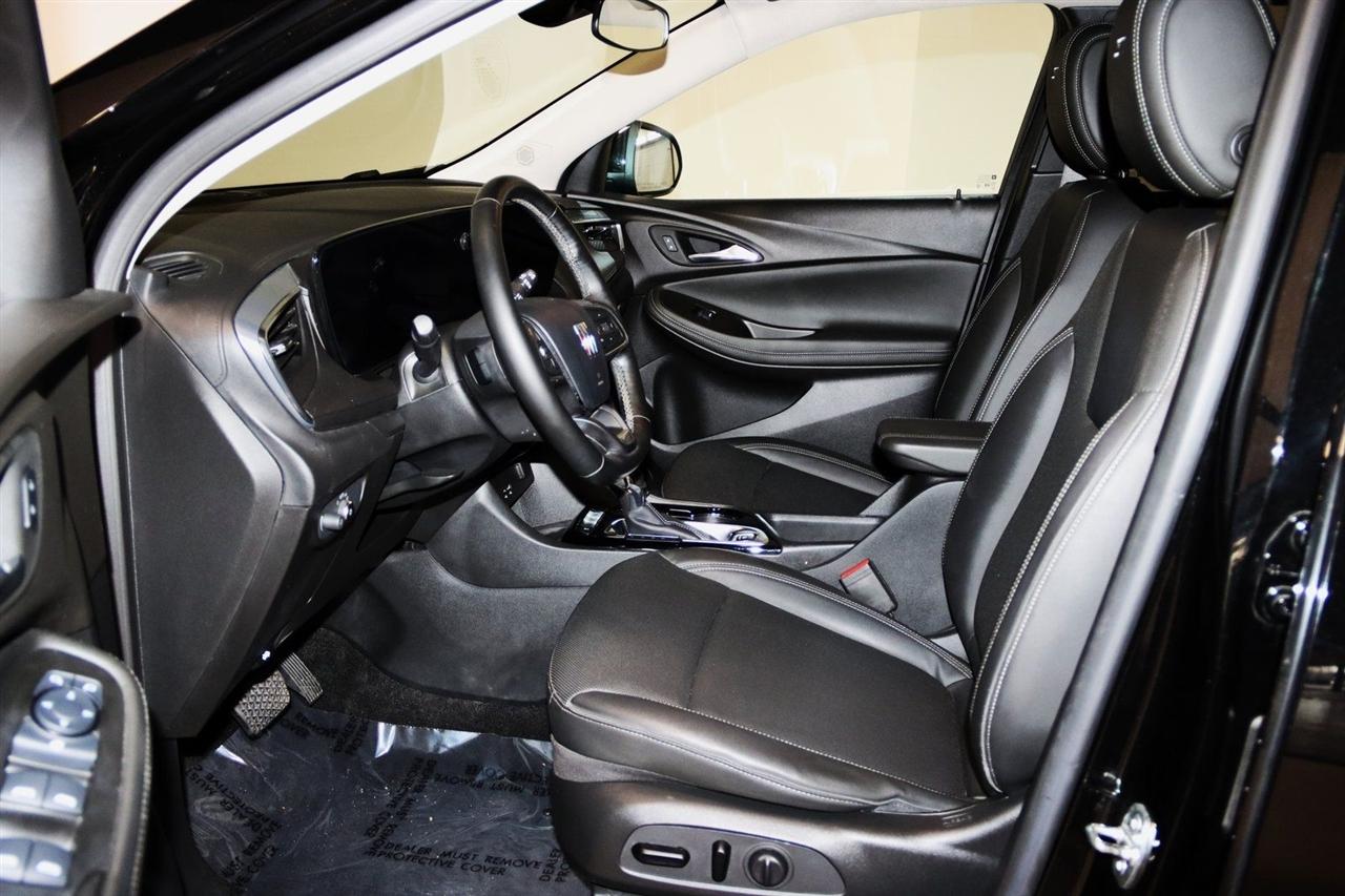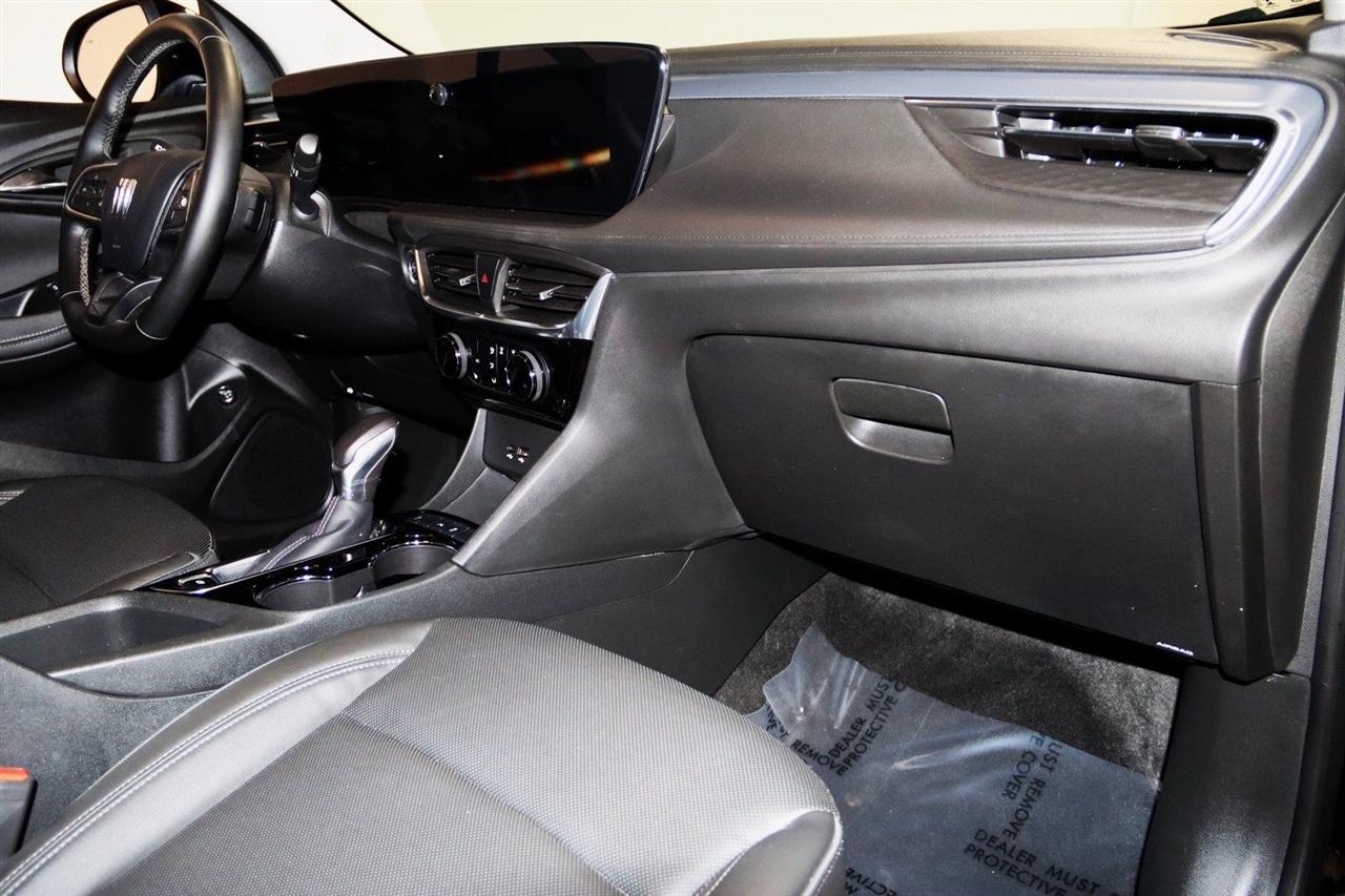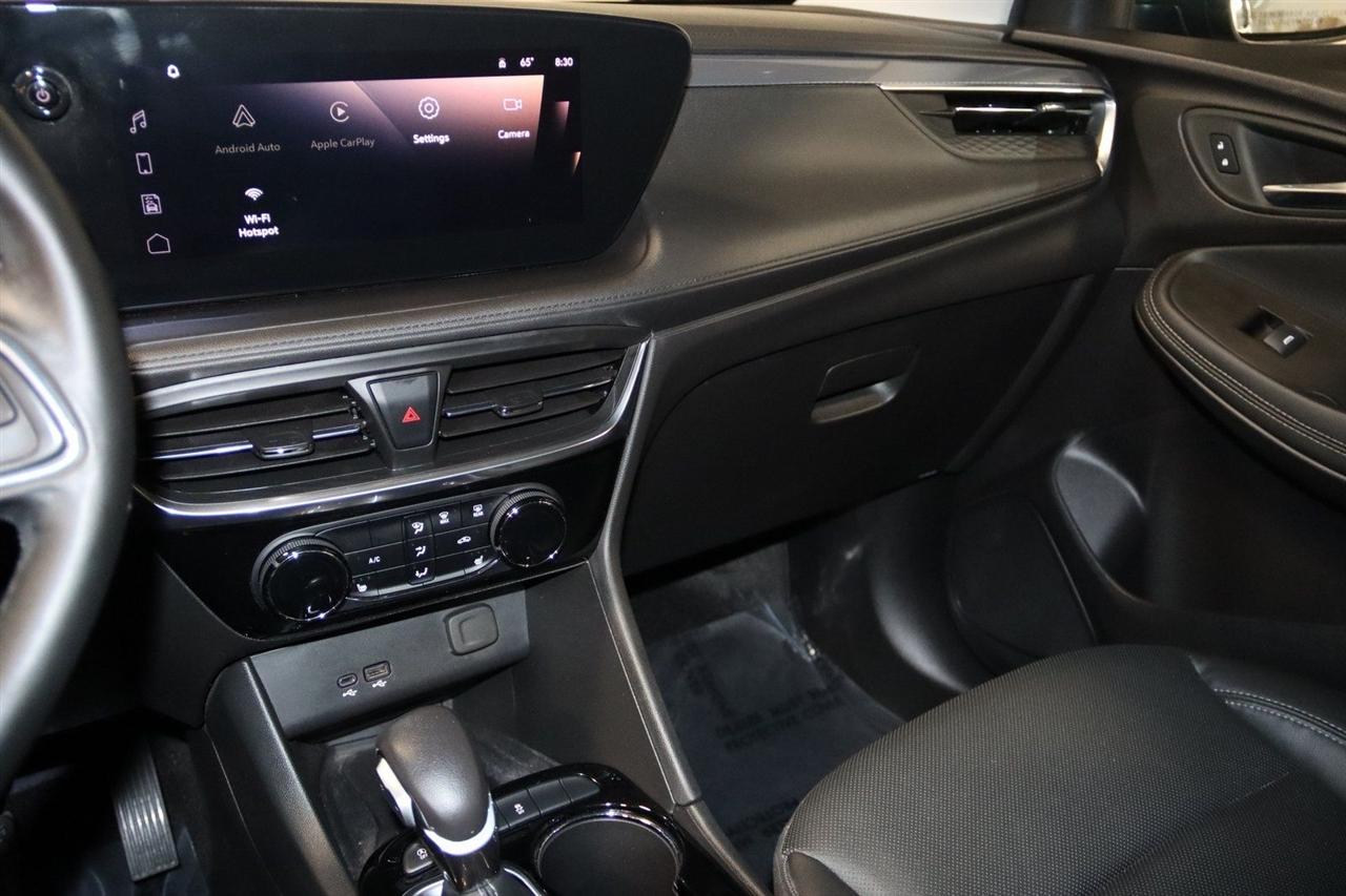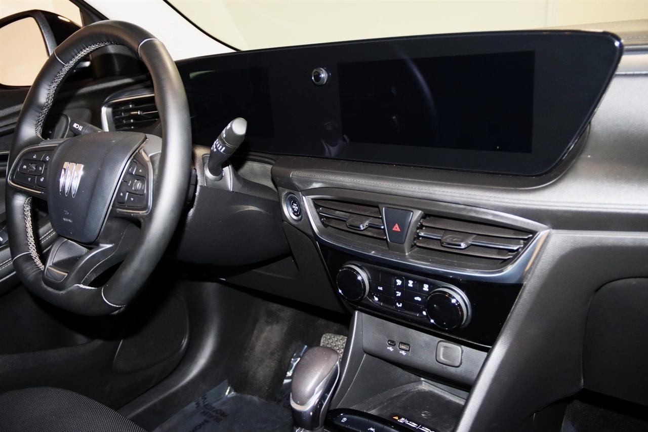 Bluetooth, Back Up Camera, Touch Screen, 2 USB Ports (1 Type-A, 1 Type-C), 2-Way Power Driver Lumbar Control, 4-Way Manual Passenger Seat Adjuster, 4-Wheel Disc Brakes, 5.45 Final Drive Axle Ratio, 6 Speakers, 6-Way Manual Driver Seat Adjuster, 8-Way Power Driver Seat Adjuster, ABS brakes, Adaptive Cruise Control, Advanced Technology Package, Air Conditioning, Alloy wheels, AM/FM radio: SiriusXM, Auto High-beam Headlights, Automatic temperature control, Brake assist, Bumpers: body-color, Comfort Package, Compass, Delay-off headlights, Driver door bin, Driver vanity mirror, Dual front impact airbags, Dual front side impact airbags, Electronic Stability Control, Emergency communication system: OnStar and Buick connected services capable, Enhanced Performance 6-Speaker System, Flat-Folding Front Passenger Seatback, Front anti-roll bar, Front Bucket Seats, Front Center Armrest, Front reading lights, Front wheel independent suspension, Fully automatic headlights, HD Surround Vision, Heated door mirrors, Heated Driver & Front Passenger Seats, Heated Steering Wheel, Illuminated entry, Knee airbag, Leatherette Seat Trim, Low tire pressure warning, Not Equipped w/Rear Park Assist, Occupant sensing airbag, Outside temperature display, Overhead airbag, Overhead console, Panic alarm, Passenger door bin, Passenger vanity mirror, Power door mirrors, Power Liftgate, Power steering, Power windows, Preferred Equipment Group 1SD, Radio data system, Radio: Audio System w/AM/FM, Rear Center Armrest, Rear Park Assist, Rear reading lights, Rear side impact airbag, Rear window defroster, Rear window wiper, Remote keyless entry, Remote Vehicle Starter System, Ride & Handling Suspension, Security system, SiriusXM, Speed control, Speed-sensing steering, Split folding rear seat, Spoiler, Sport steering wheel, Steering wheel mounted audio controls, Tachometer, Telescoping steering wheel, Tilt steering wheel, Traction control, Trip computer, Variably intermittent wipers, Wheels: 18" Gloss Black Aluminum, Wireless Apple CarPlay/Wireless Android Auto, Wireless Charging. CARFAX One-Owner. 29/31 City/Highway MPG Odometer is 12016 miles below market average!