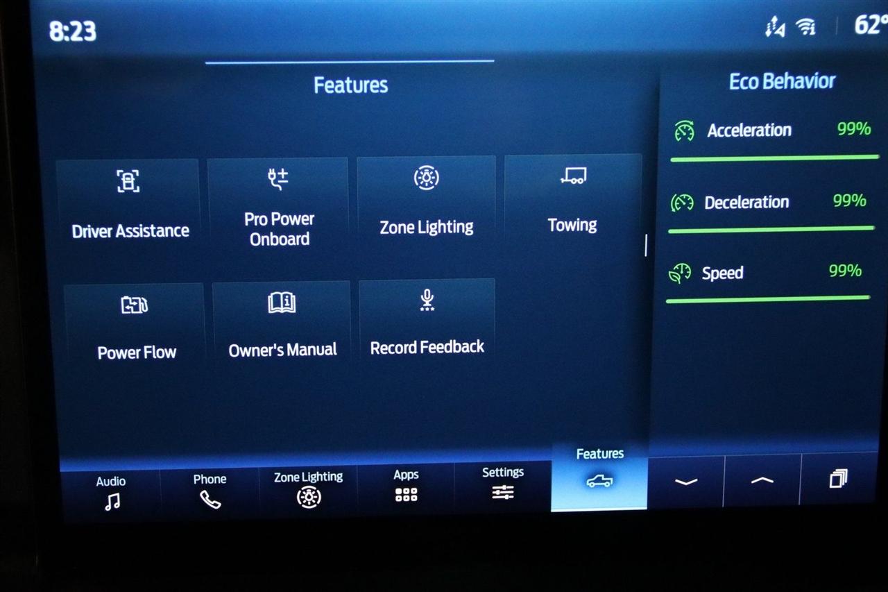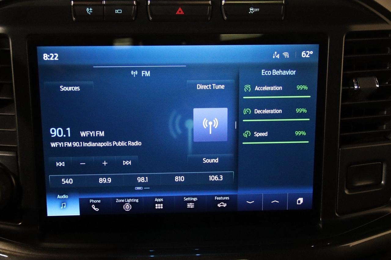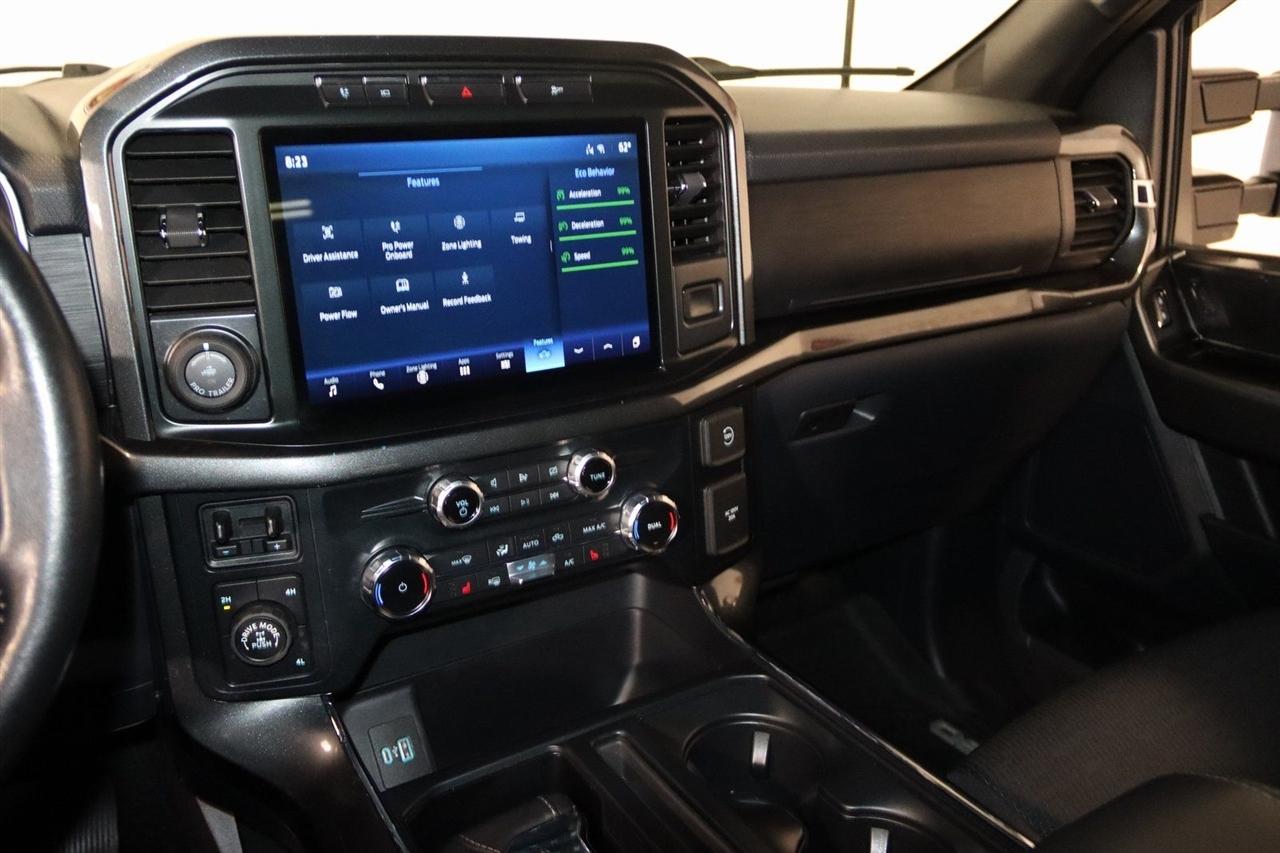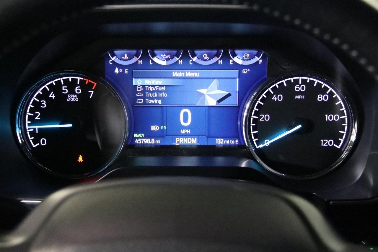 Bluetooth, Back Up Camera, Touch Screen, 10-Way Power Driver & Passenger Seats, 4-Wheel Disc Brakes, 6 Speakers, 8" Productivity Screen in Instrument Cluster, ABS brakes, Accent-Color Step Bars, Air Conditioning, Alloy wheels, AM/FM radio, Auto High-beam Headlights, Auto Start-Stop Removal, Auto-Dimming Rear-View Mirror, Black 2-Bar Style Grille w/Black Surround/Accents, Body-Color Door & Tailgate Handles, Body-Color Front & Rear Bumpers, Box Side Decals, Brake assist, Bumpers: chrome, Chrome Single-Tip Exhaust, Class IV Trailer Hitch Receiver, Cloth 40/20/40 Front Seat, Compass, Connected Navigation & SiriusXM w/360L Removal, Delay-off headlights, Driver door bin, Driver vanity mirror, Dual front impact airbags, Dual front side impact airbags, Dual Zone Electronic Automatic Temperature Control, Electronic Stability Control, Emergency communication system: SYNC 4 911 Assist, Equipment Group 302A High, Extended Range 36 Gallon Fuel Tank, Exterior Parking Camera Rear, Front anti-roll bar, Front Center Armrest w/Storage, Front fog lights, Front reading lights, Front wheel independent suspension, Fully automatic headlights, GVWR: 7,350 lbs Payload Package, Heated door mirrors, Heated Front Seats, Illuminated entry, Integrated Trailer Brake Controller, Intelligent Access w/Push Button Start, Leather-Wrapped Steering Wheel, LED Reflector Headlamps, LED Sideview Mirror Spotlights, Low tire pressure warning, Max Trailer Tow Package, Occupant sensing airbag, Onboard 400W Outlet, Outside temperature display, Overhead airbag, Overhead console, Panic alarm, Passenger door bin, Passenger vanity mirror, Power door mirrors, Power Glass Heated Sideview Mirrors, Power steering, Power windows, Pro Power Onboard - 7.2KW, Pro Trailer Backup Assist, Radio data system, Radio: AM/FM SiriusXM w/360L, Radio: AM/FM Stereo w/6 Speakers, Rear reading lights, Rear step bumper, Rear Under-Seat Storage, Rear window defroster, Remote keyless entry, Remote Start System, Remote Start System w/Remote Tailgate Release, Security system, Speed control, Speed-sensing steering, Split folding rear seat, Steering wheel mounted audio controls, SYNC 4, SYNC 4 w/Enhanced Voice Recognition, Tachometer, Telescoping steering wheel, Tilt steering wheel, Traction control, Tray Style Floor Liner (47W), Trip computer, Unique Sport Cloth 40/Console/40 Front-Seats, Voltmeter, Wheels: 18" 6-Spoke w/Magnetic-Painted Pockets, XLT Chrome Appearance Package, XLT Sport Appearance Package, Zone Lighting. CARFAX One-Owner. Clean CARFAX. Odometer is 1040 miles below market average!
