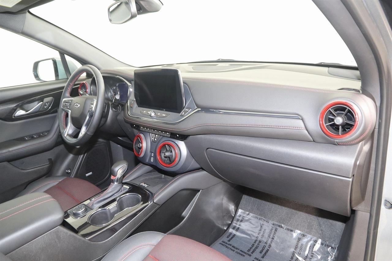 Navigation, Back Up Camera, Bluetooth, Panoramic Roof, Touch Screen, Heated Front Seats, Heated Steering Wheel, Blind Spot, Apple CarPlay/Android Auto, Blazer RS, 4D Sport Utility, 3.6L V6 SIDI, 9-Speed Automatic with Overdrive, AWD, Sterling Metallic, Jet Black With Red Accents Leather, Heated Steering Wheel, Navigation System, Preferred Equipment Group 1RS.
