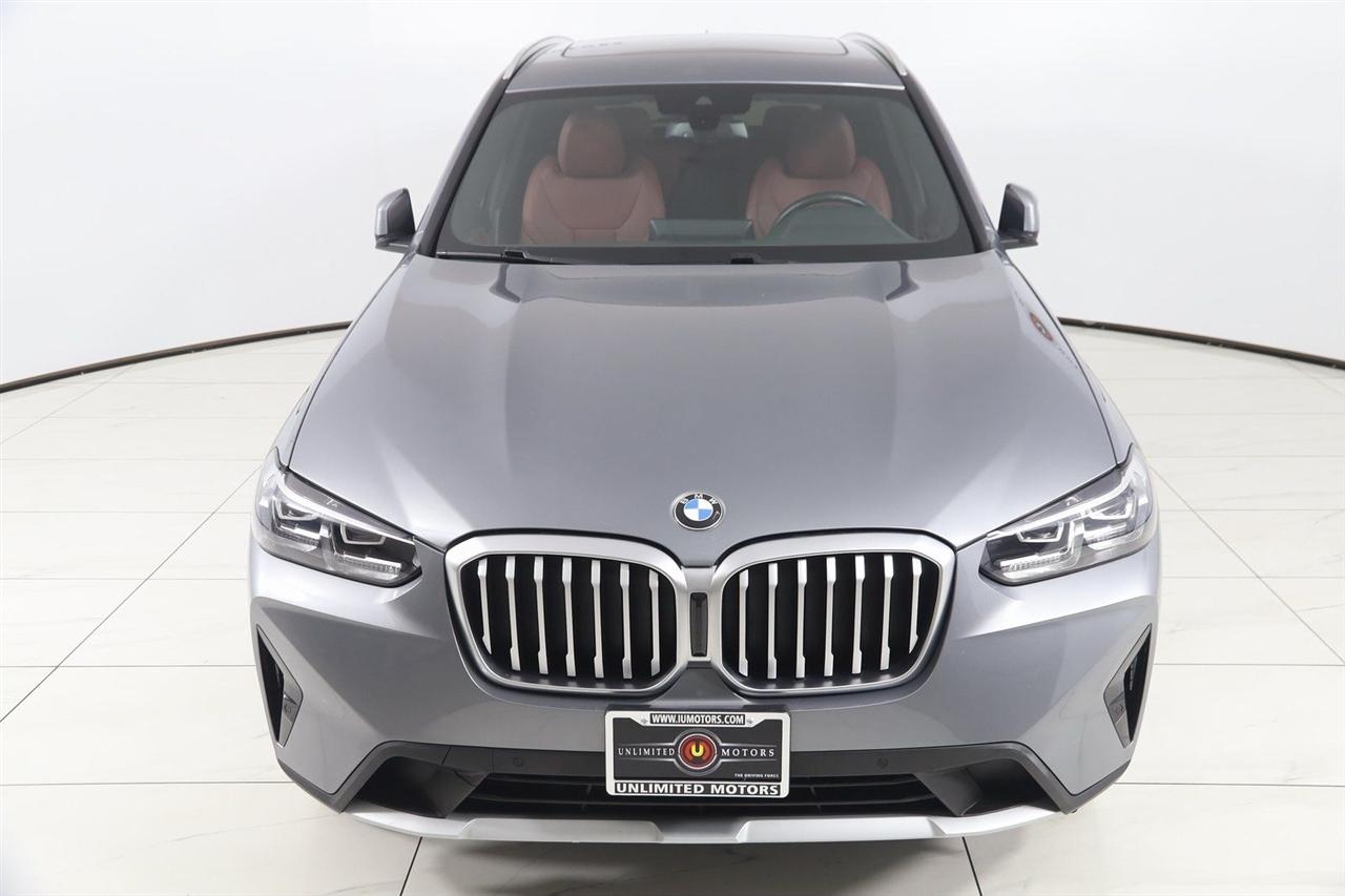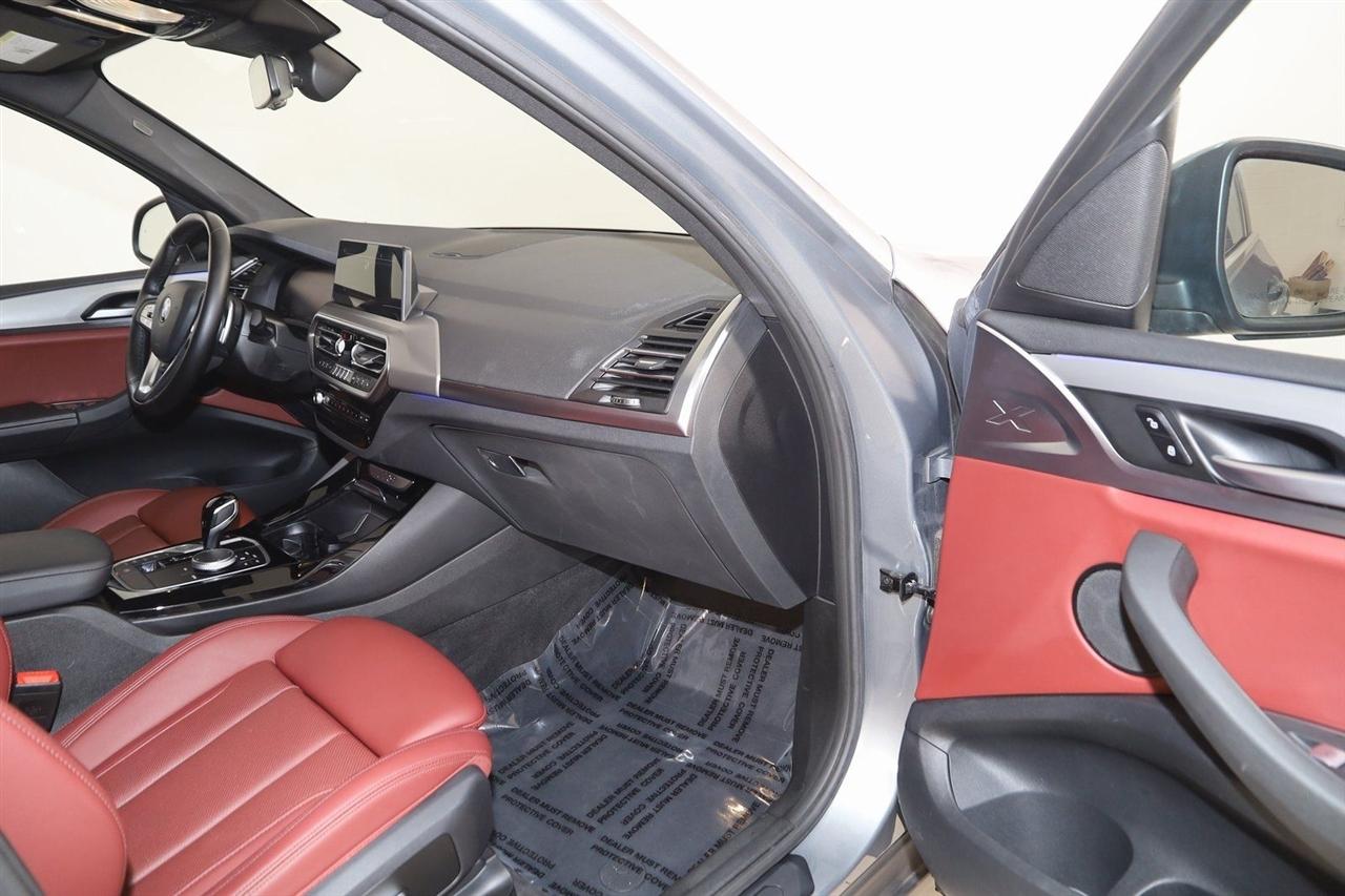 Navigation, Back Up Camera, Bluetooth, Sun/Moon Roof, Panoramic Roof, Touch Screen, Heated Front Seats, Blind Spot, Apple CarPlay/Android Auto, X3 xDrive30i, 4D Sport Utility, 2.0L I4 TwinPower Turbo, 8-Speed Automatic Sport, AWD, Skyscraper Gray Metallic, Tacora Red Artificial Leather, Convenience Package w/ZPA, Driver Lumbar Support, Navigation, Navigation System, Panoramic Moonroof (ZPA).