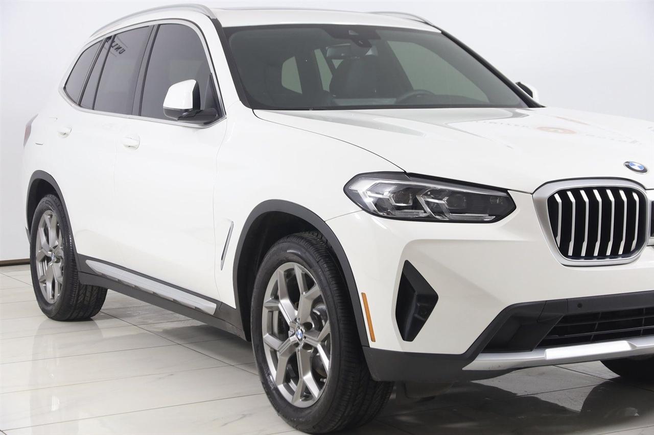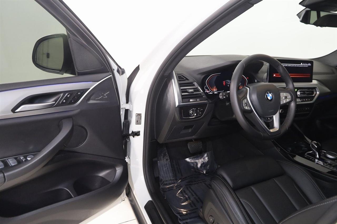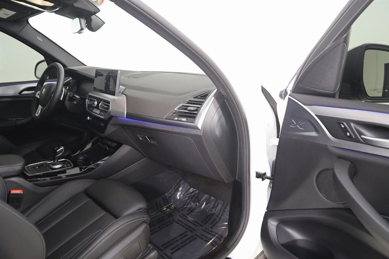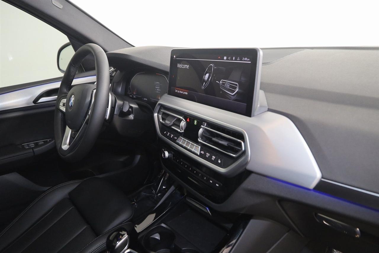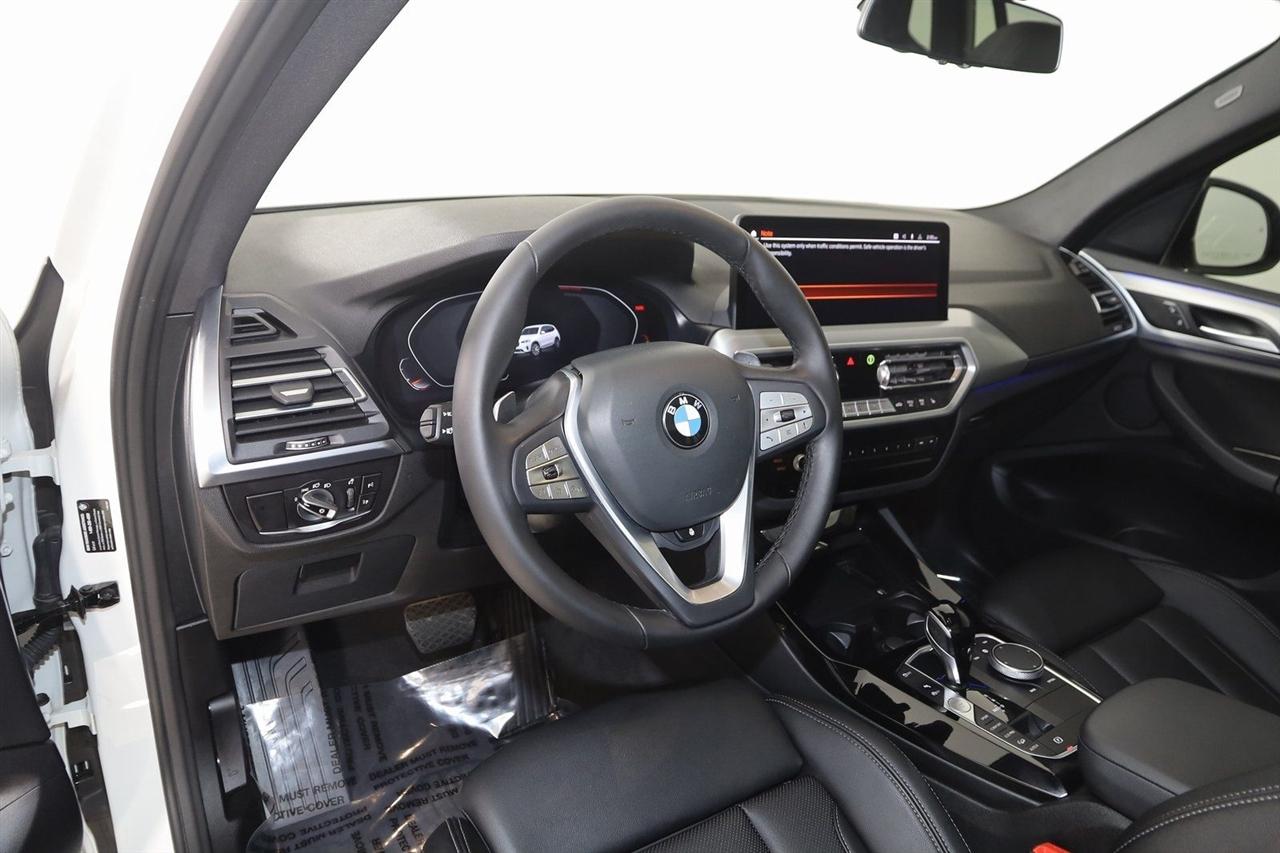 Navigation, Back Up Camera, Bluetooth, Panoramic Roof, Touch Screen, Heated Front Seats, Heated Steering Wheel, Blind Spot, Apple CarPlay/Android Auto, X3 xDrive30i, 4D Sport Utility, 2.0L I4 TwinPower Turbo, 8-Speed Automatic Sport, AWD, Alpine White, Black Artificial Leather, Driver Lumbar Support, Heated Front Seats, Heated Steering Wheel, Live Cockpit Pro w/Navigation, Navigation, Navigation System, Panoramic Moonroof, Premium Package.