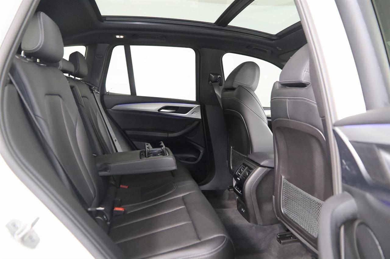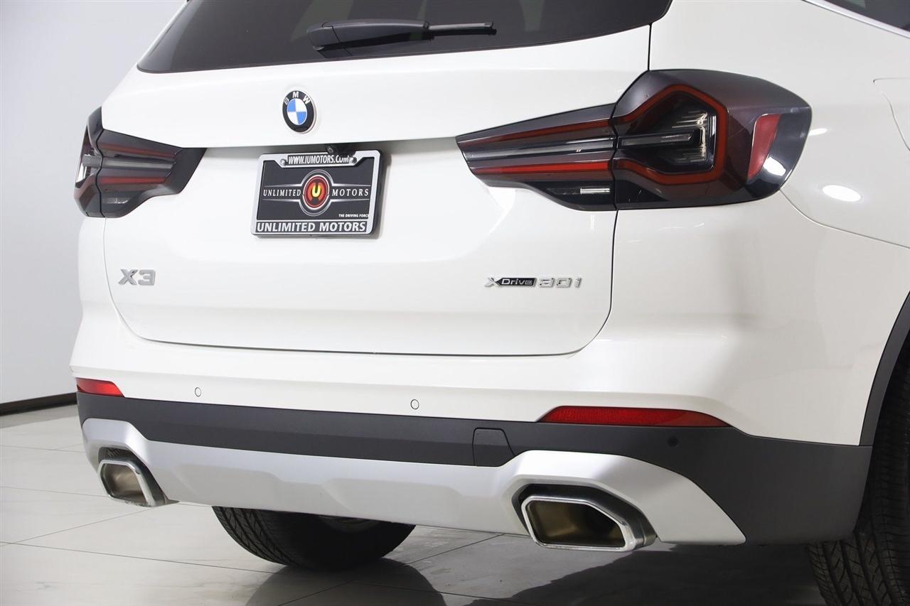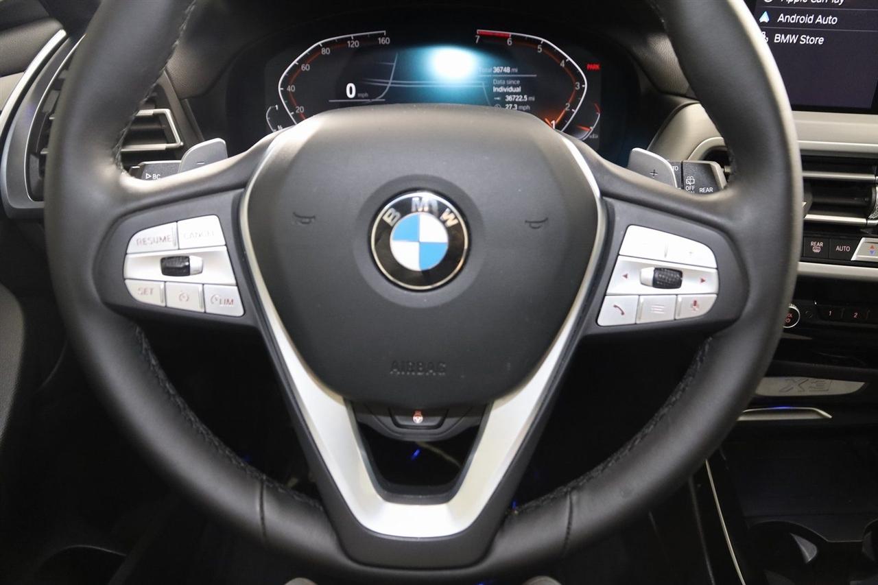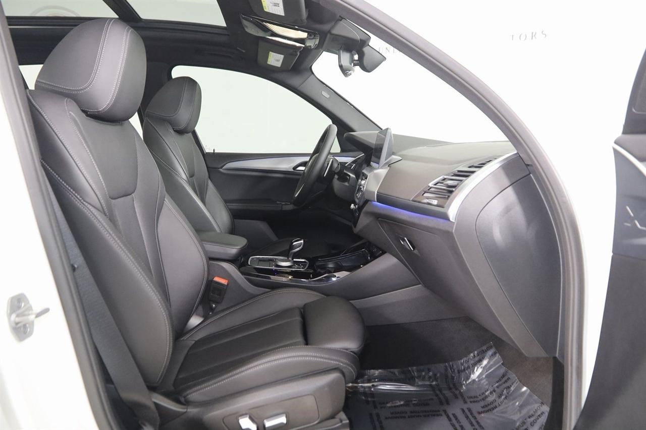 Navigation, Back Up Camera, Bluetooth, Panoramic Roof, Touch Screen, Heated Front Seats, Heated Steering Wheel, Blind Spot, Apple CarPlay/Android Auto, X3 xDrive30i, 4D Sport Utility, 2.0L I4 TwinPower Turbo, 8-Speed Automatic Sport, AWD, Alpine White, Black Artificial Leather, Driver Lumbar Support, Heated Front Seats, Heated Steering Wheel, Live Cockpit Pro w/Navigation, Navigation, Navigation System, Panoramic Moonroof, Premium Package.
