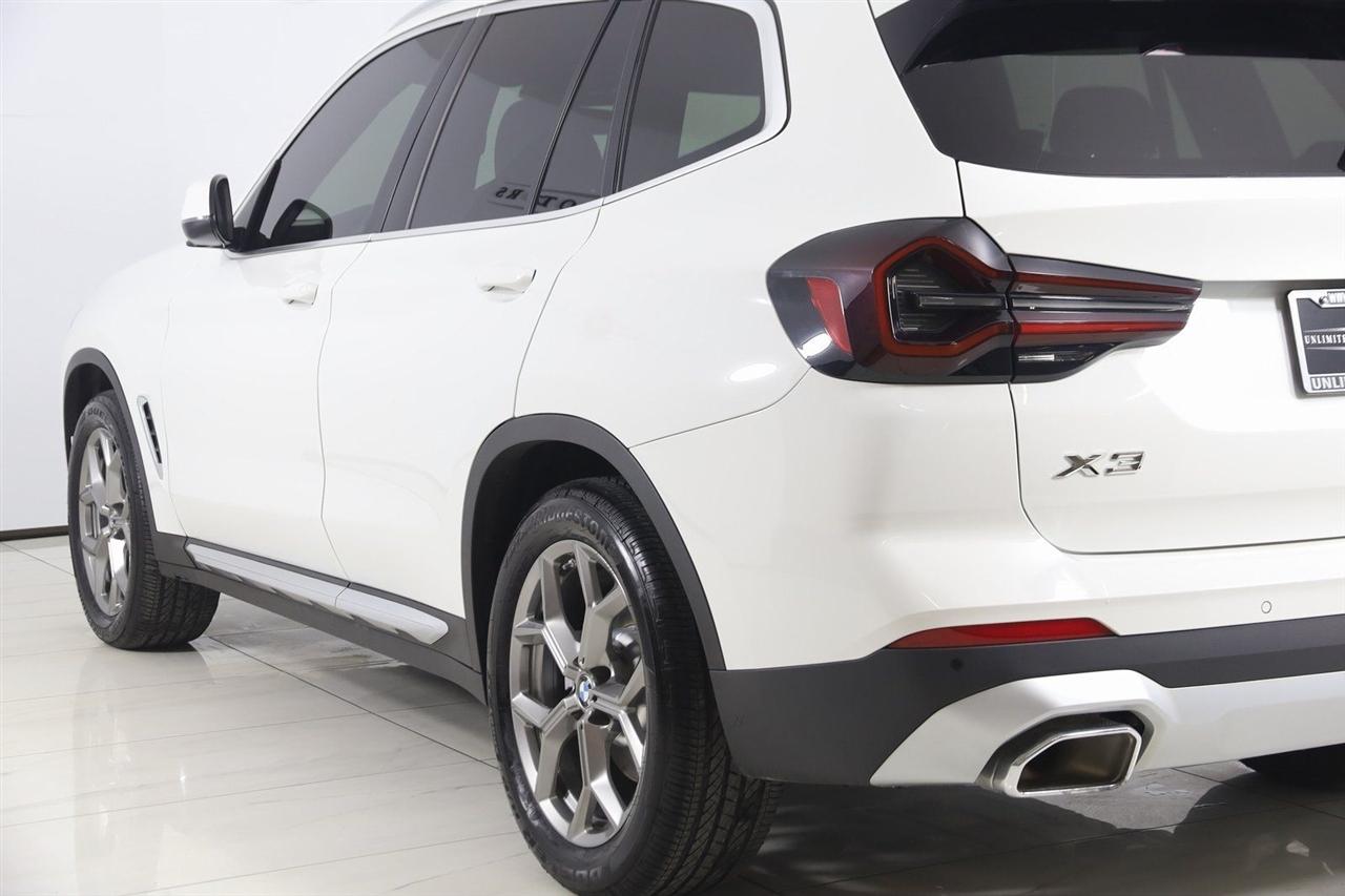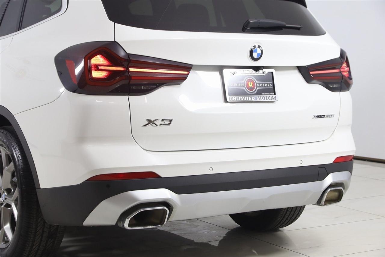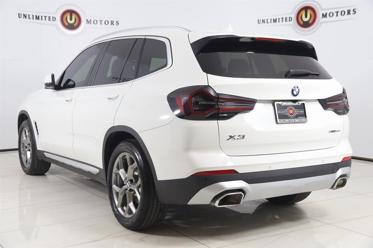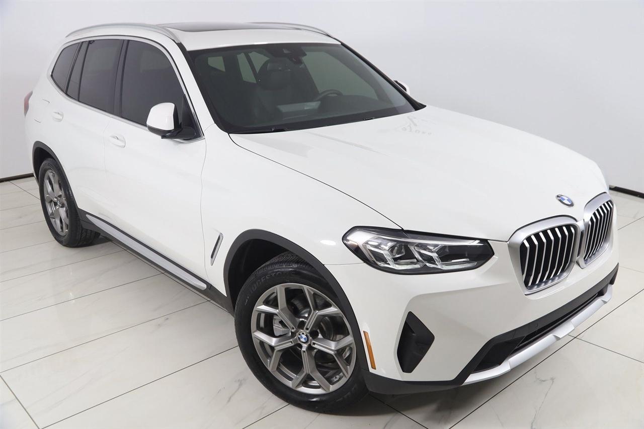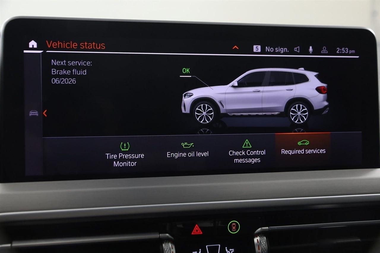 Navigation, Back Up Camera, Bluetooth, Panoramic Roof, Touch Screen, Heated Front Seats, Heated Steering Wheel, Blind Spot, Apple CarPlay/Android Auto, X3 xDrive30i, 4D Sport Utility, 2.0L I4 TwinPower Turbo, 8-Speed Automatic Sport, AWD, Alpine White, Black Artificial Leather, Driver Lumbar Support, Heated Front Seats, Heated Steering Wheel, Live Cockpit Pro w/Navigation, Navigation, Navigation System, Panoramic Moonroof, Premium Package.