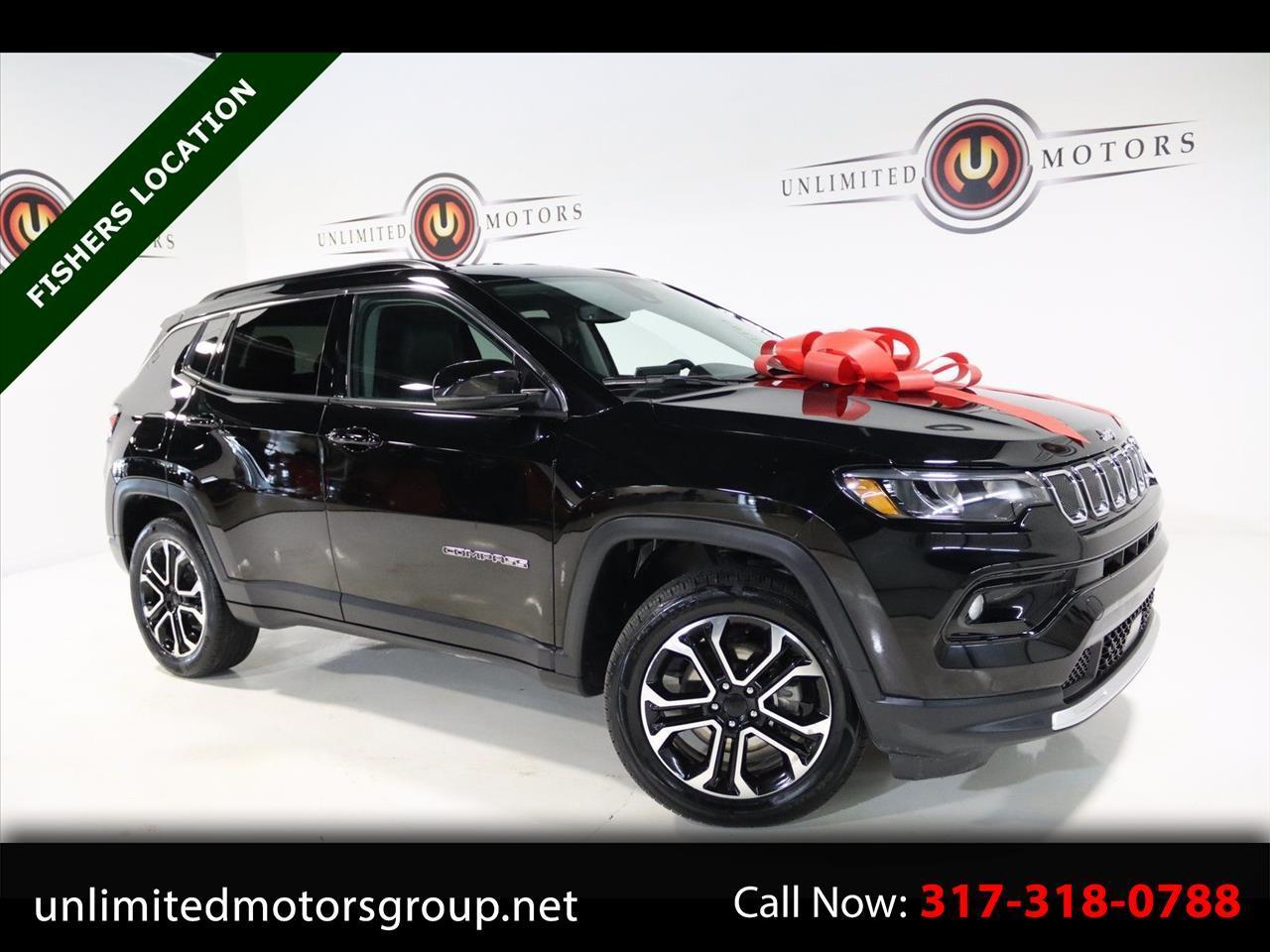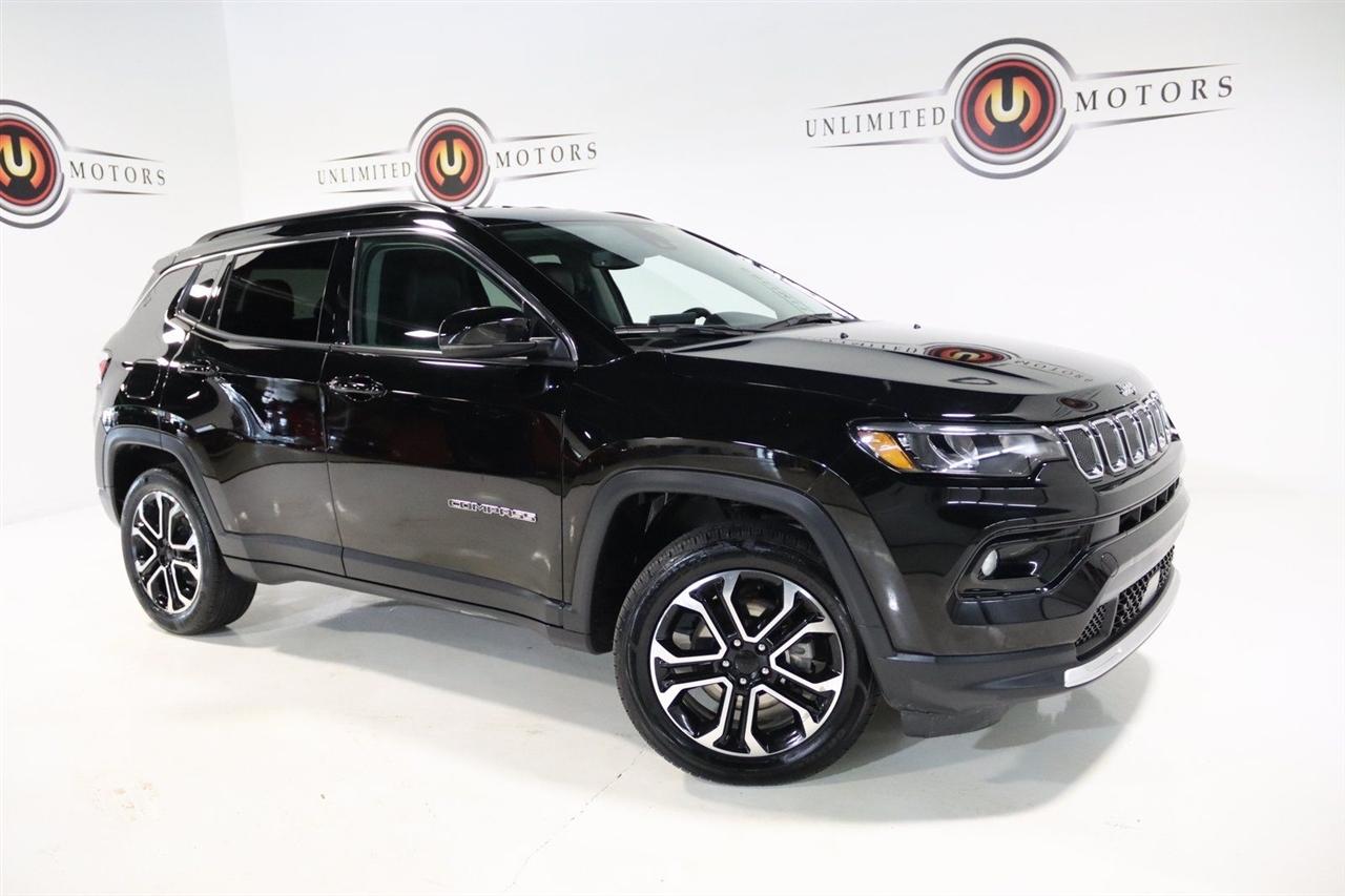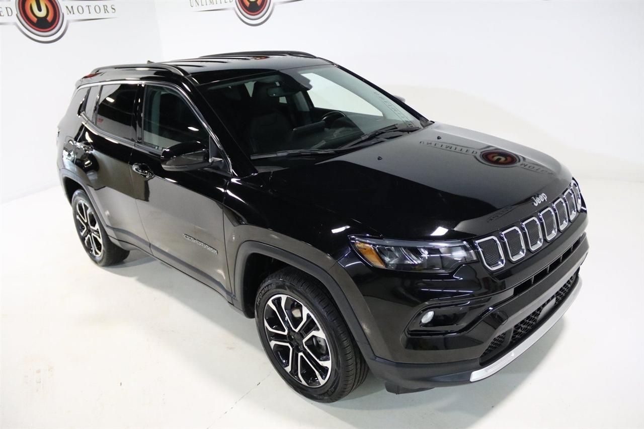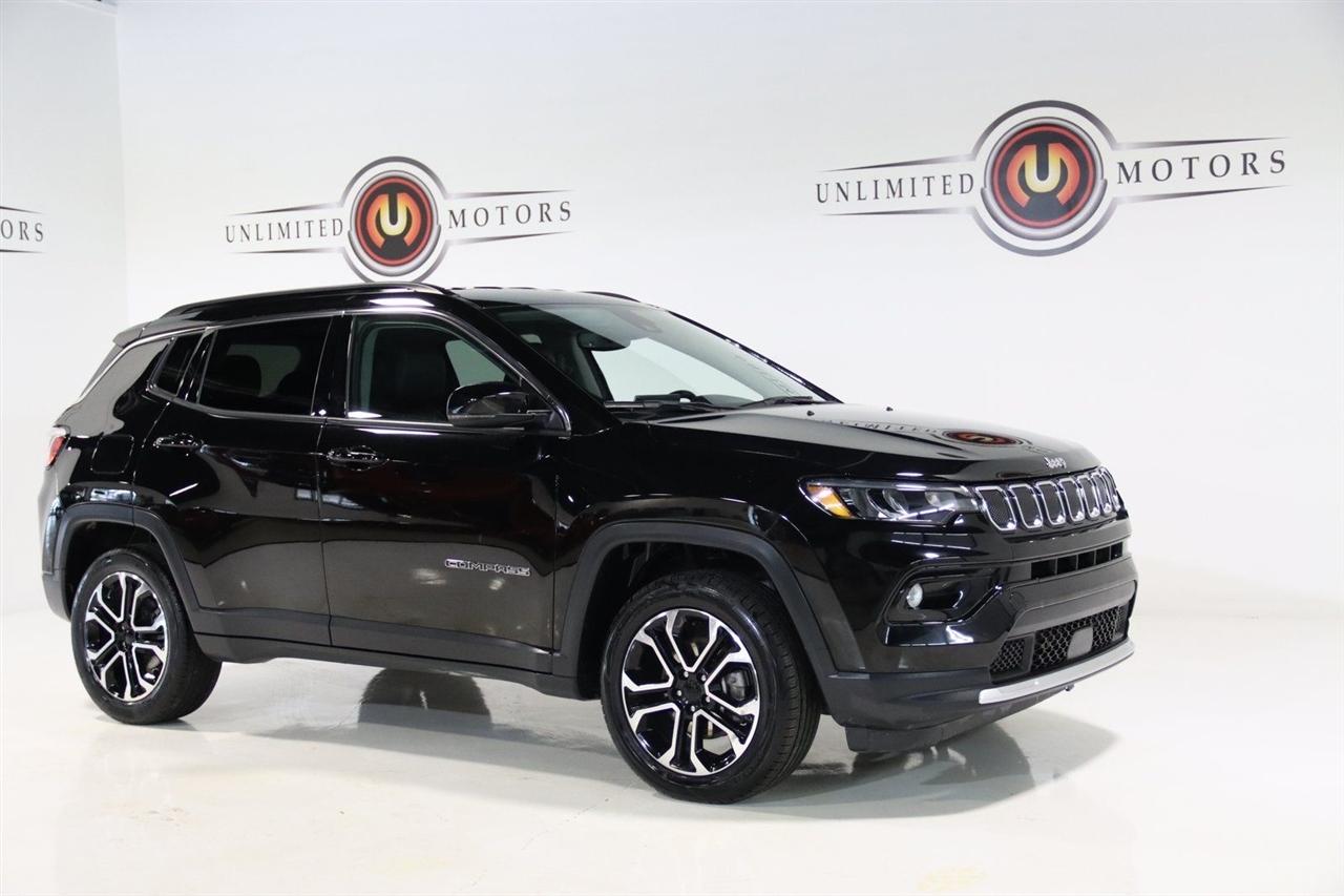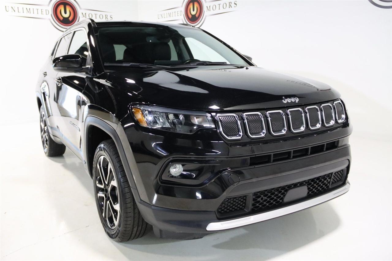2022 Diamond Black Crystal Pearlcoat Jeep 4D Sport Utility Compass Limited 4WD 9-Speed 948TE Automatic 2.4L I4