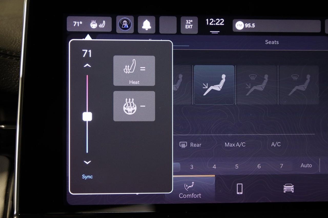 Bluetooth, Back Up Camera, Heated Seats, Touch Screen, 10.1" Touchscreen Display, 3.73 Axle Ratio, 4-Wheel Disc Brakes, 6 Speakers, ABS brakes, Air Conditioning, Alloy wheels, AM/FM radio: SiriusXM, Anti-whiplash front head restraints, Auto High-beam Headlights, Auto-dimming Rear-View mirror, Automatic temperature control, Brake assist, Bumpers: body-color, Compass, Delay-off headlights, Disassociated Touchscreen Display, Driver door bin, Driver vanity mirror, Dual front impact airbags, Dual front side impact airbags, Electronic Stability Control, Emergency communication system: SiriusXM Guardian, Four wheel independent suspension, Front anti-roll bar, Front Bucket Seats, Front Center Armrest w/Storage, Front dual zone A/C, Front fog lights, Front reading lights, Fully automatic headlights, Global Telematics Box Module (TBM), Gloss Black Exterior Mirrors, Heated door mirrors, Heated front seats, Heated steering wheel, Illuminated entry, Knee airbag, Leather Shift Knob, Leather Trimmed Bucket Seats, Low tire pressure warning, Occupant sensing airbag, Outside temperature display, Overhead airbag, Overhead console, Panic alarm, ParkView Rear Back-Up Camera, Passenger door bin, Passenger vanity mirror, Power door mirrors, Power driver seat, Power steering, Power windows, Quick Order Package 2GG, Radio: Uconnect 5 w/10.1" Display, Rain sensing wipers, Rear anti-roll bar, Rear seat center armrest, Rear window defroster, Rear window wiper, Remote keyless entry, Roof rack: rails only, Security system, Speed control, Split folding rear seat, Spoiler, Steering wheel mounted audio controls, Tachometer, Telescoping steering wheel, Tilt steering wheel, Traction control, Trip computer, Turn signal indicator mirrors, Variably intermittent wipers, Wheels: 18" x 7" Painted Diamond Cut Aluminum. CARFAX One-Owner. 22/30 City/Highway MPG Odometer is 7050 miles below market average! Priced below KBB Fair Purchase Price!