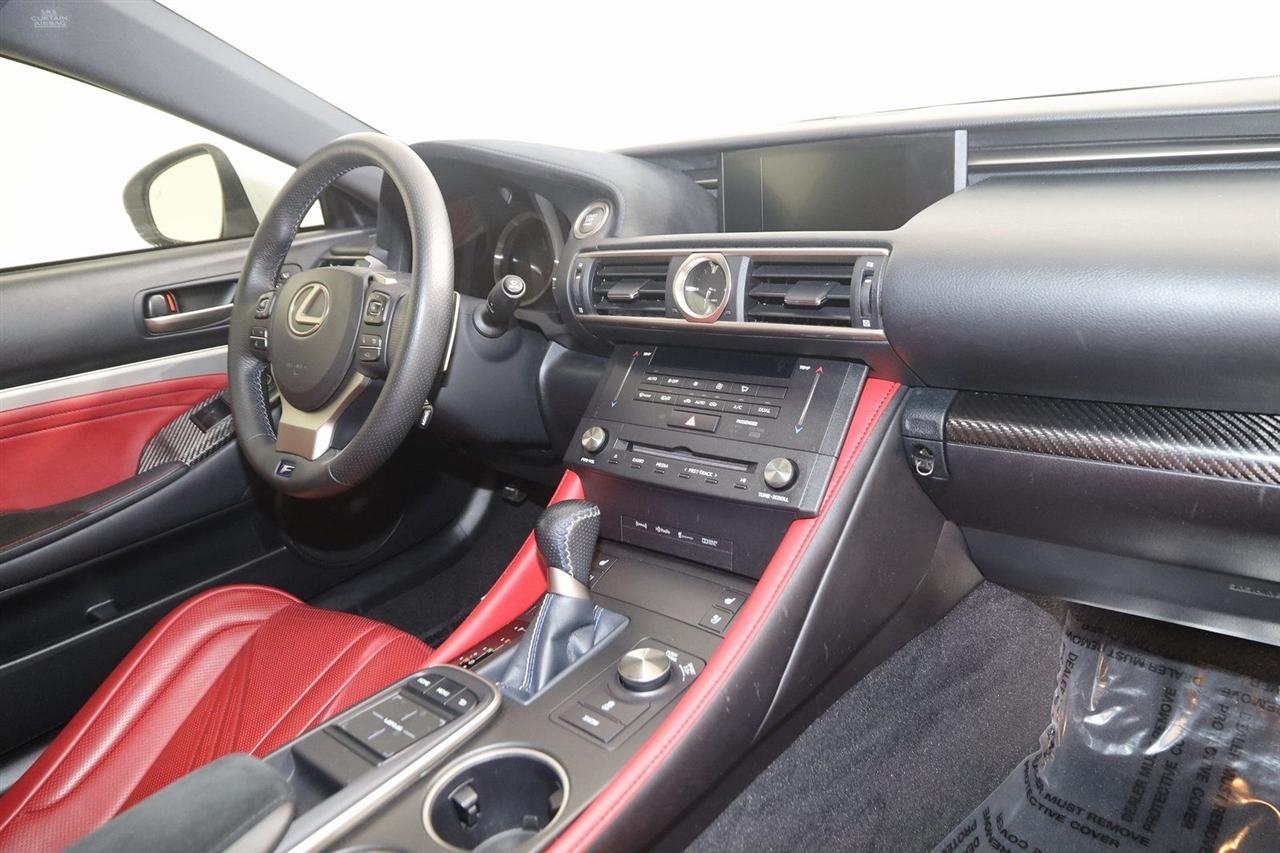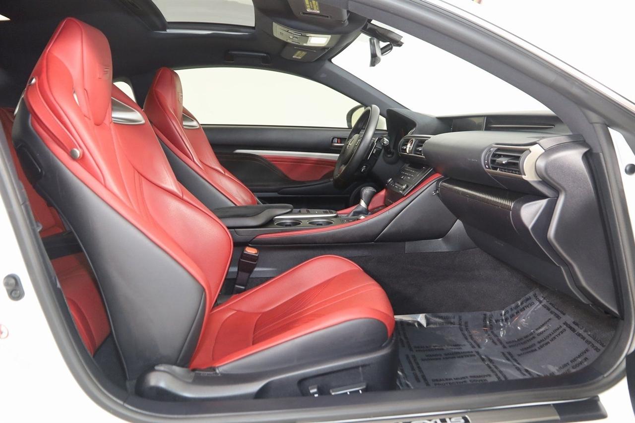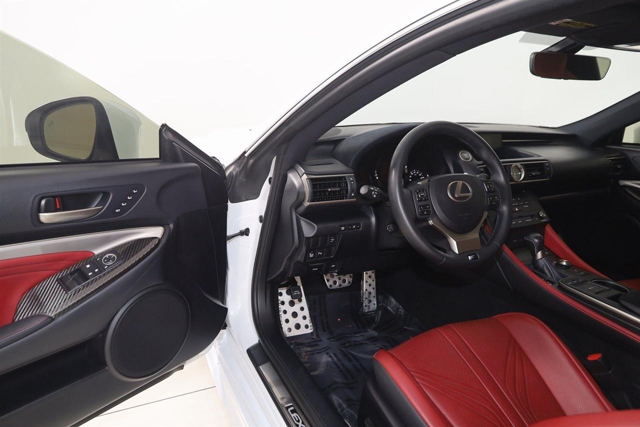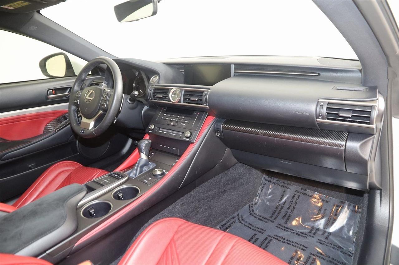 Navigation, Back Up Camera, Bluetooth, Sun/Moon Roof, Touch Screen, Heated Front Seats, Ventilated Front Seats, Blind Spot, RC F, 2D Coupe, 5.0L DOHC, 8-Speed Automatic with Direct Shift, RWD, Ultra White, F-Sport Rioja Red w/F Sport Nuluxe Seat Trim, Back-Up Monitor w/Dynamic Grid Lines, Blind Spot Monitor w/Rear Cross Traffic Alert, Carbon Fiber Interior Trim, Driver Seat Memory, Electro-Chromic Auto Dimming Mirrors, Glove Box w/Key, Heated & Vented Driver & Passenger Seats, LED Headlamps, Lexus Enform, Navigation System, Navigation System Package, Park Assist, Premium Package, Radio: AM/FM/In-Dash CD/DVD & Navigation, Rain Sensing Wipers, Speed Sensing Rear Spoiler, Water Repellent Side Windows.